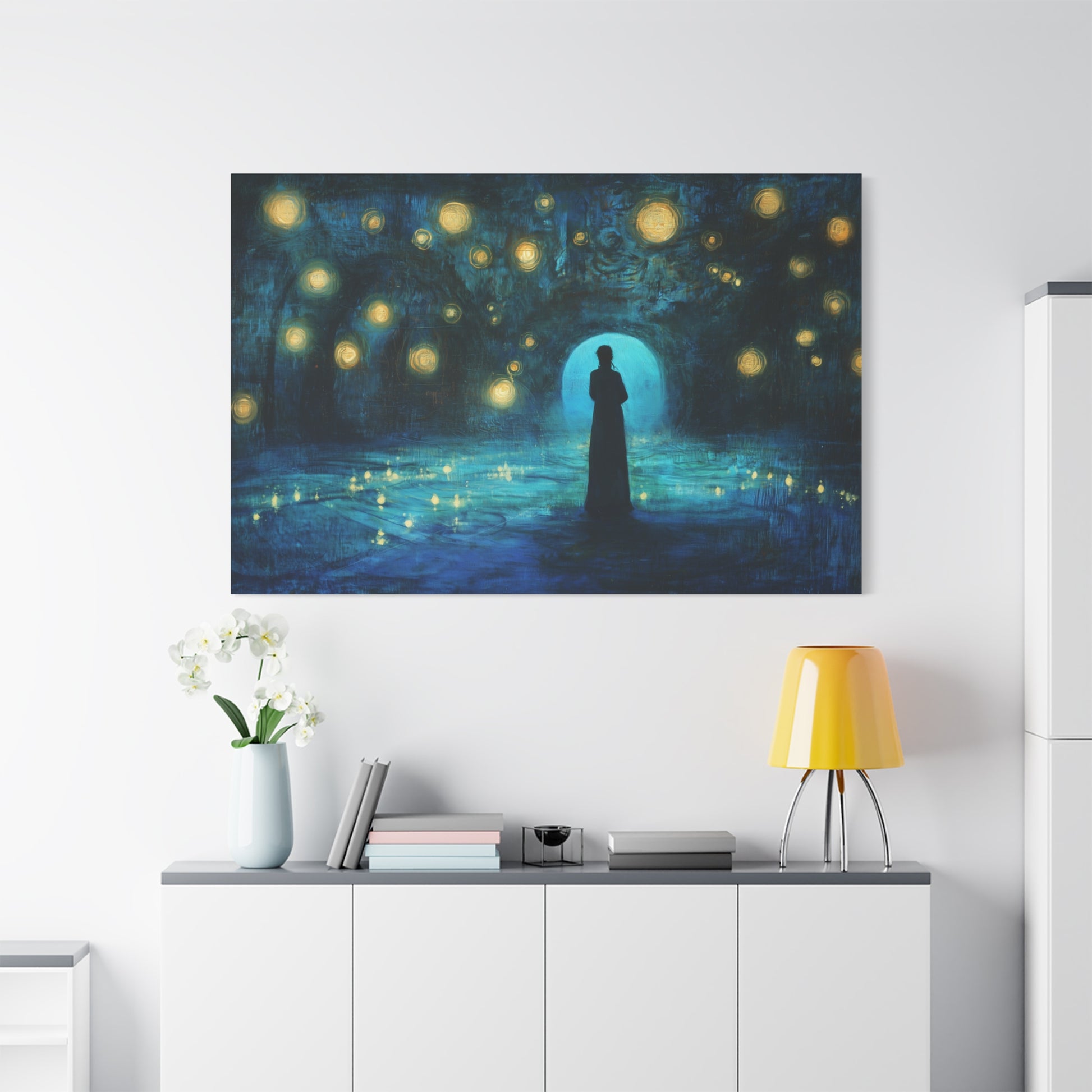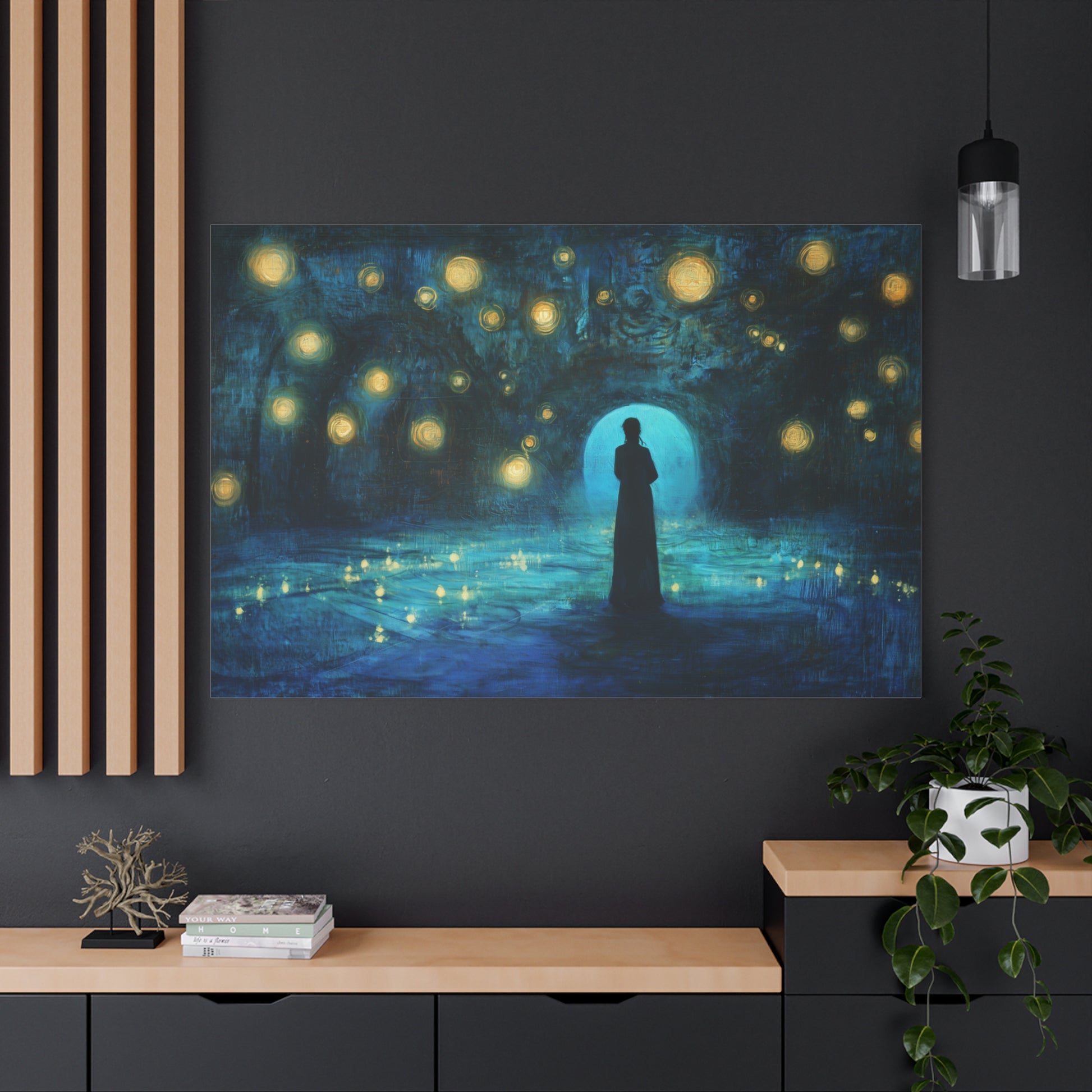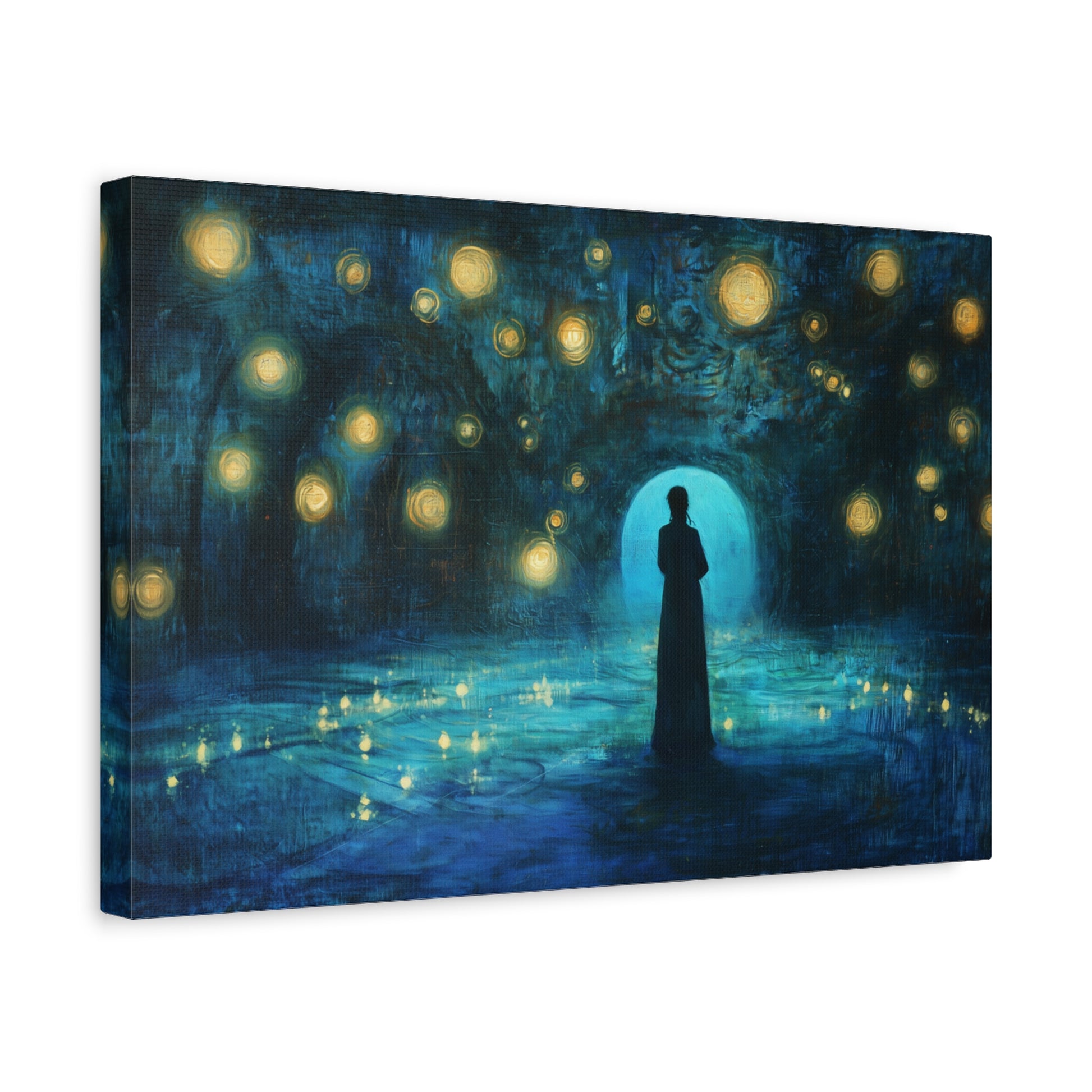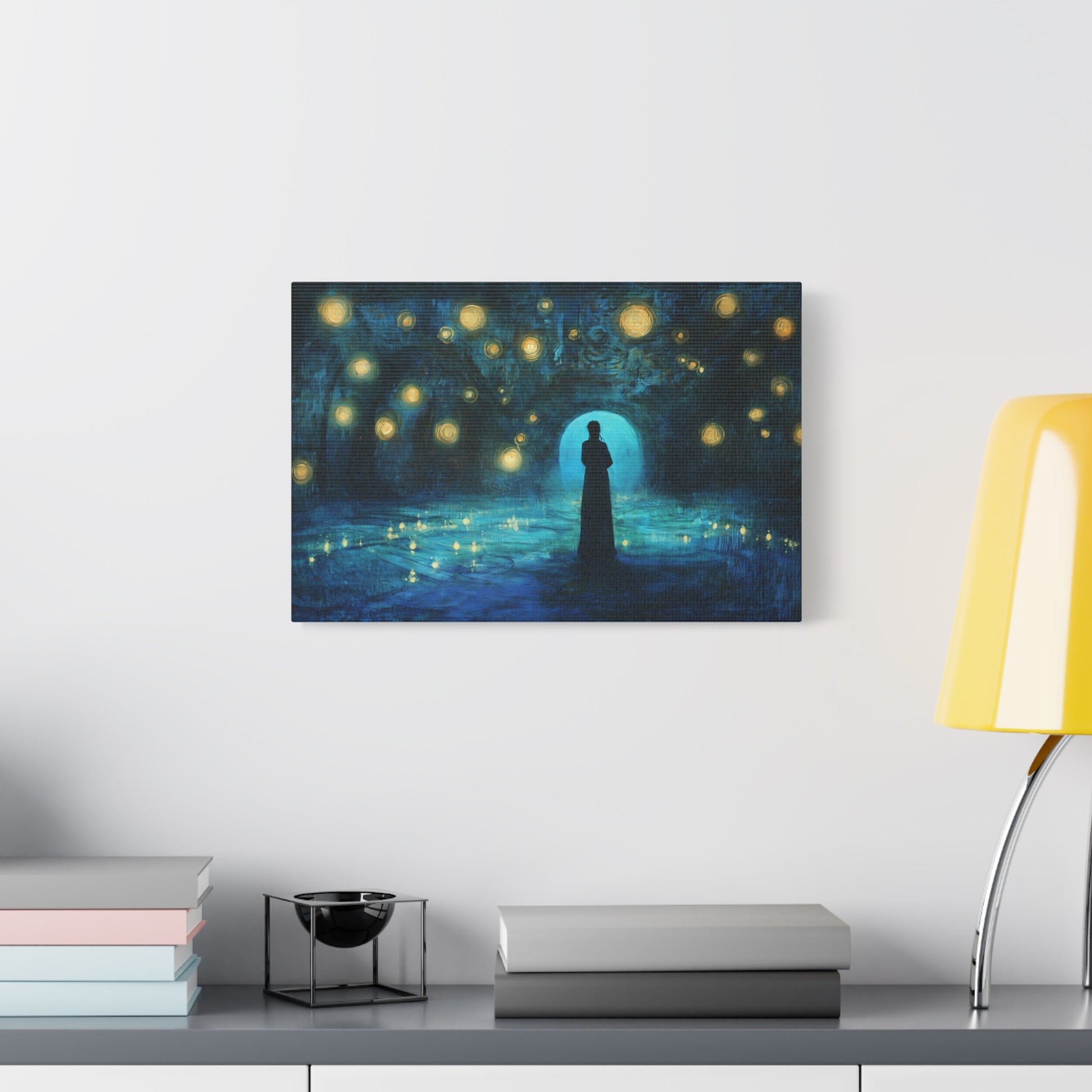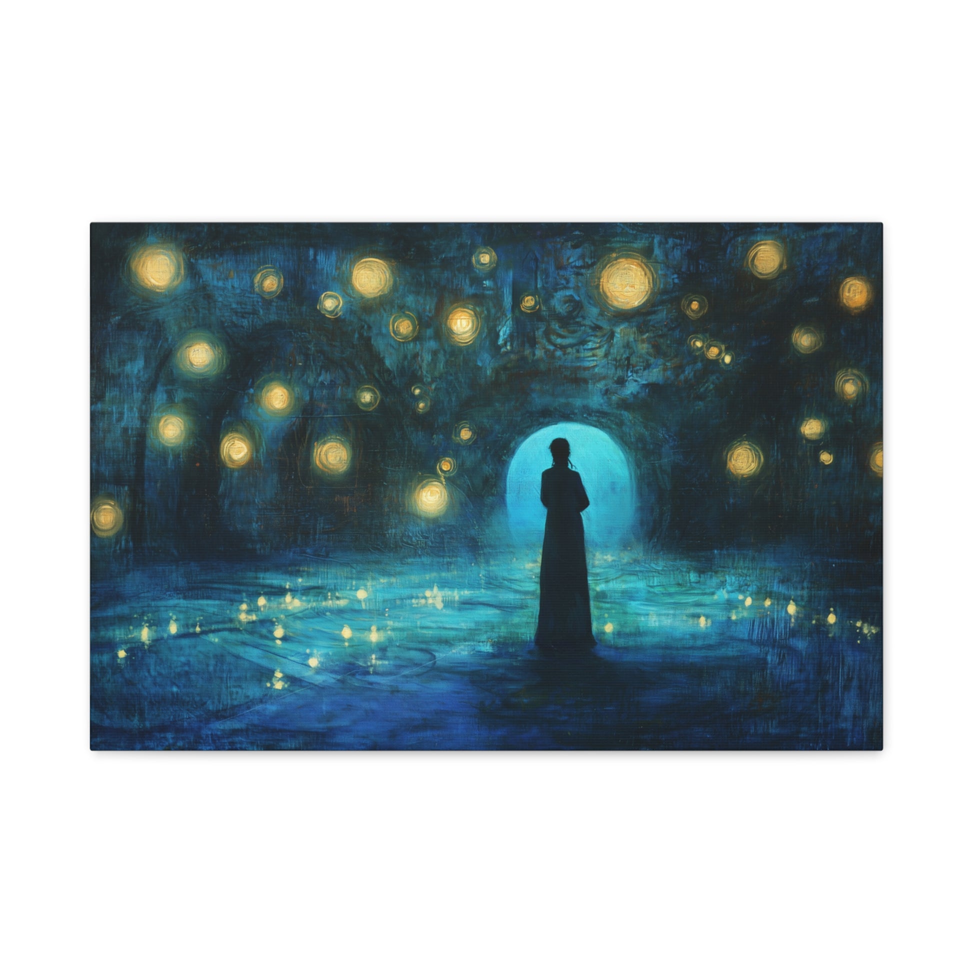 In a realm of shimmering whispers, a lone figure stands at the cusp of twilight, where dreams and stars entwine. Each glowing orb beckons with silent secrets, inviting the soul to wander deeper into mystery.