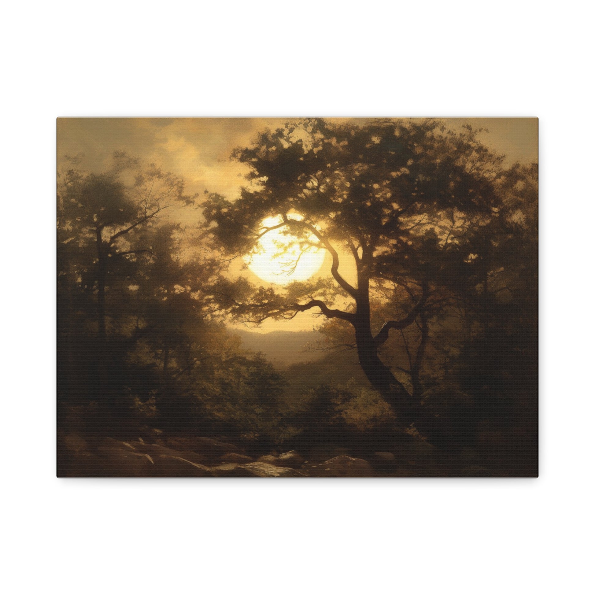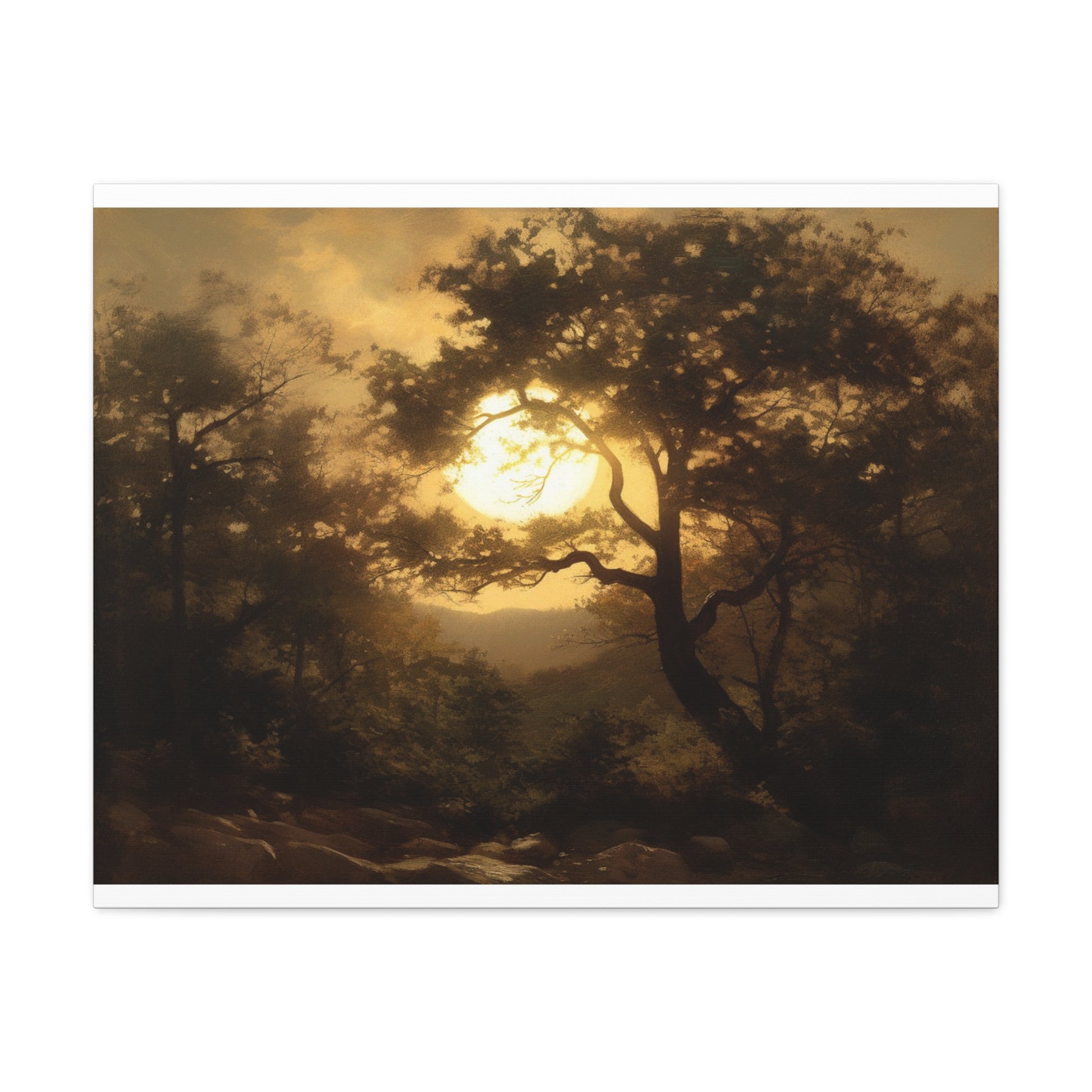In the quietude of dusk, golden light weaves through ancient branches, casting ethereal shadows upon the earth. The serene landscape whispers tales of harmony and timelessness, inviting contemplation amidst nature’s gentle embrace.