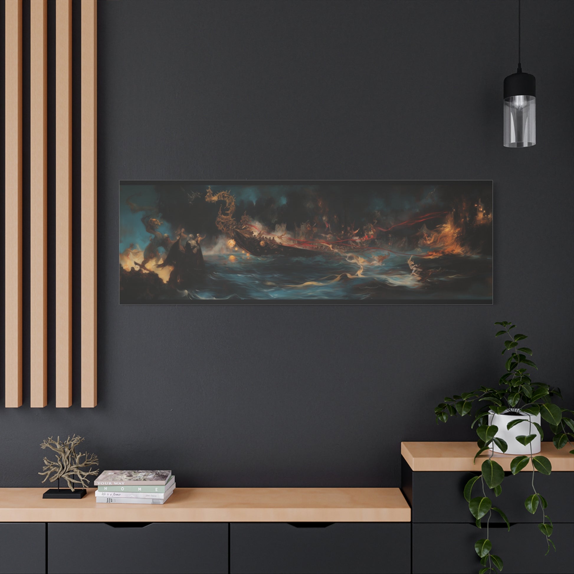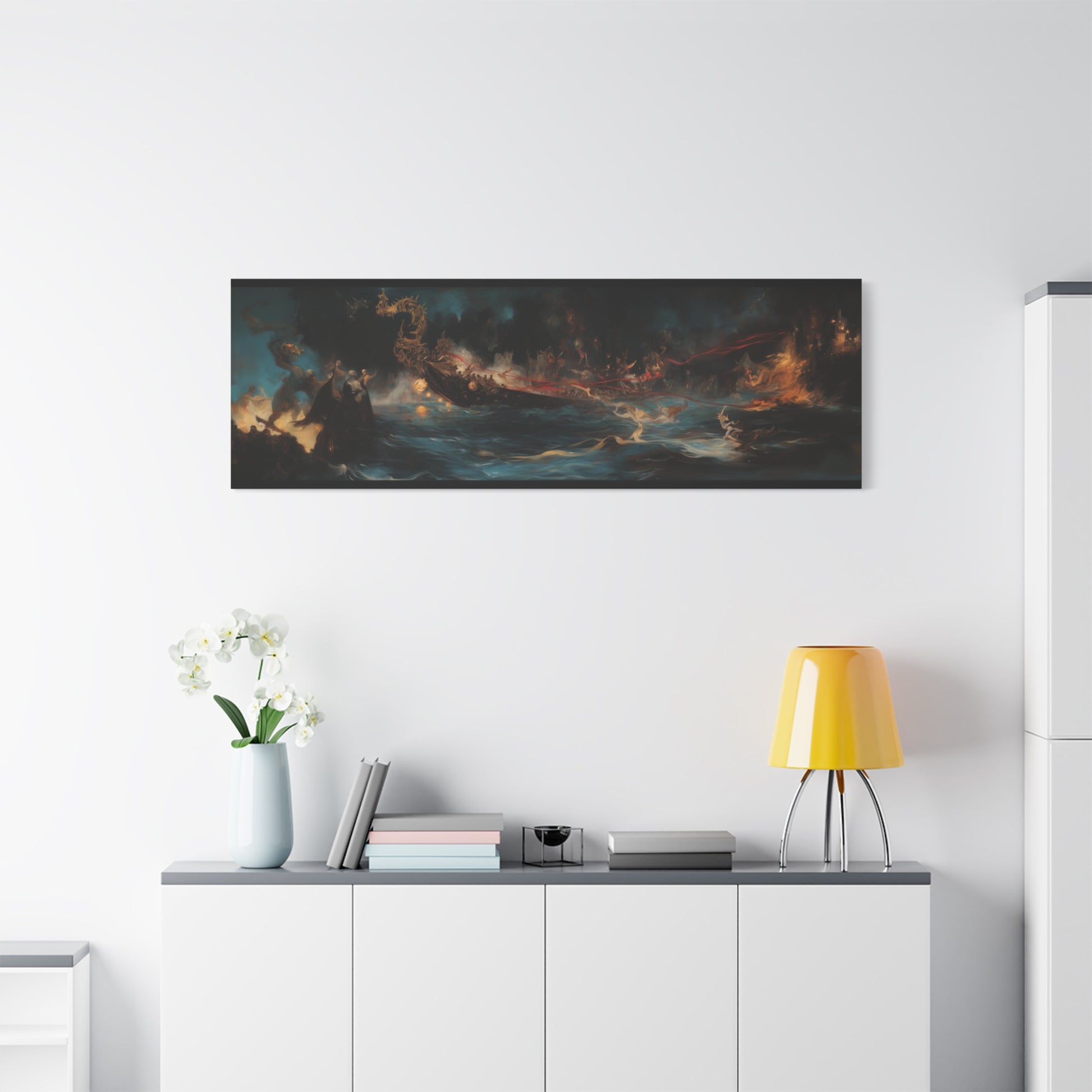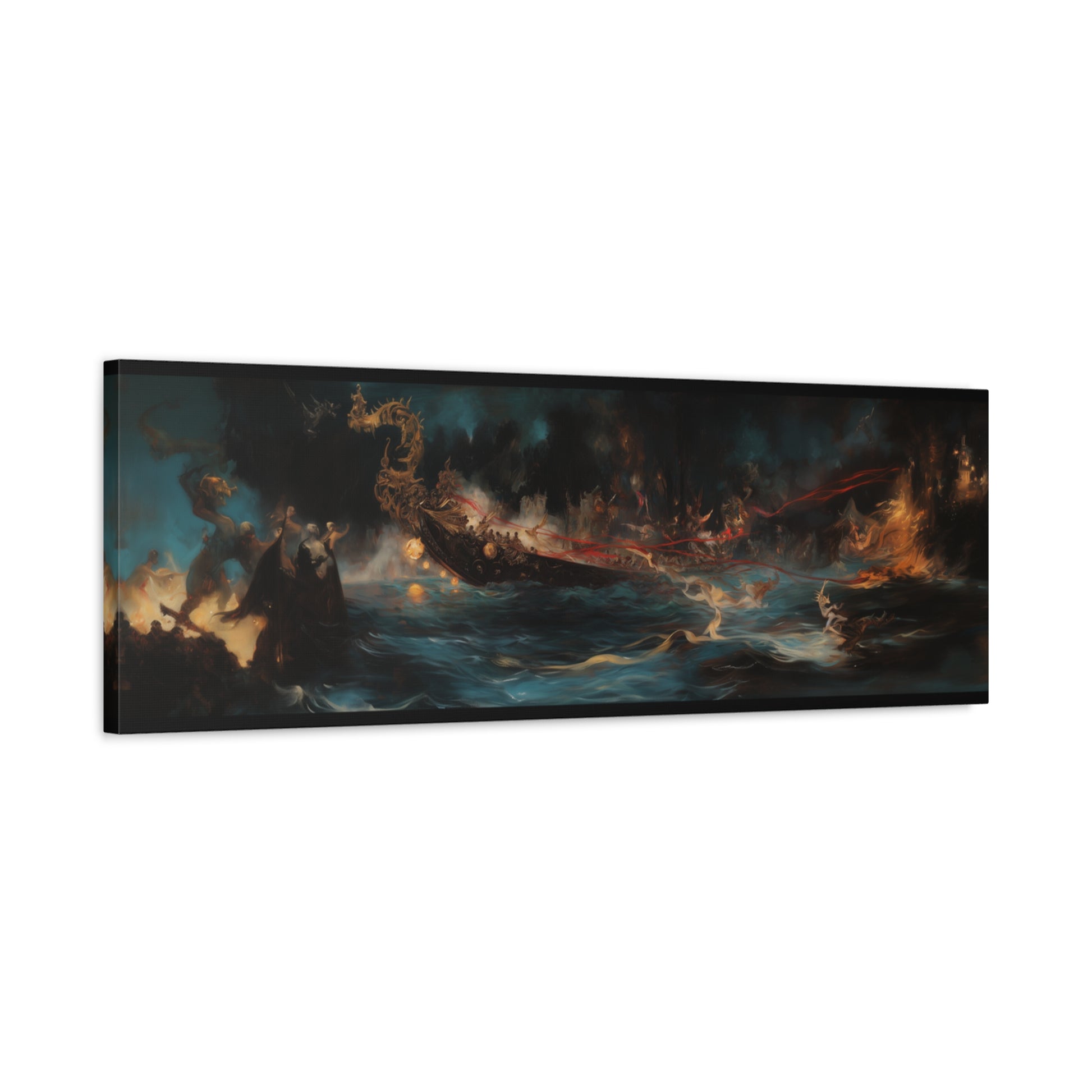 In a realm where shadows dance upon the waves, a vessel of dreams glides through fire and water. The air hums with ancient tales, weaving a tapestry of wonder, danger, and ethereal beauty.
