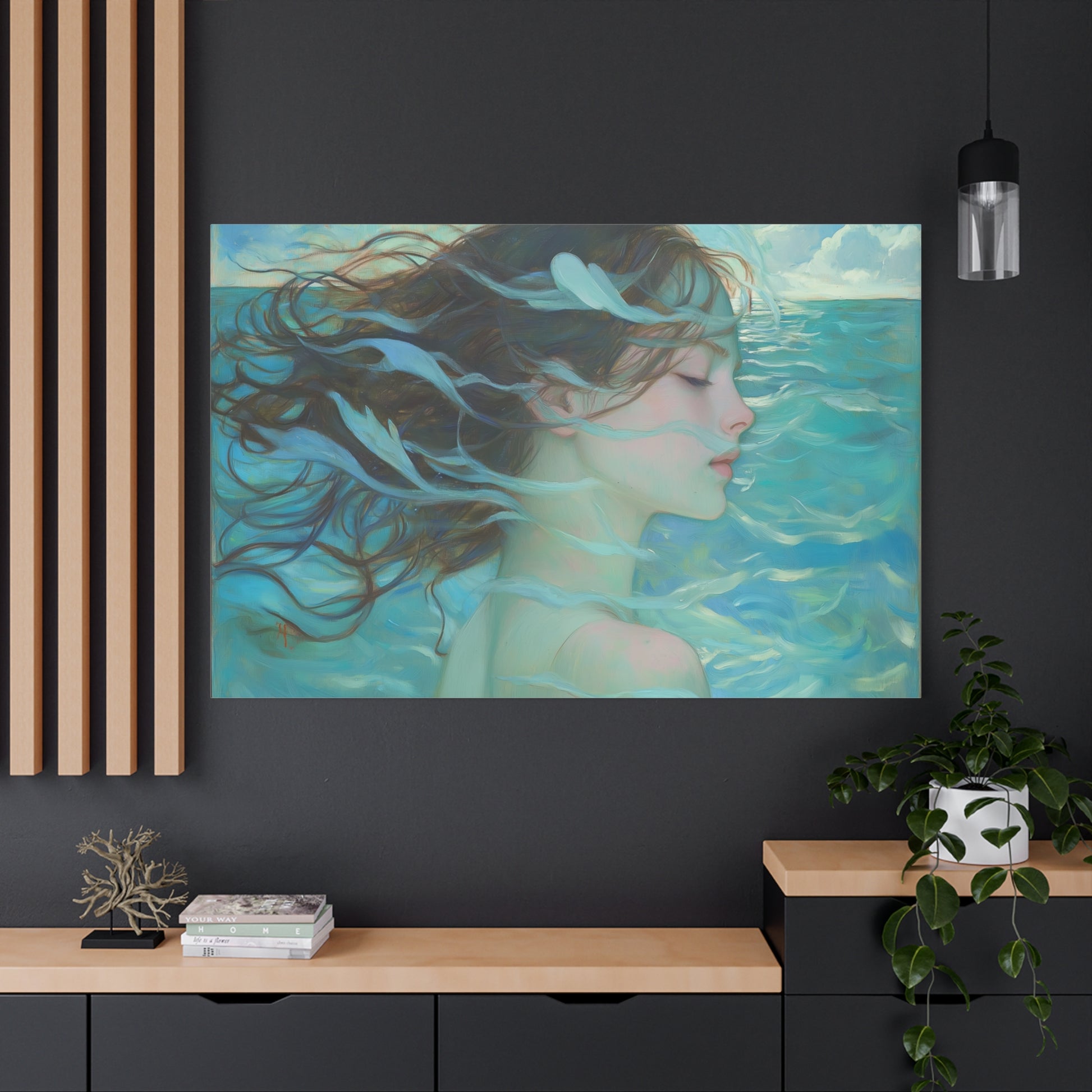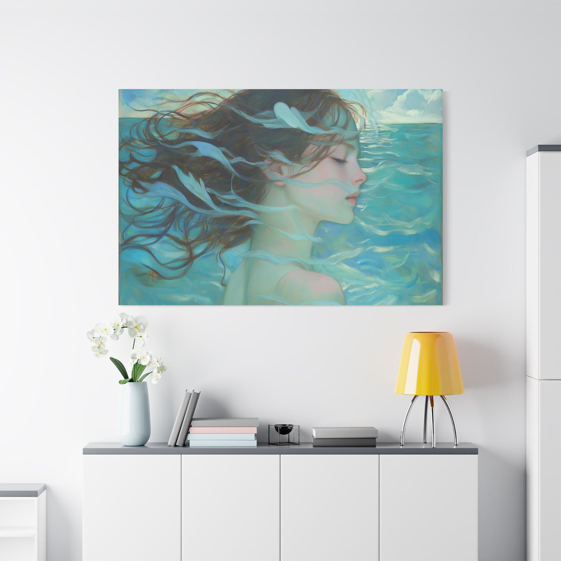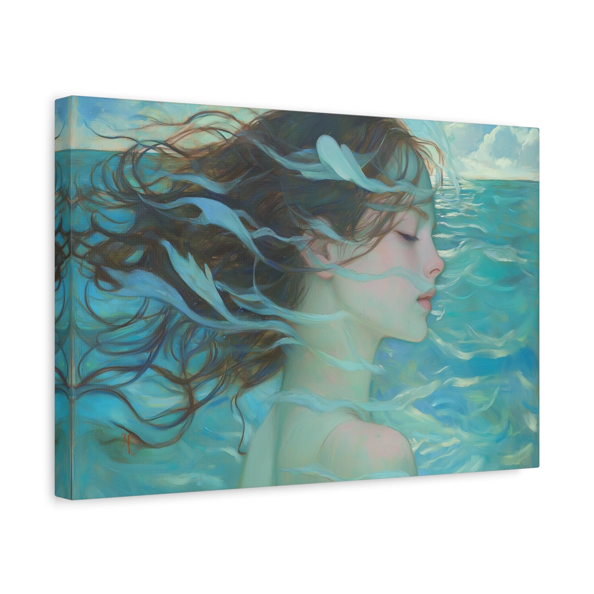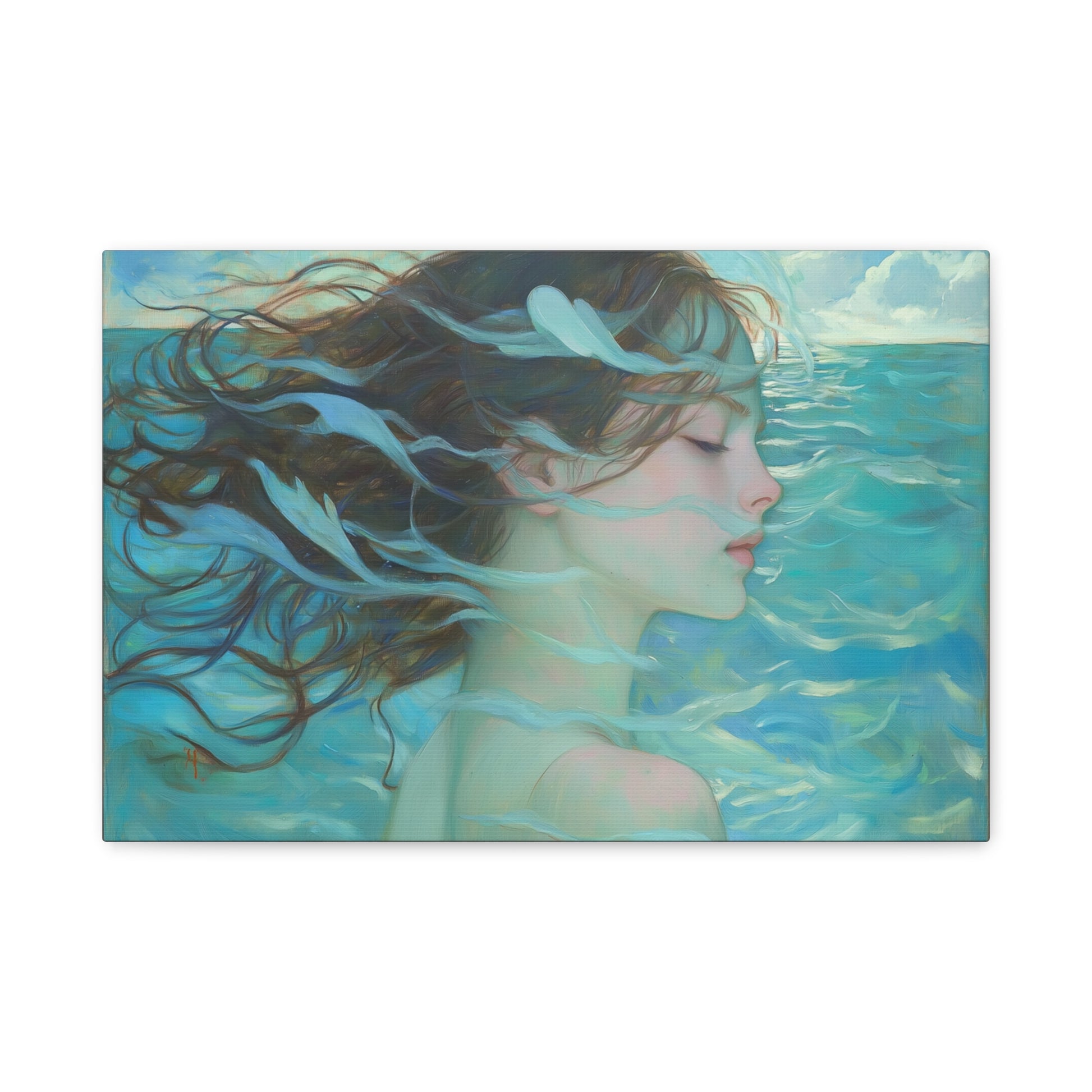 In the gentle embrace of the ocean's breath, serenity unfolds. Her essence dances with the waves, merging dreams with the sea's eternal rhythm. A tranquil unity of spirit and water emerges, whispering secrets of the deep.
