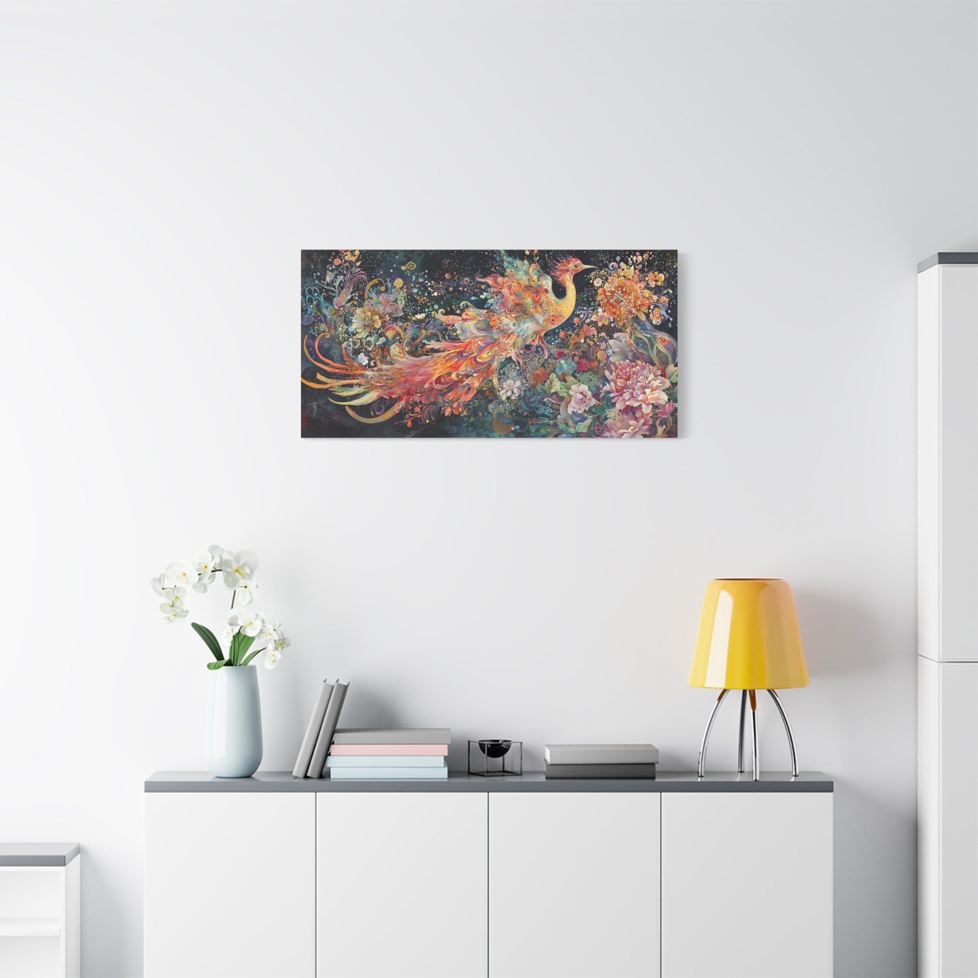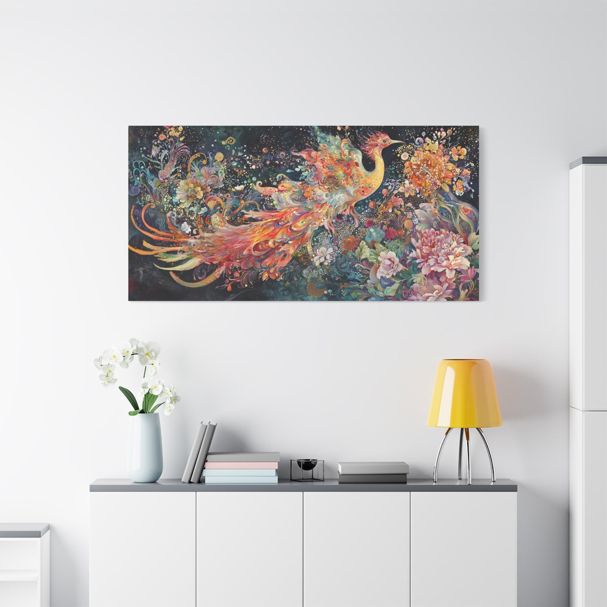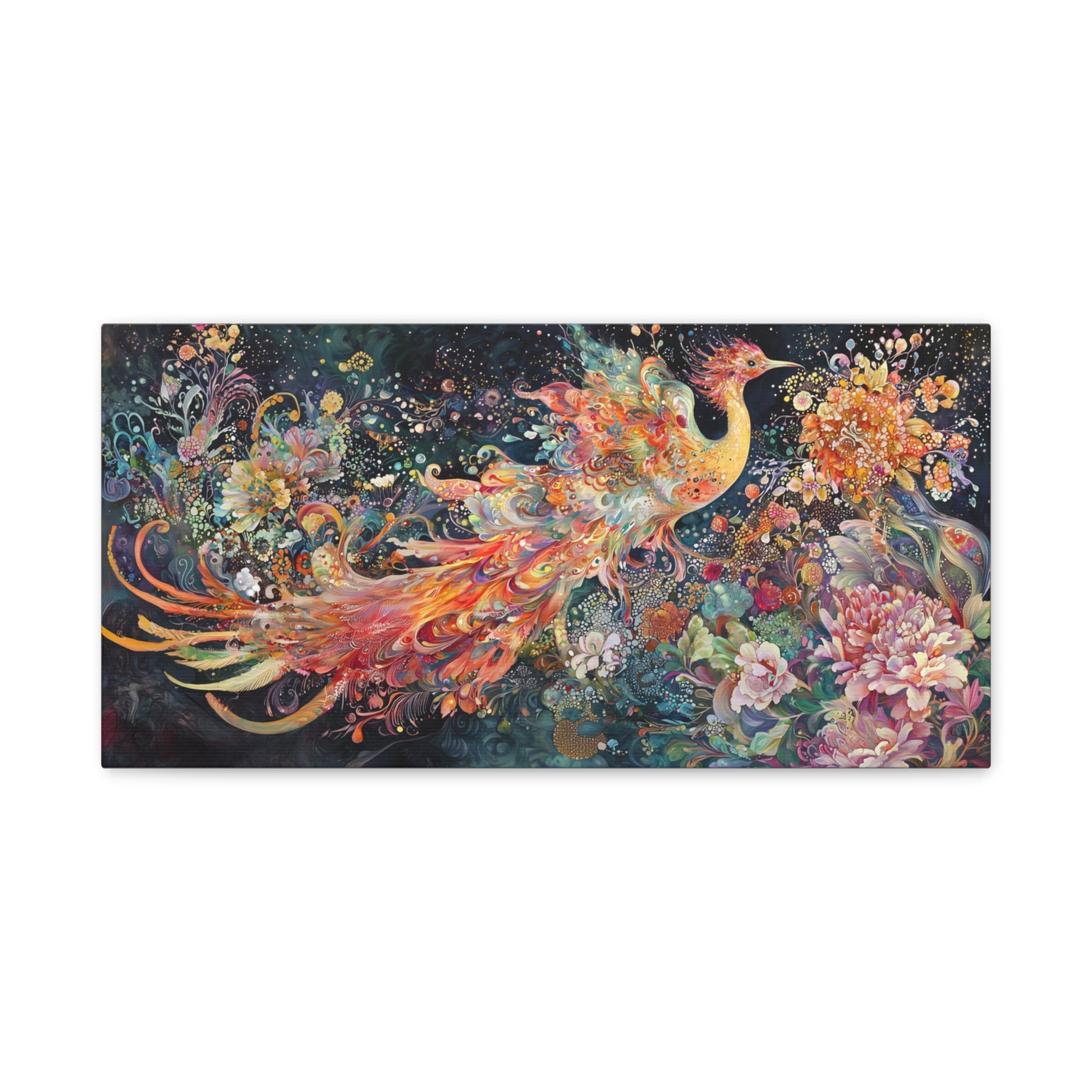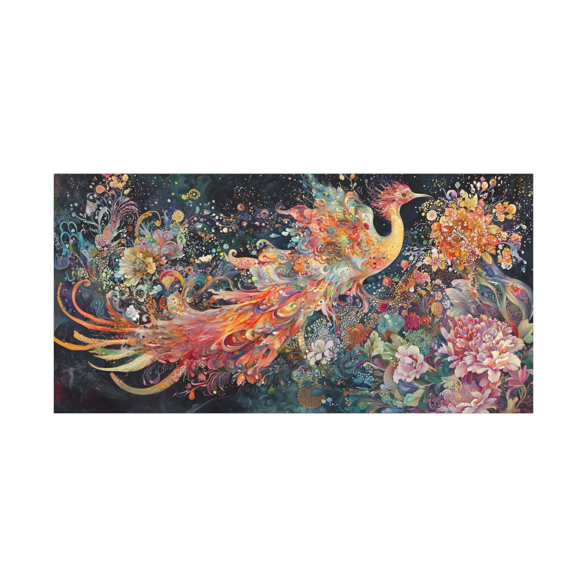 In a cosmic garden, a phoenix bursts forth in a symphony of color and rebirth, weaving dreams among celestial blossoms. Its radiant wings whisper of eternal cycles, inviting the soul to dance in wonder.