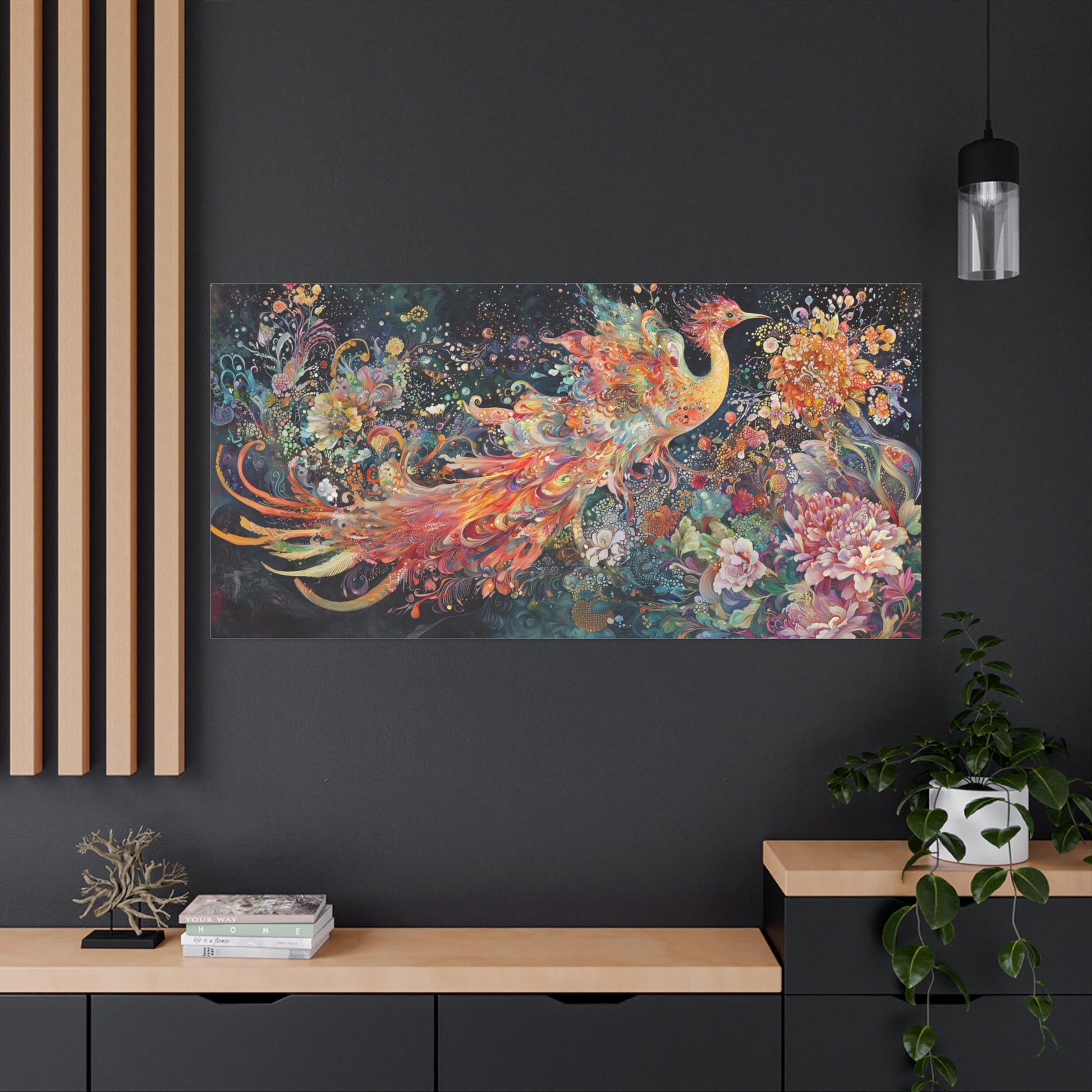 Care instructions: To maintain the vibrancy of your canvas, avoid direct sunlight and gently dust with a clean, dry cloth when needed.