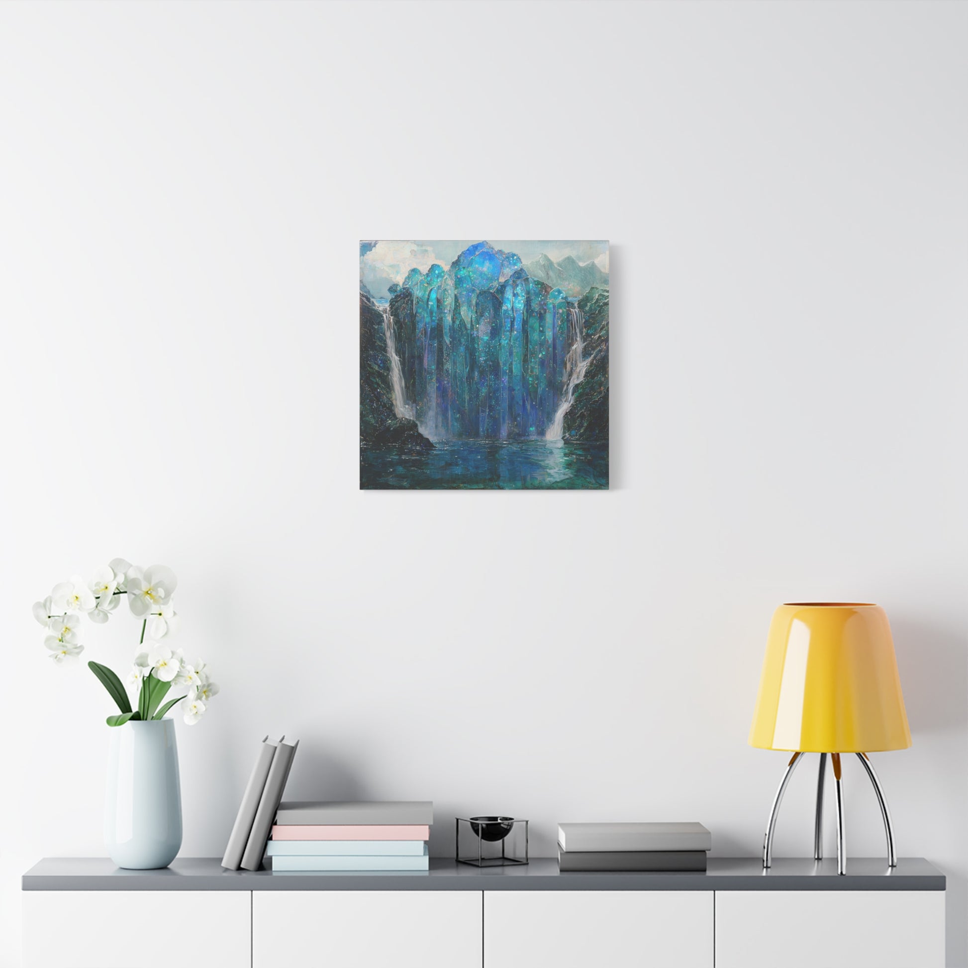 A cascade of azure whispers descends, merging the heavens with the earth in a symphony of color and light. The waterfall's embrace is both a mystery and a revelation, inviting the soul to wander.