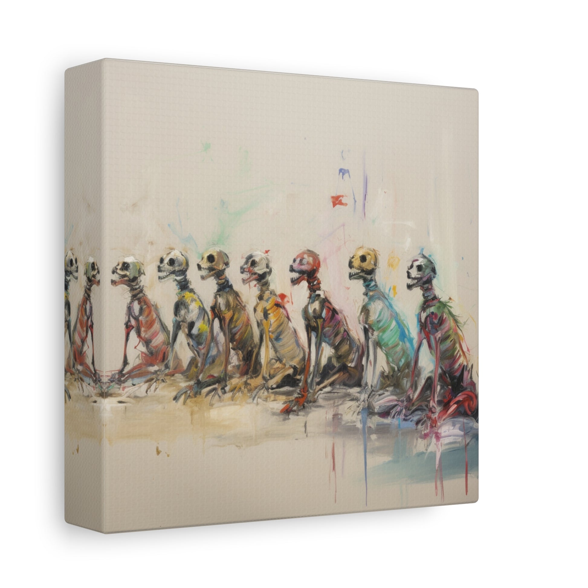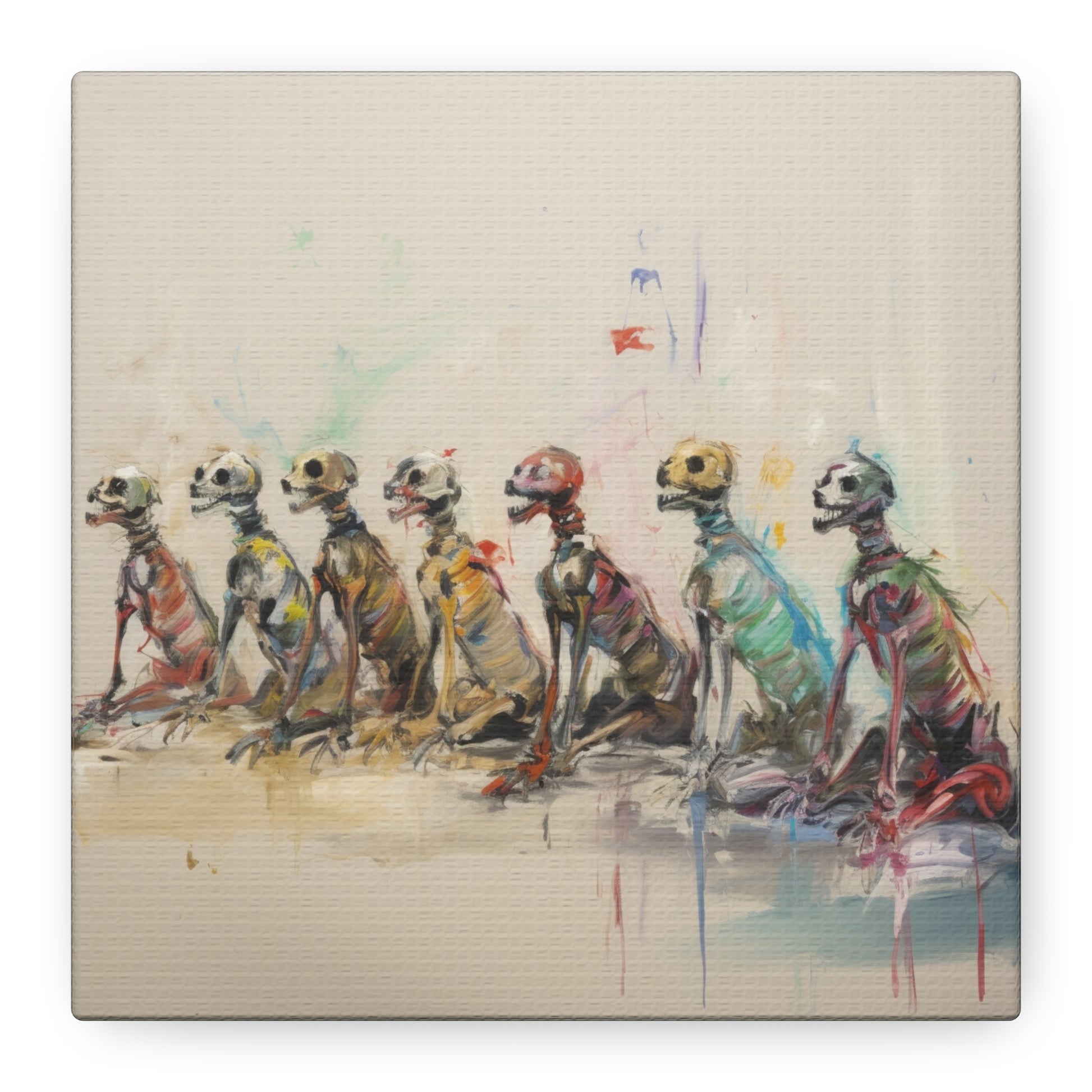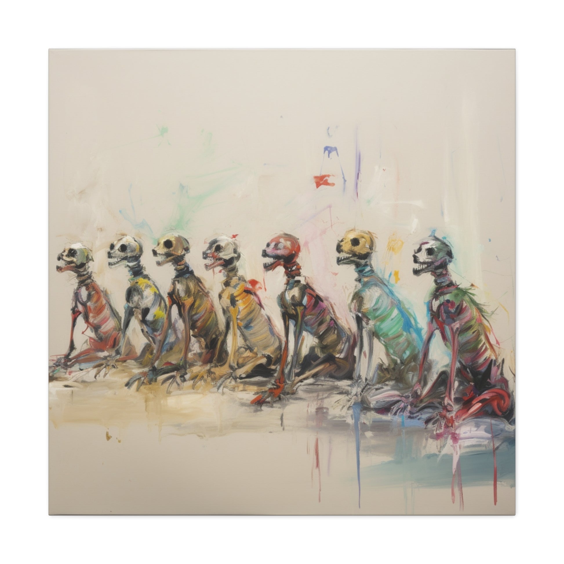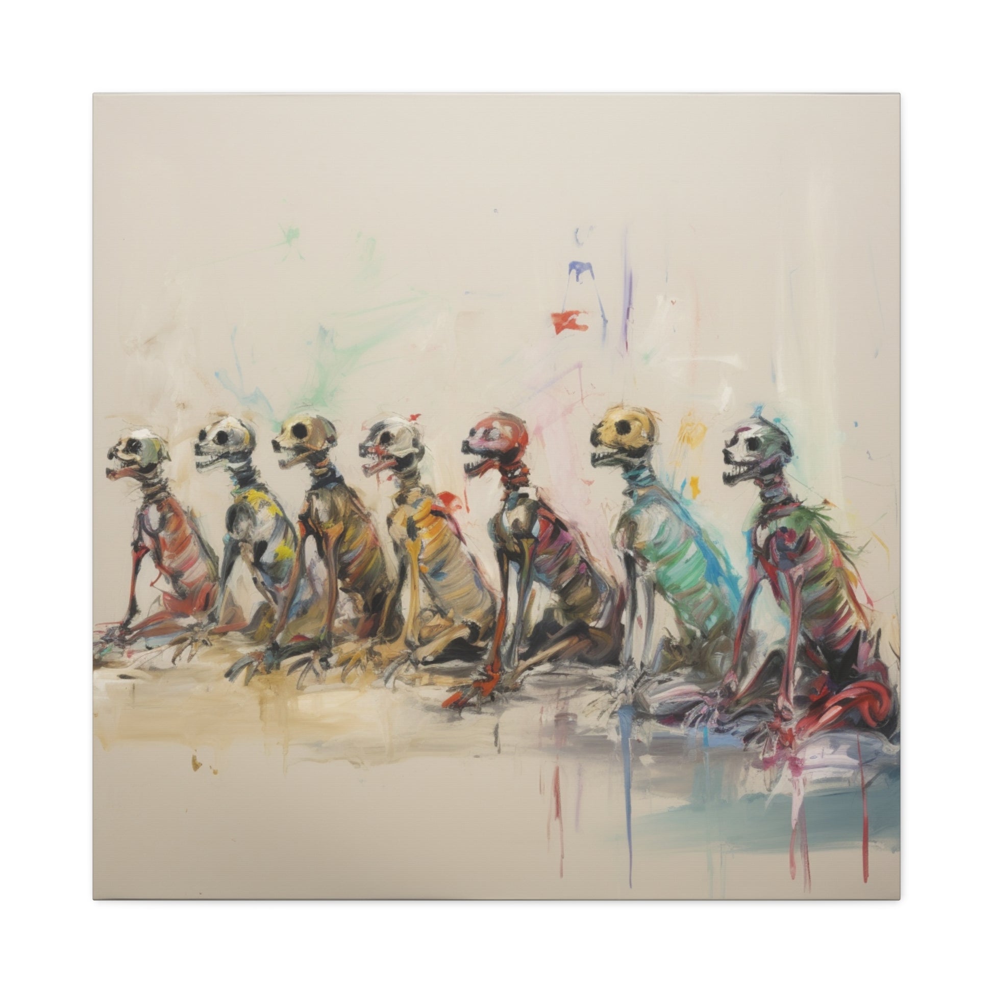 A spectral procession unfolds, each figure a whisper of forgotten tales and lingering echoes. Vibrant hues bleed into the void, creating a haunting dance between life and death, memory and oblivion.