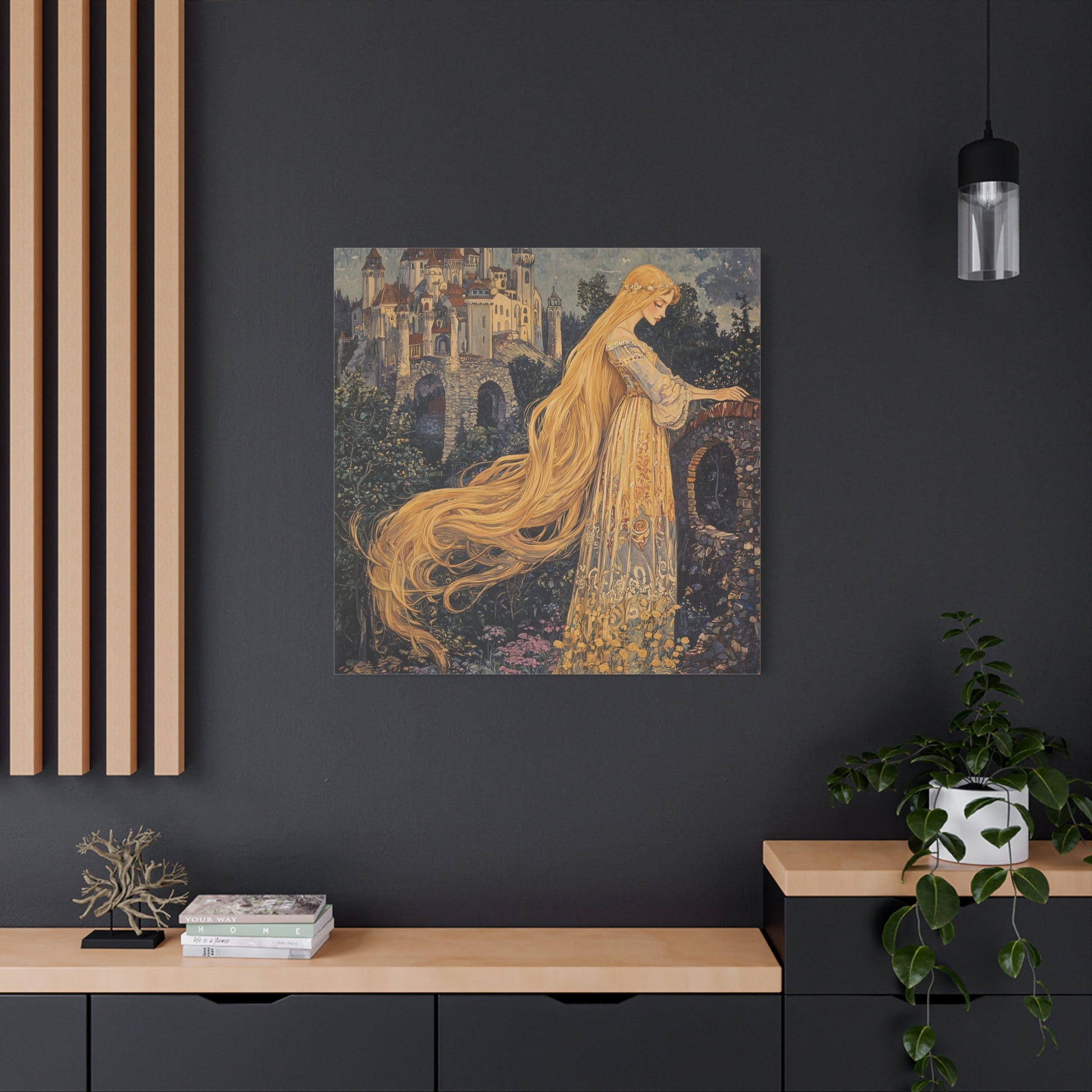 In a realm where dreams entwine with reality, a maiden's golden hair cascades like whispers of ancient tales. Her presence bridges the worlds, inviting us to wander through the delicate dance of light and shadow.