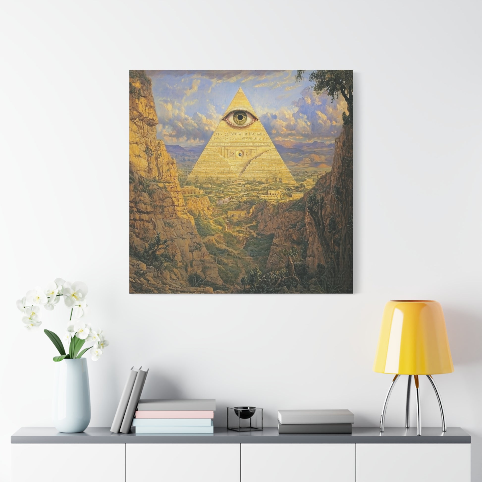 In a realm where ancient stones hold their breath, a singular eye watches over the sands. The pyramid stands, whispering secrets of ages past, inviting you to wander through shadows and light, seeking truth.