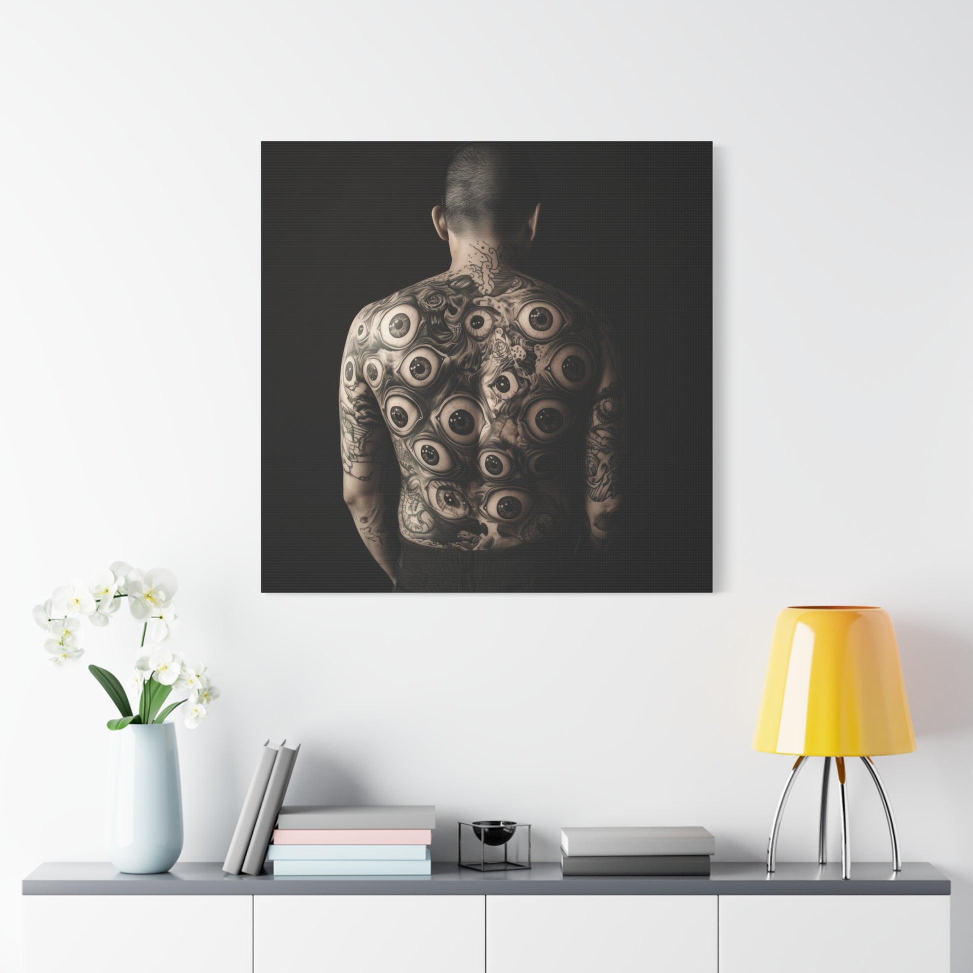 An intricate tapestry of eyes unfolds across the skin, whispering secrets of unseen worlds. Each gaze holds a universe, inviting the viewer to delve into the mysteries of perception and self-reflection.