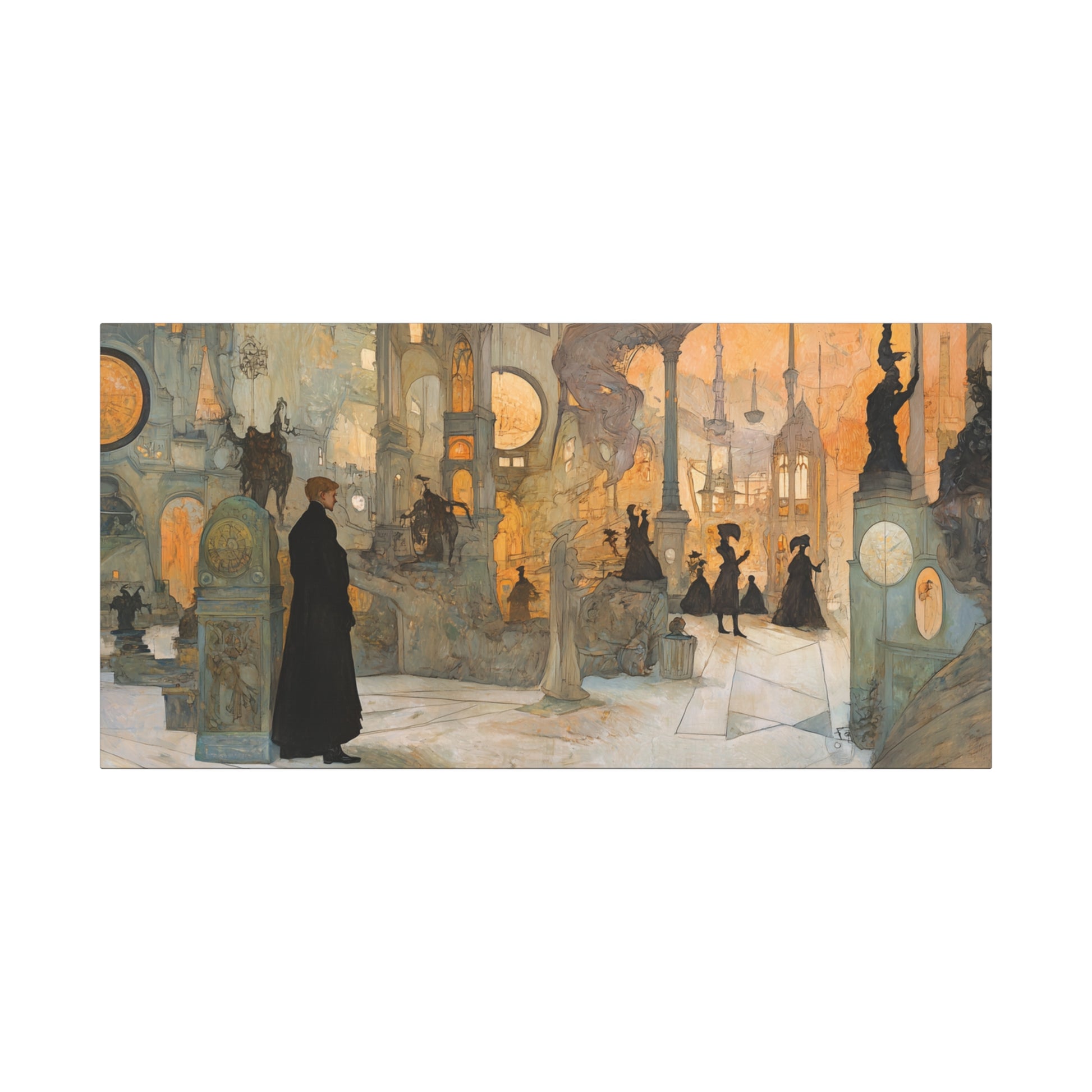 In the glow of forgotten halls, figures move like silhouettes in a dream, their presence both haunting and serene. The air hums with untold stories, inviting each soul to wander through time's whispered embrace.