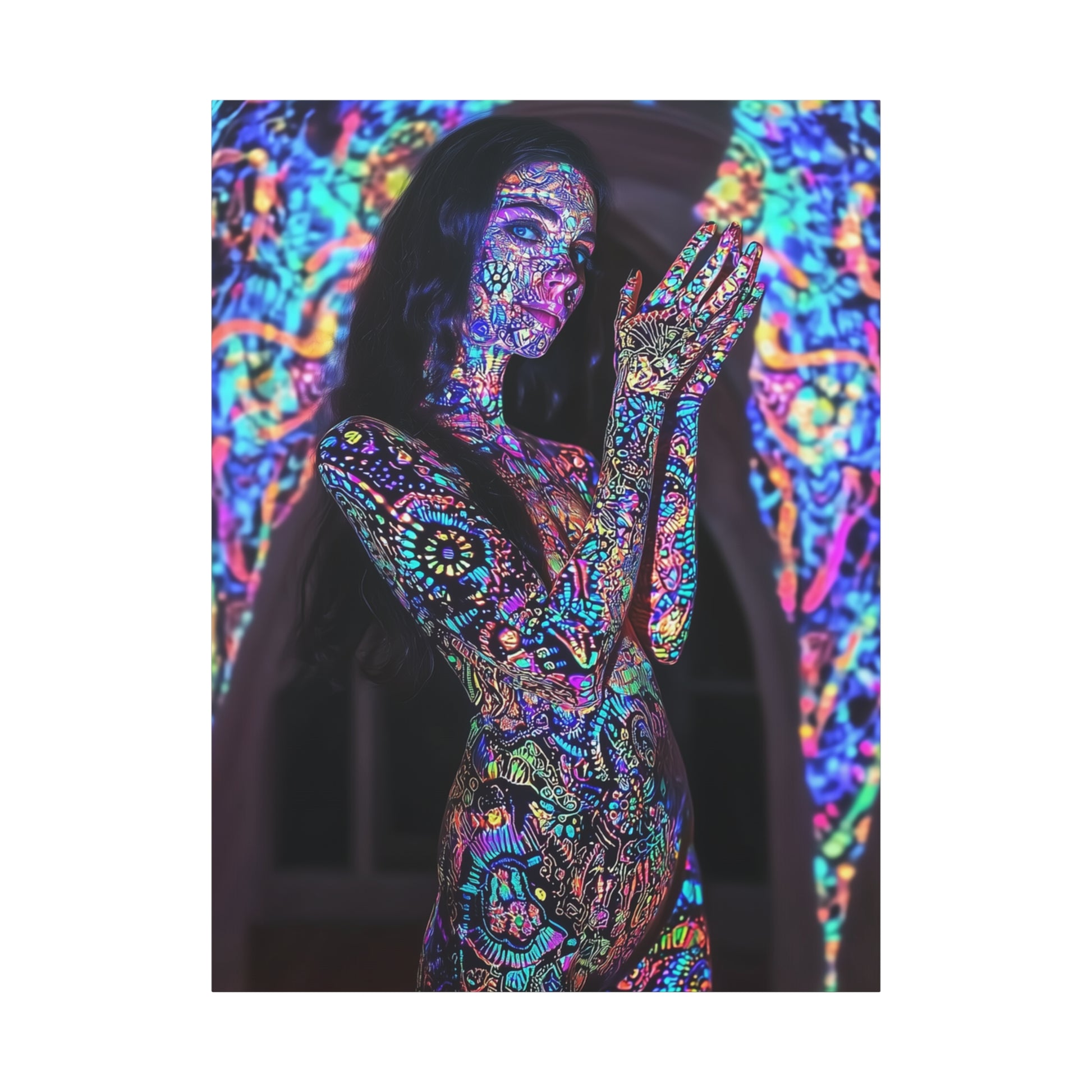 In a mesmerizing dance of color and shadow, the figure becomes a tapestry of dreams and light, a testament to the vibrant interplay of the universe's unseen patterns. Each hue sings a silent song of wonder.