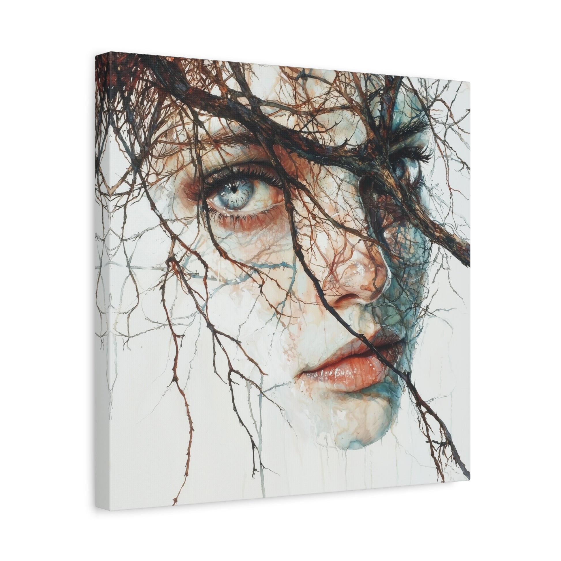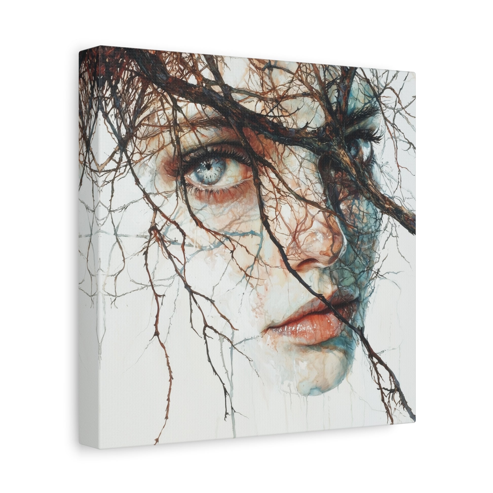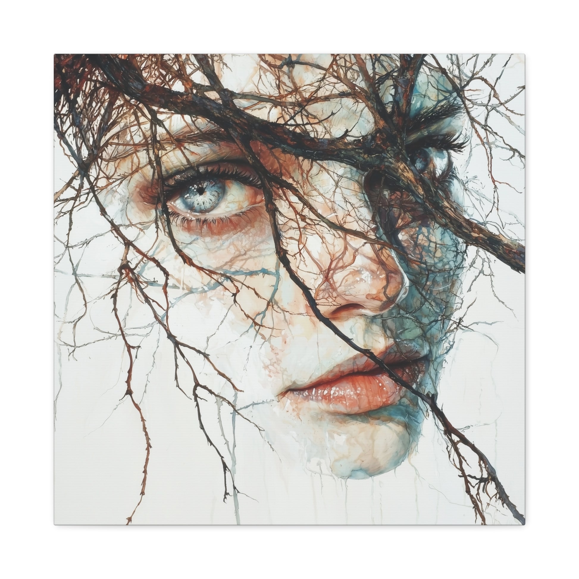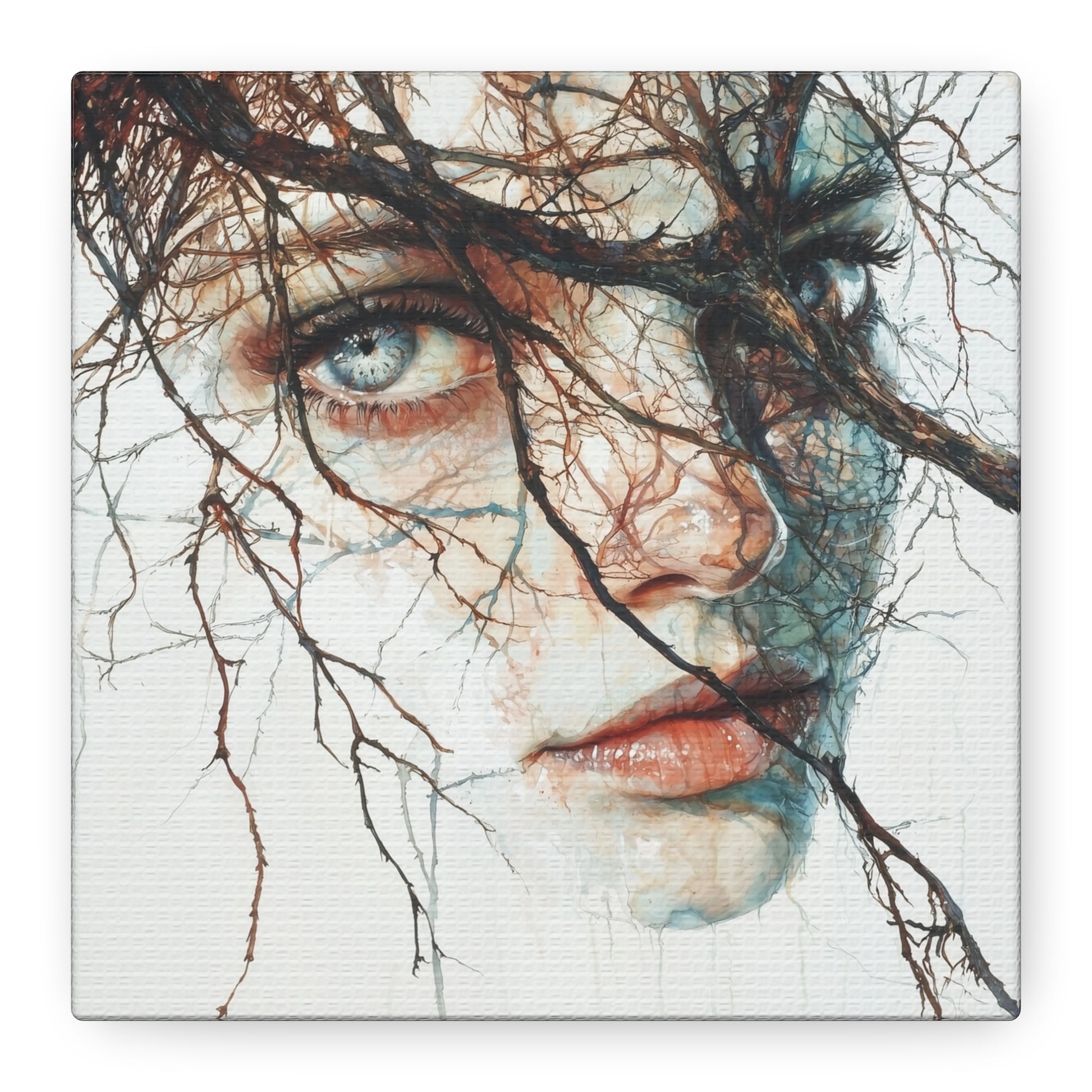 A visage emerges from the tangled embrace of nature, eyes reflecting untold stories. The boundaries between humanity and earth dissolve, revealing the intricate dance of life’s enduring tapestry. A haunting beauty lingers in the fusion.