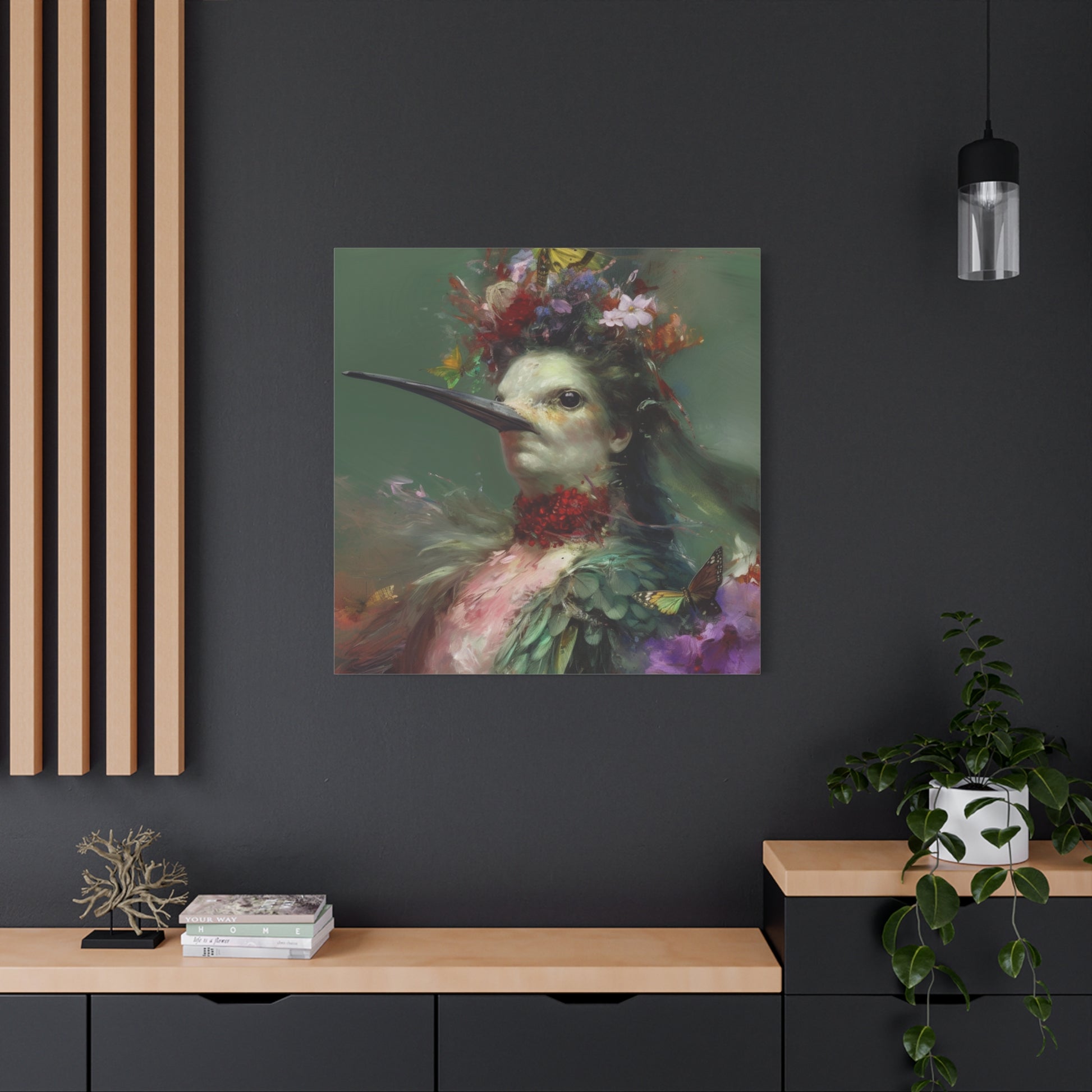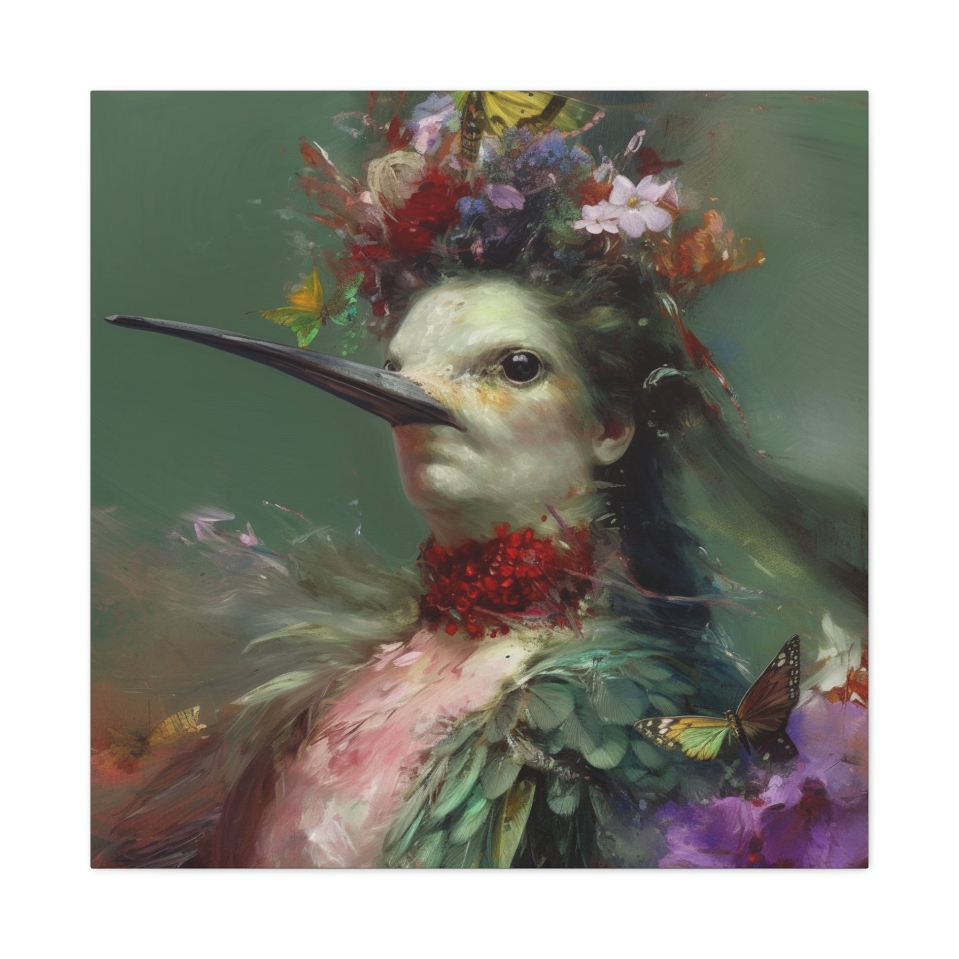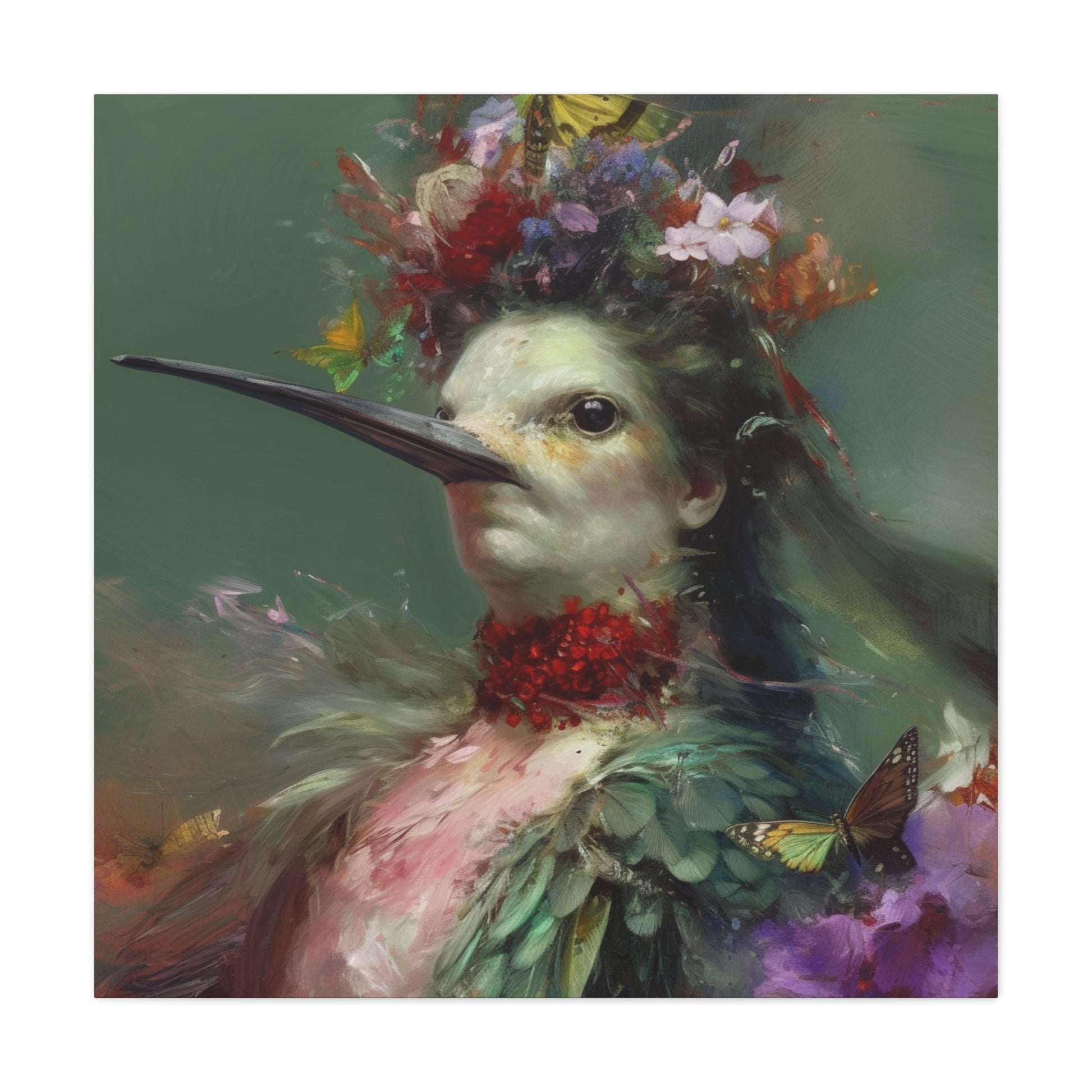 In a realm where nature and dreams entwine, a bird crowned with blossoms gazes into eternity. Its plumage whispers tales of forgotten worlds, inviting the viewer to explore the delicate dance of life and imagination.