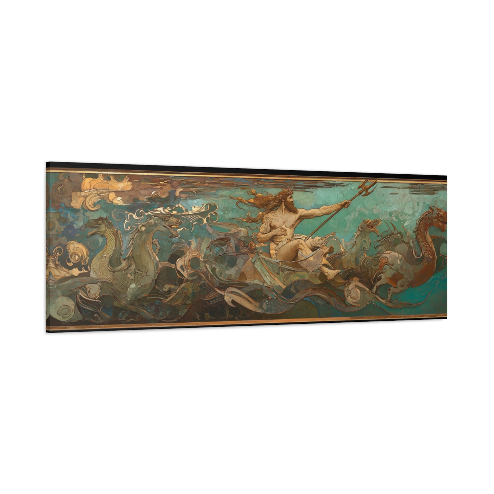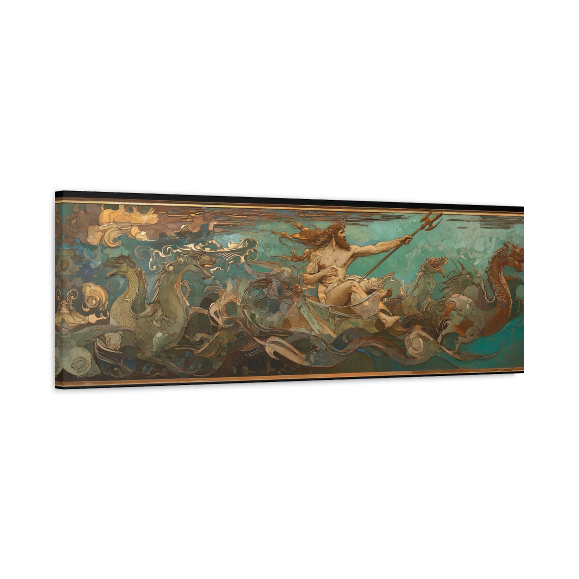 A tempest of myth and sea, where oceanic steeds surge beneath the command of the ancient mariner. The waves sing of timeless battles and whispered secrets, weaving a tapestry of power and mystery.