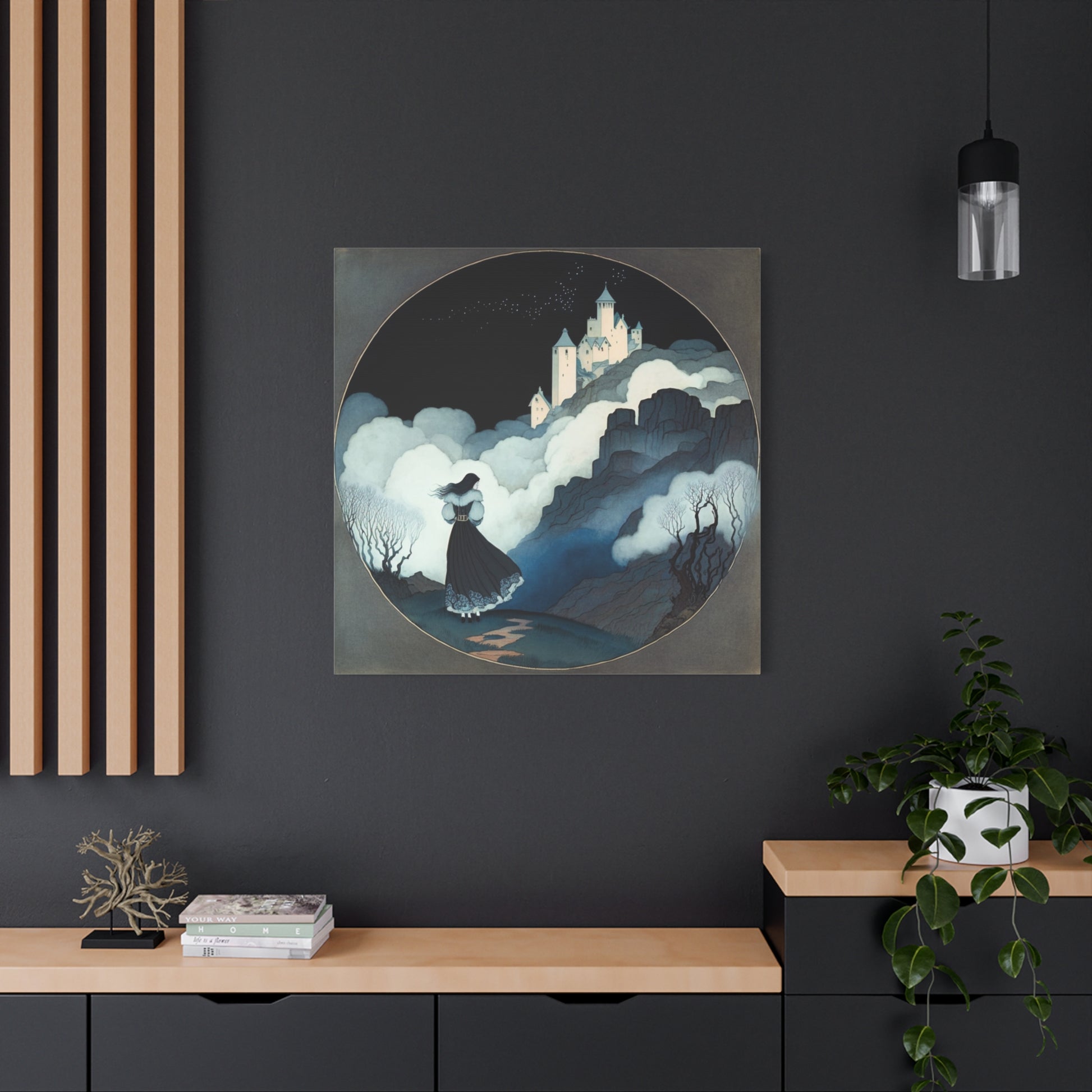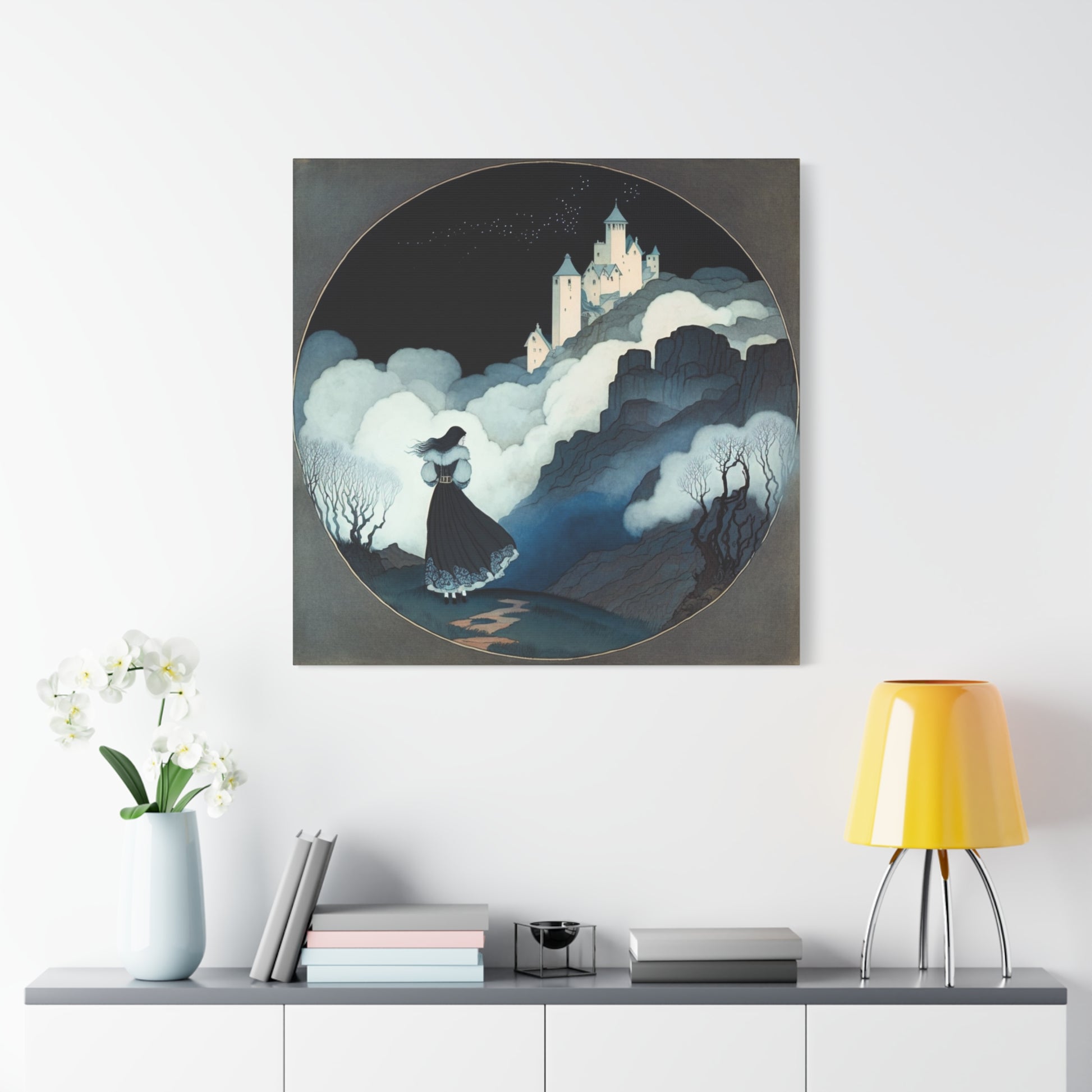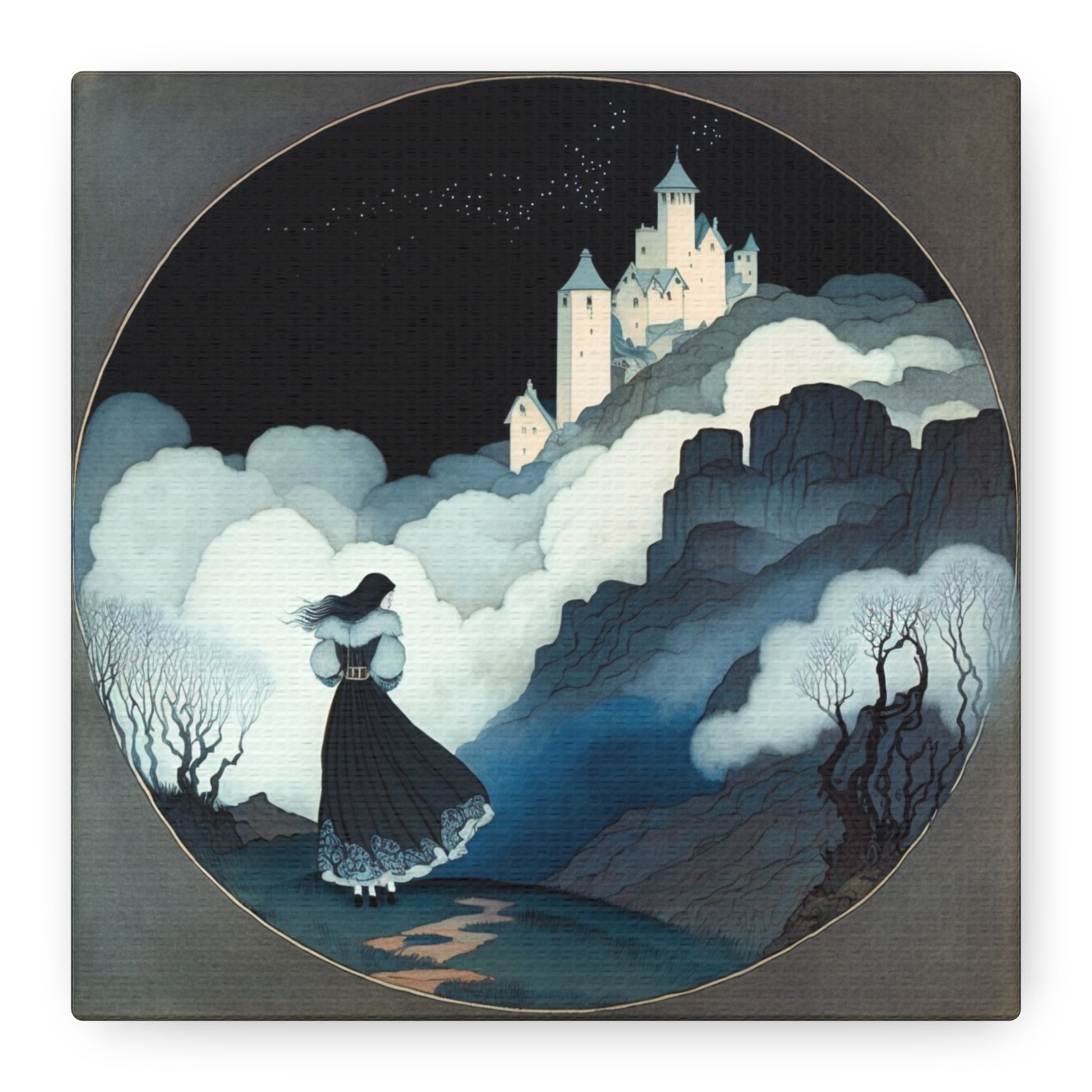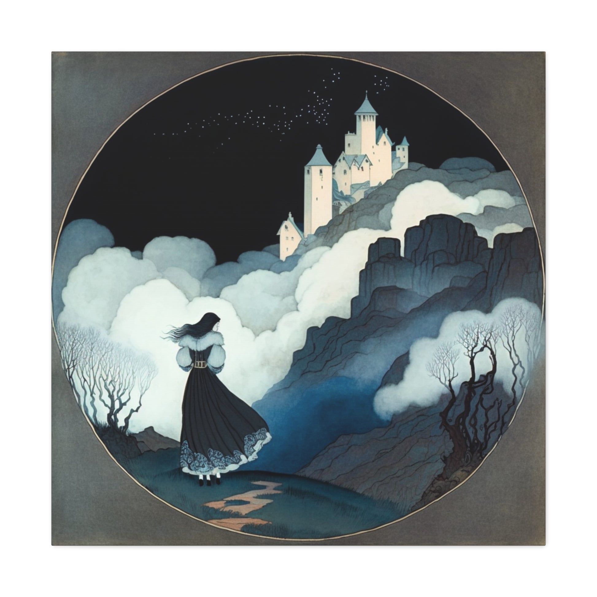 Enveloped in mist and mystery, a solitary figure gazes upon a distant castle, where dreams and shadows entwine. The path is fraught with echoes of ancient tales, inviting the soul to wander into the unknown.