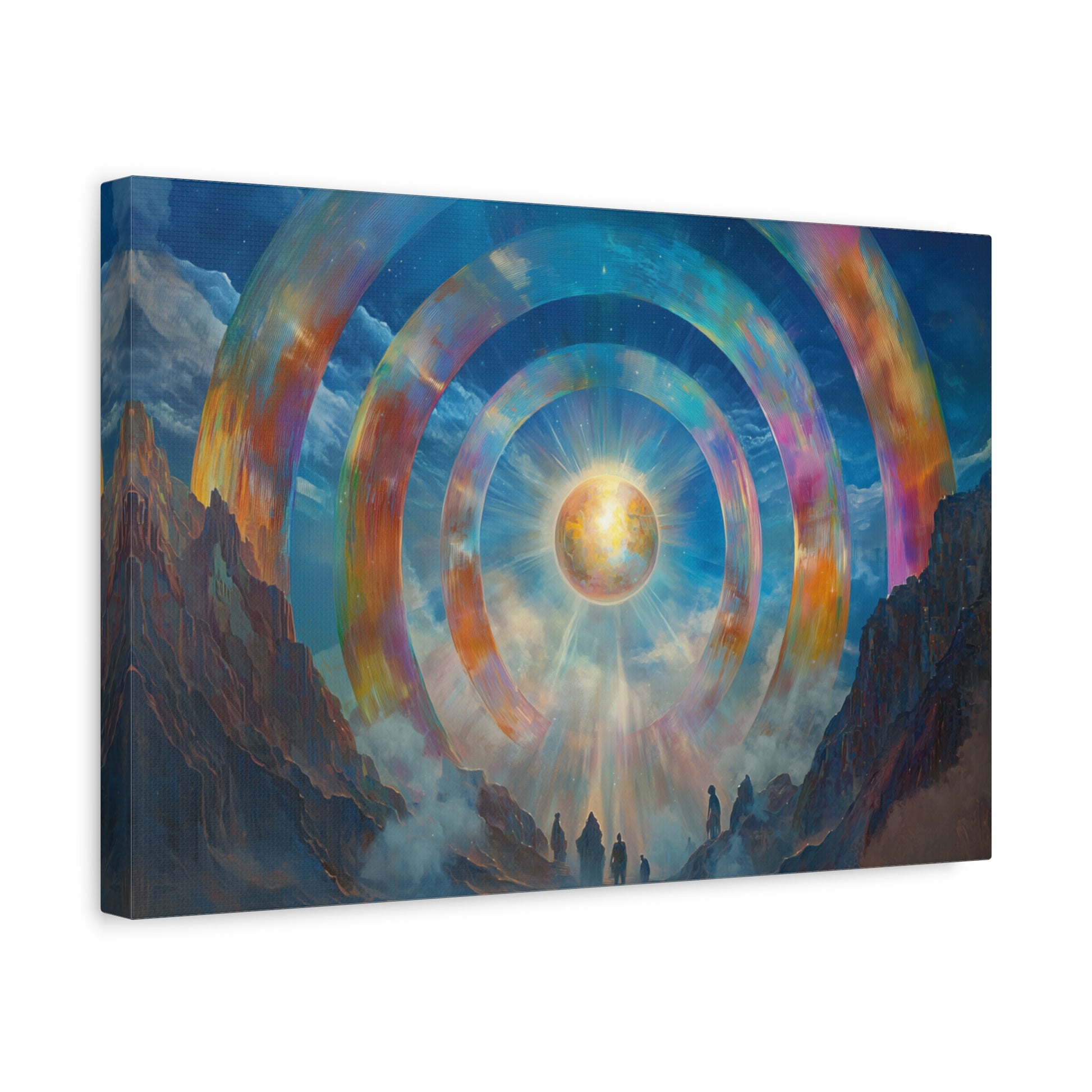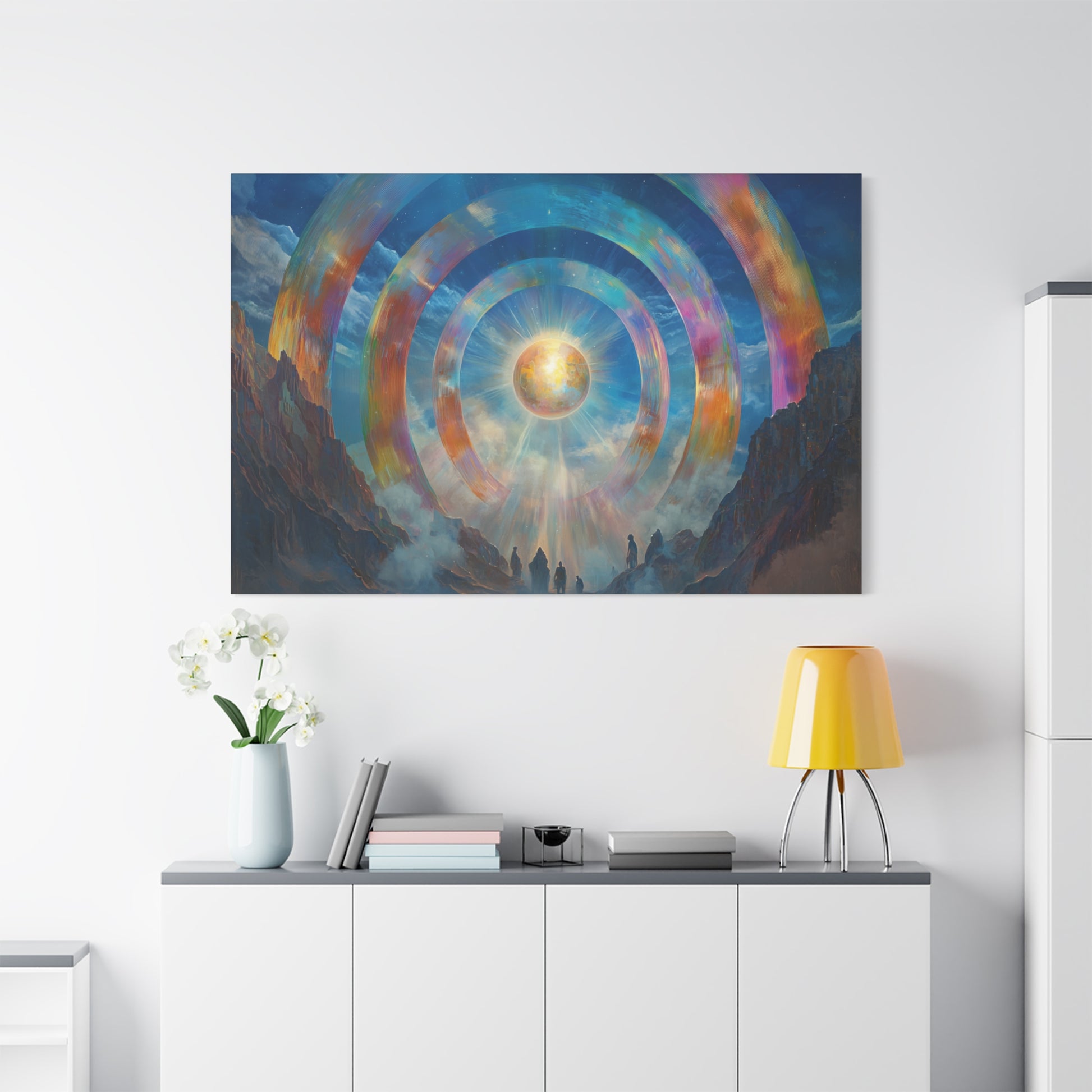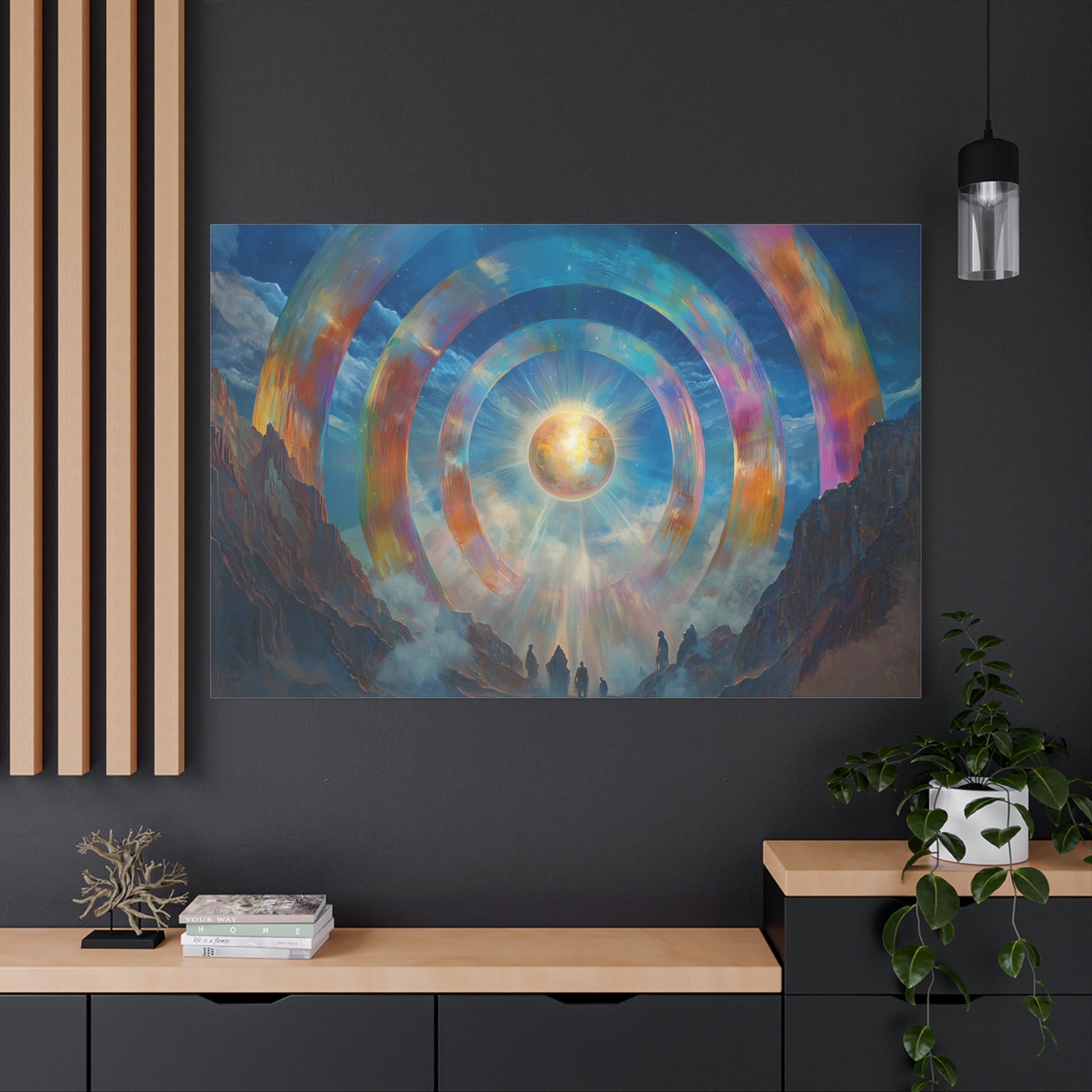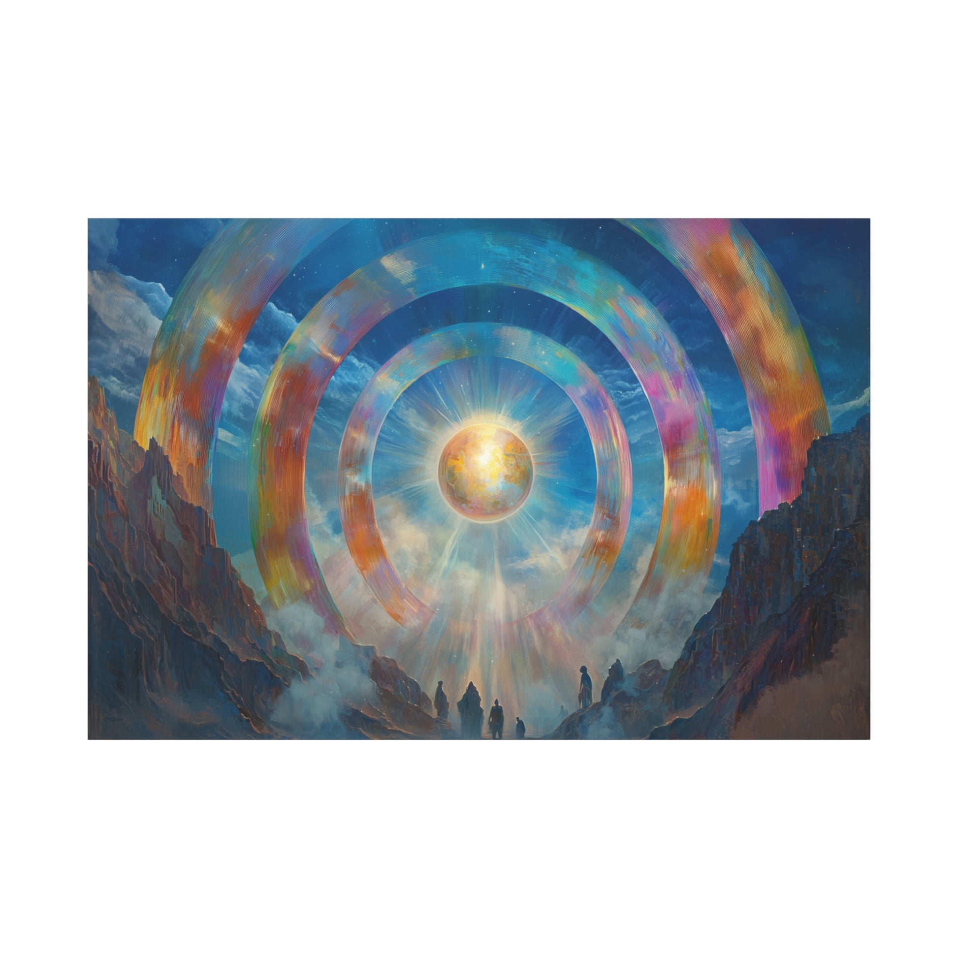 Radiant circles ripple through the ether, guiding seekers toward a luminous core. This cosmic dance whispers of ancient truths and invites contemplation of the infinite. Stand at the threshold of wonder and possibility.
