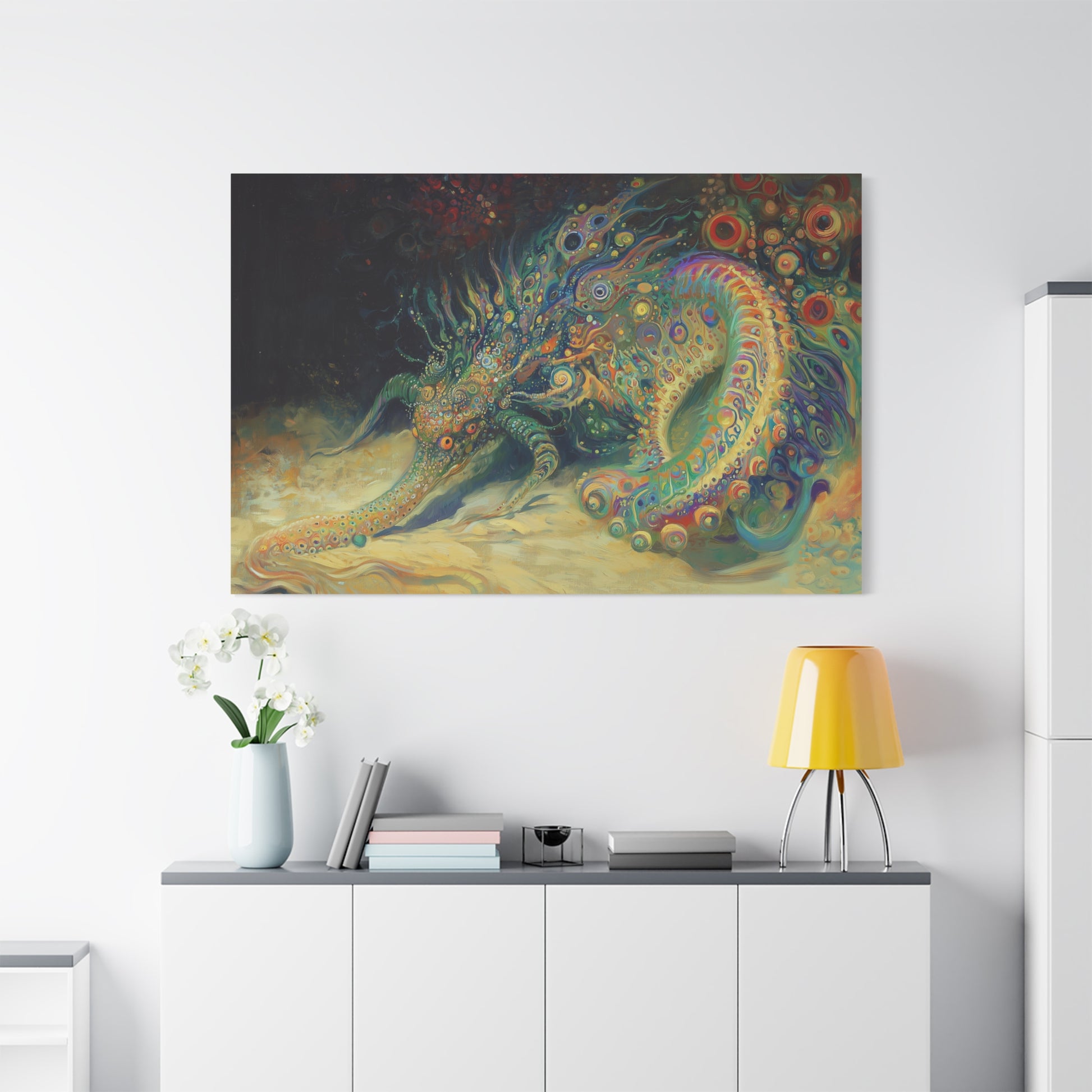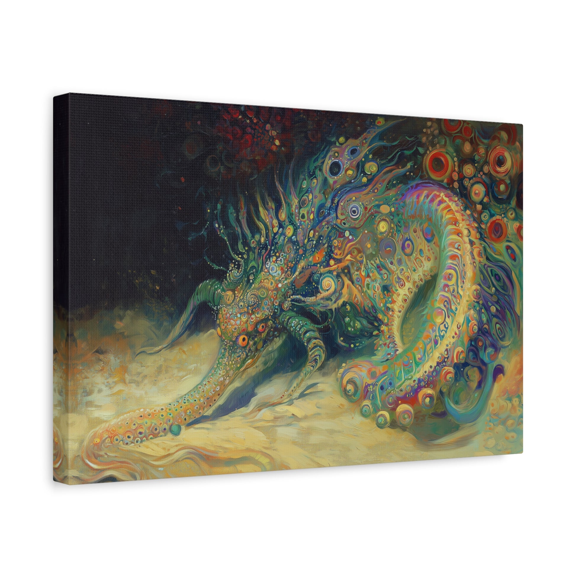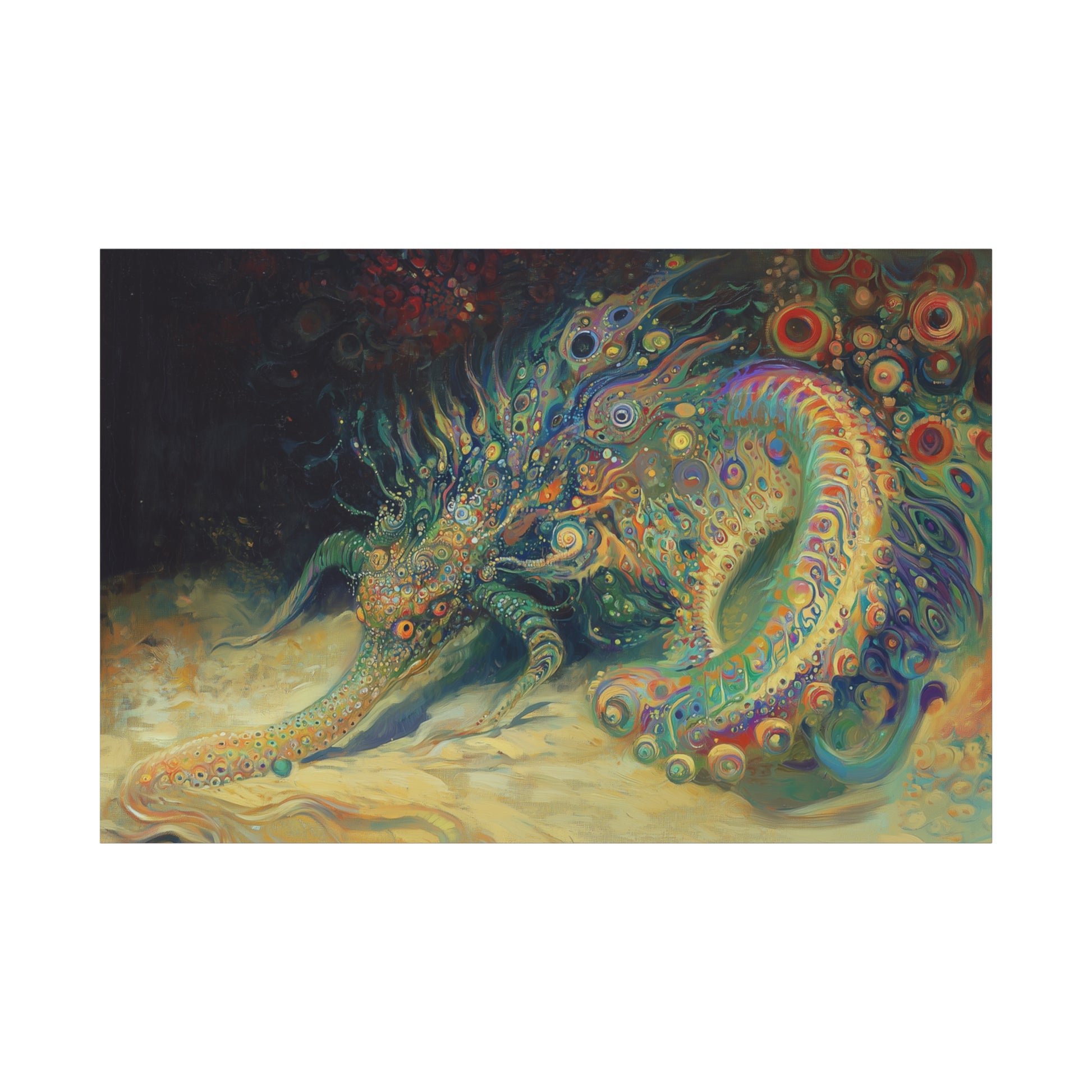 A mesmerizing creature unfurls in a kaleidoscope of colors, weaving through dreams and shadows. Its presence whispers ancient secrets, inviting the soul to wander through realms of mystery and wonder.