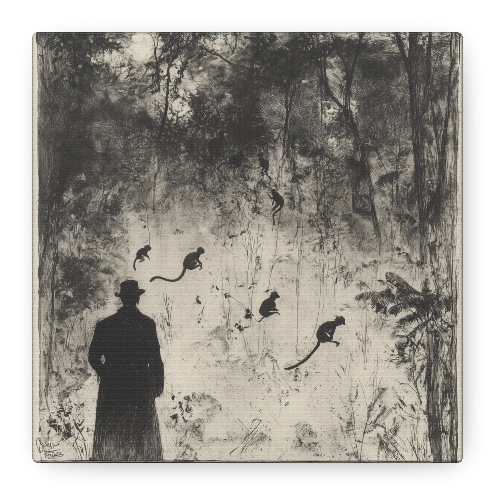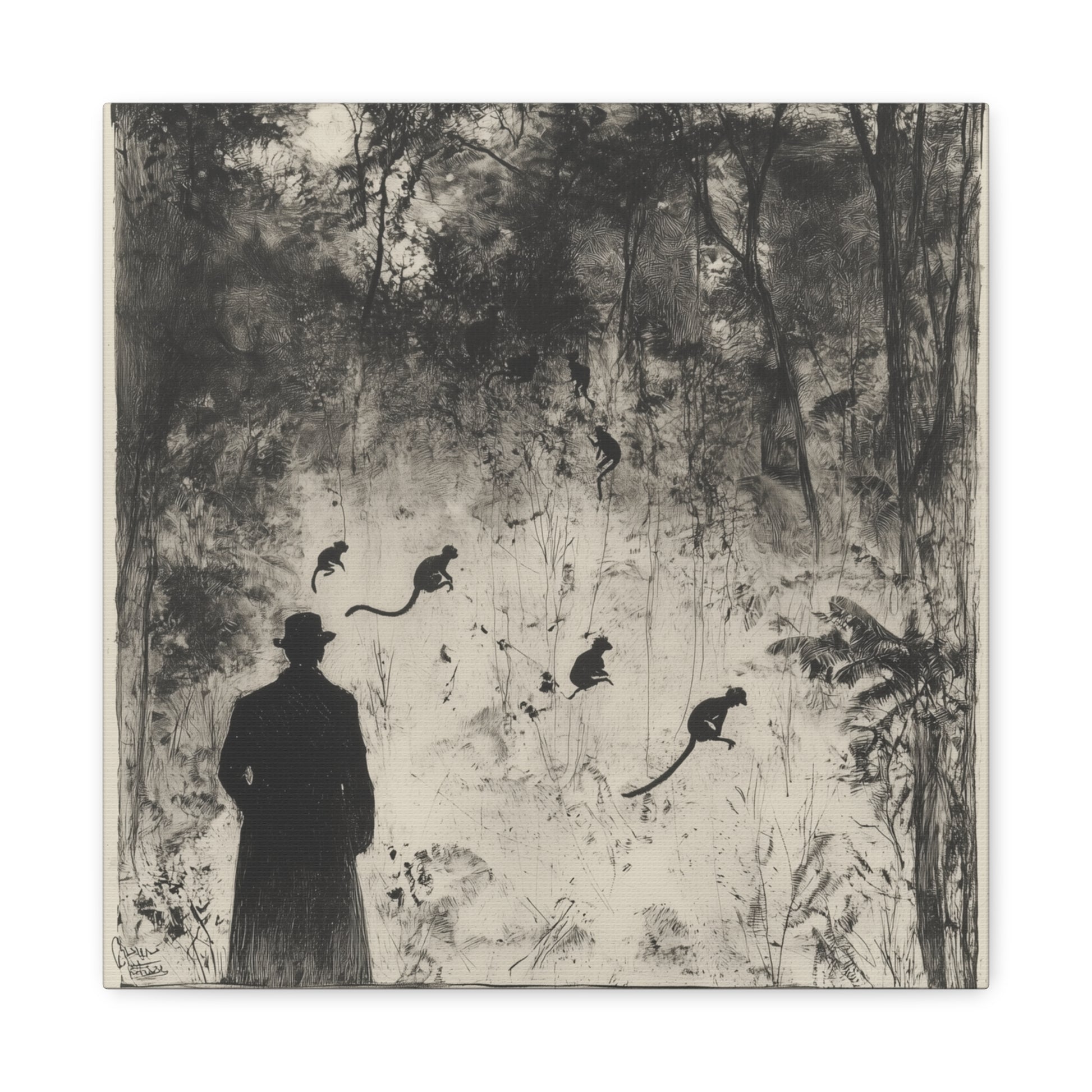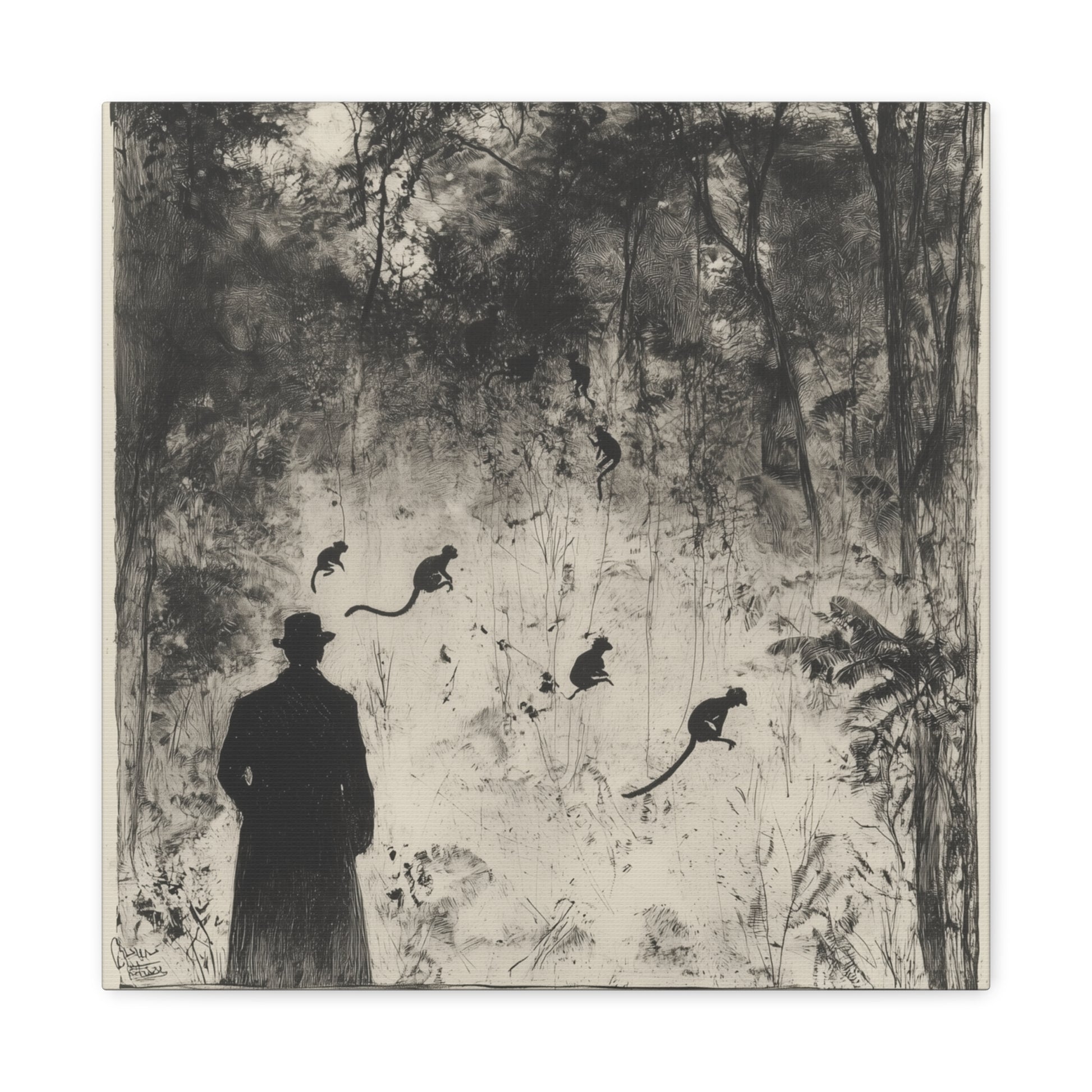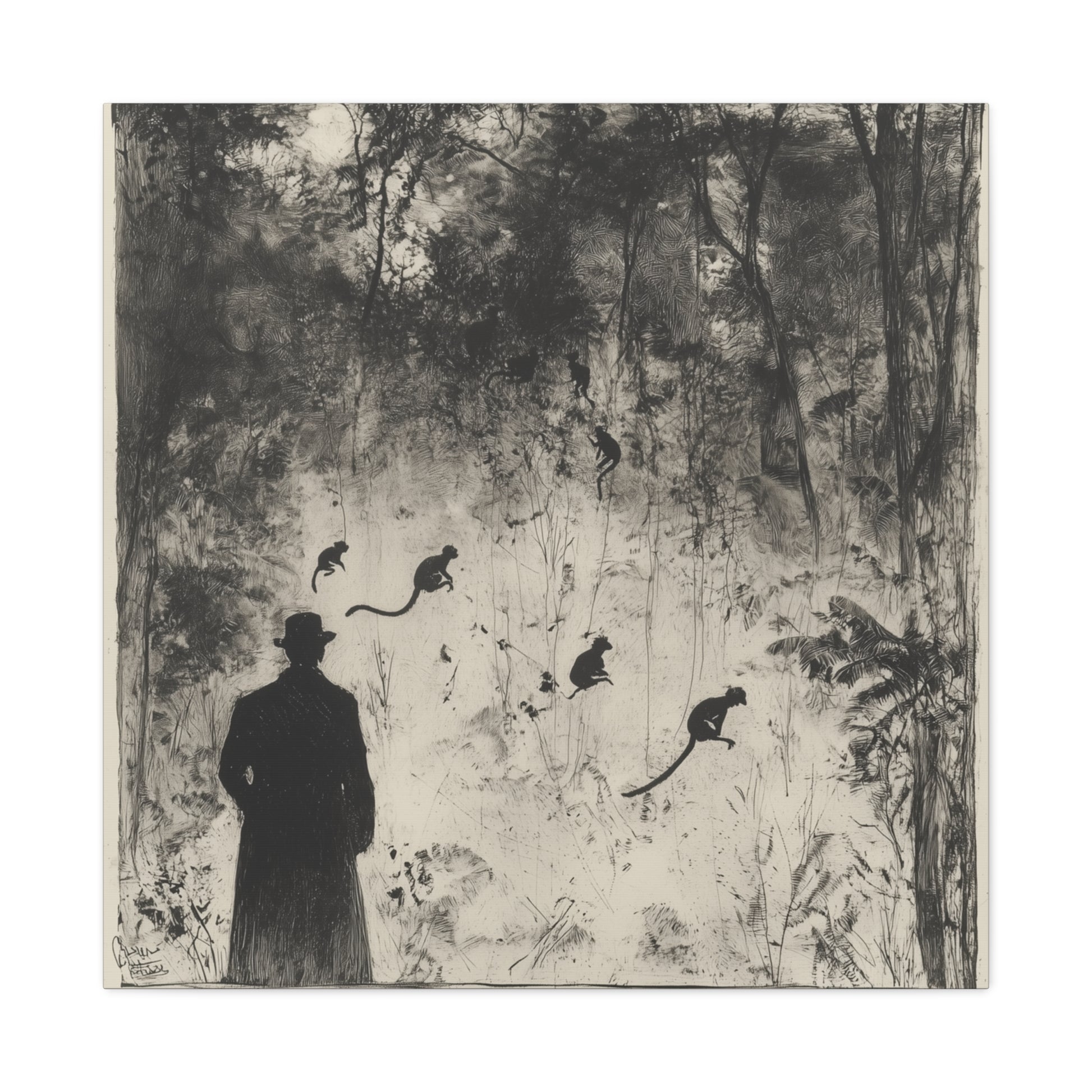 In the twilight of the forest, shadows dance with a life of their own, weaving mystery into the fabric of silence. A figure stands, a sentinel in the interplay of light and shadow, pondering the unseen whispers of the wild.