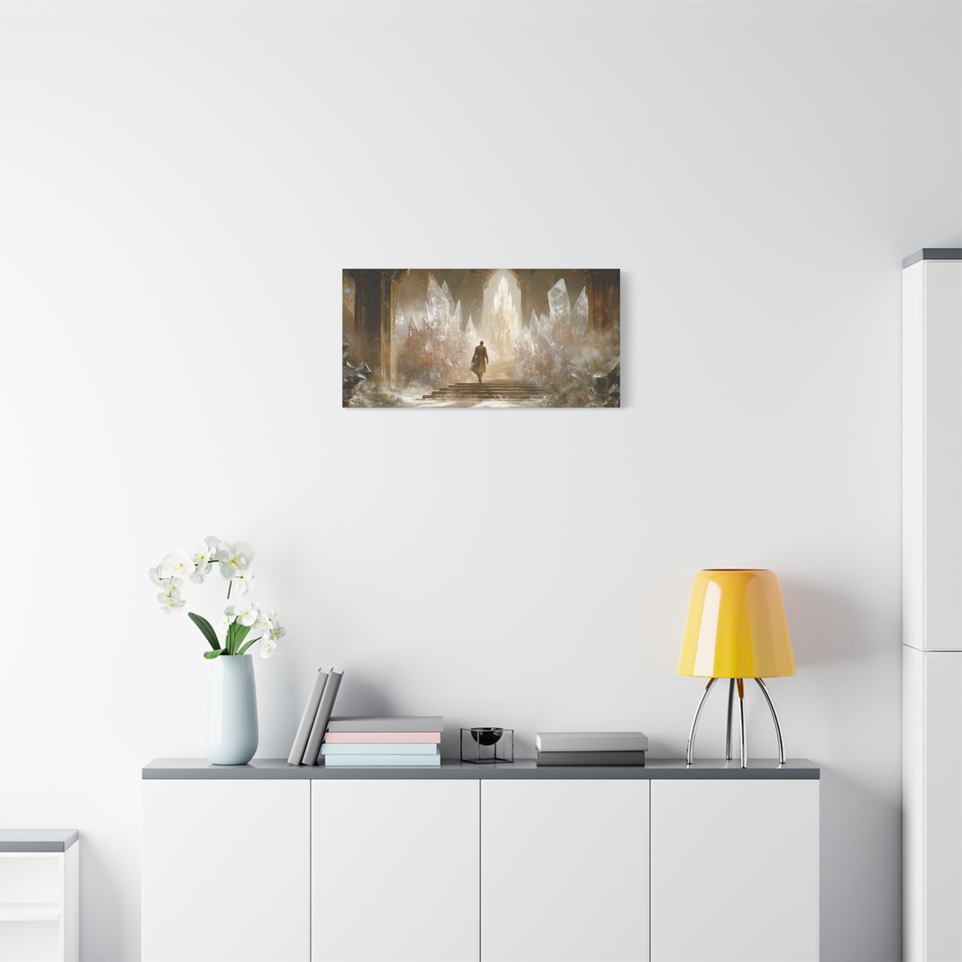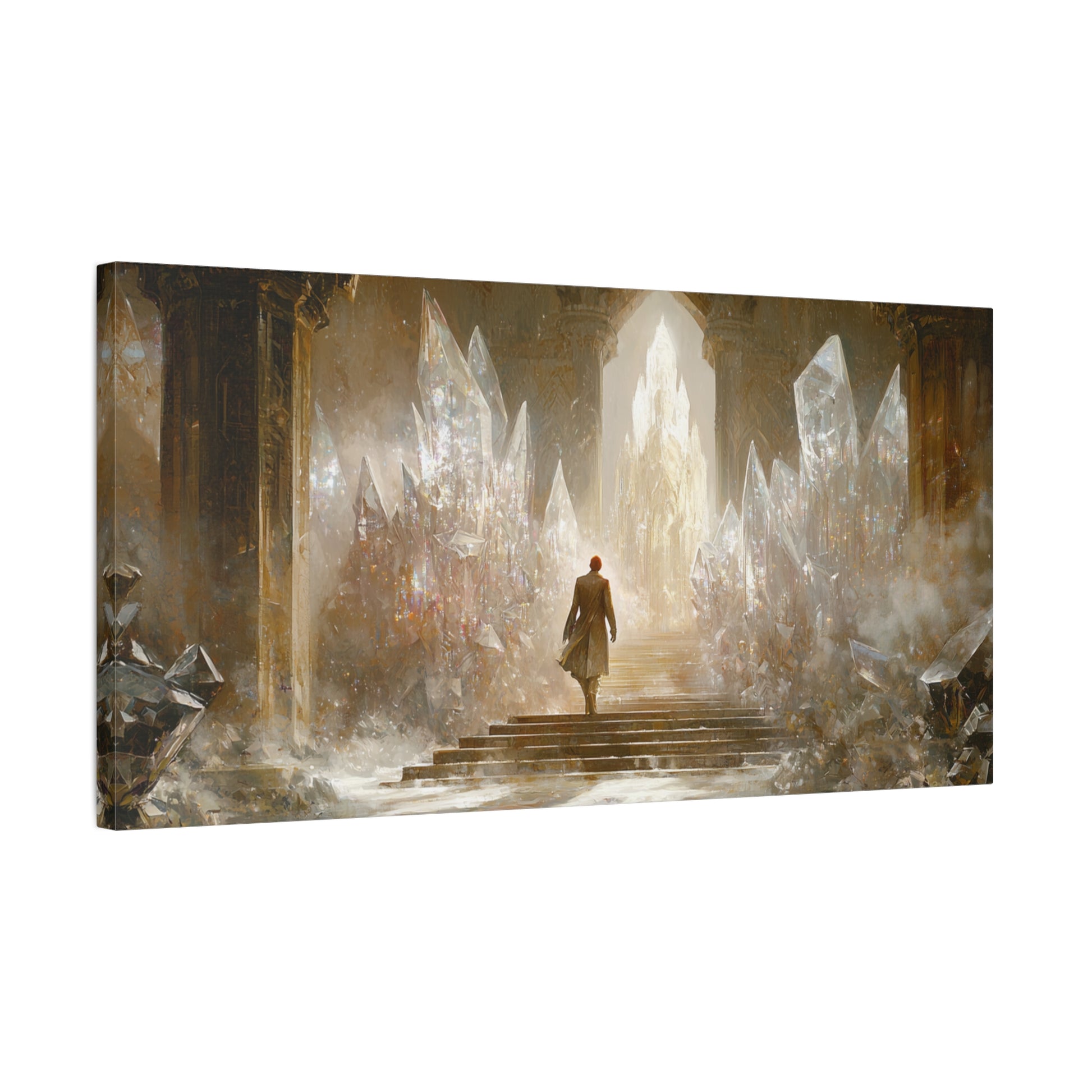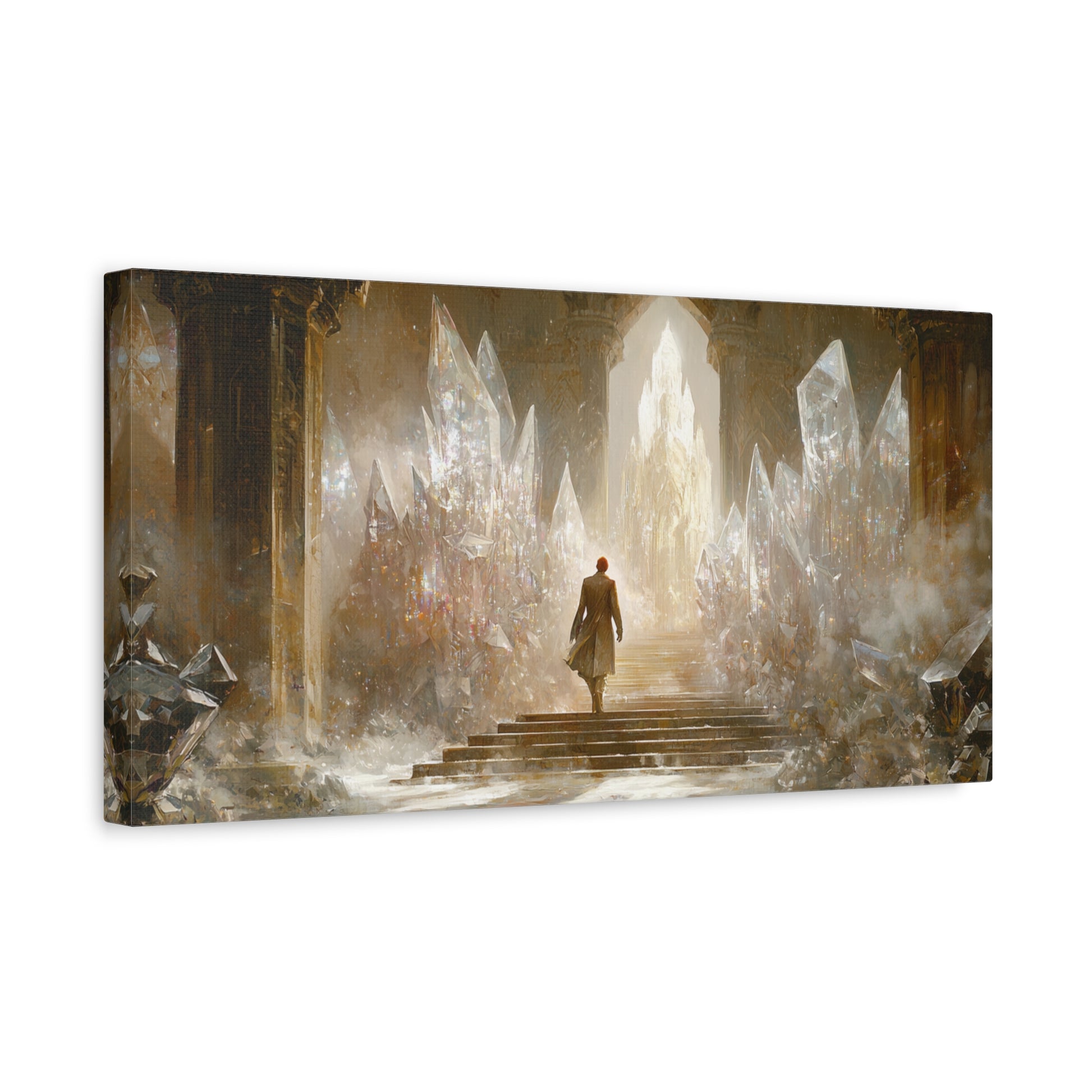 An ethereal glow guides the solitary traveler through crystalline spires, where light dances in spectral hues. Each step resonates with the promise of revelation, inviting the soul to transcend the mundane and embrace the mystical.
