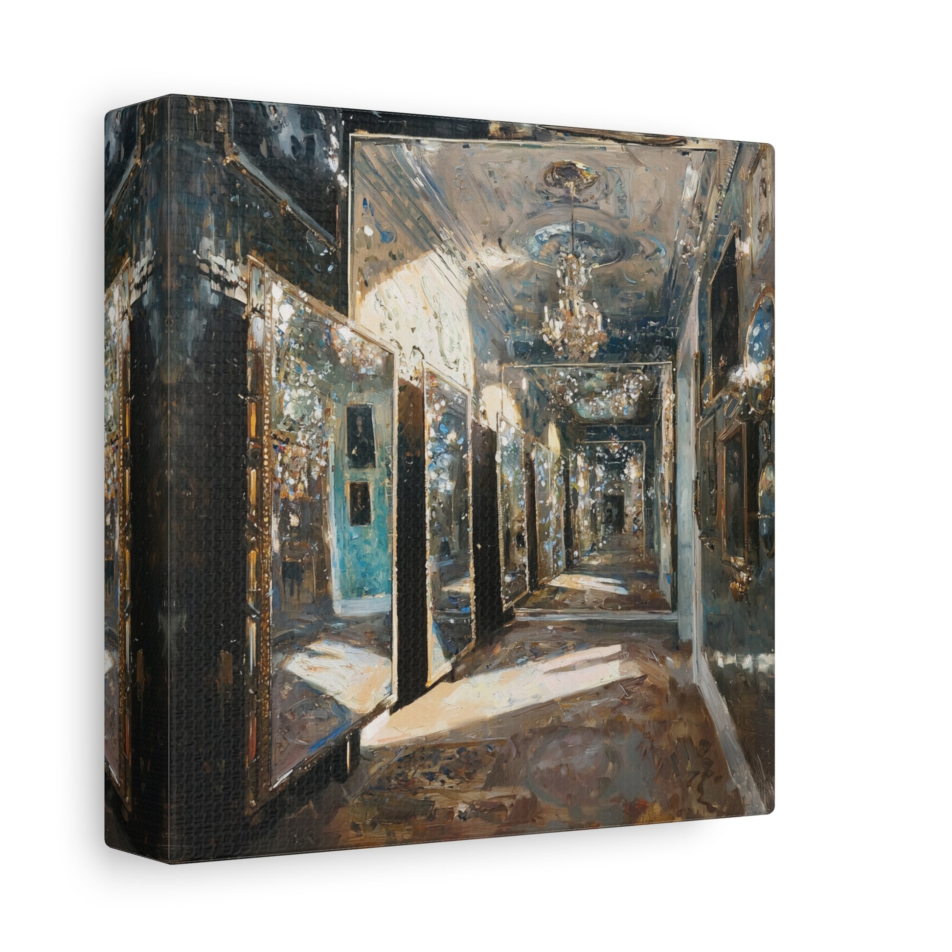 In a corridor where light dances with shadows, reflections whisper forgotten tales. Each mirrored surface holds a secret world, inviting the viewer to wander through layers of shimmering reality and illusion.