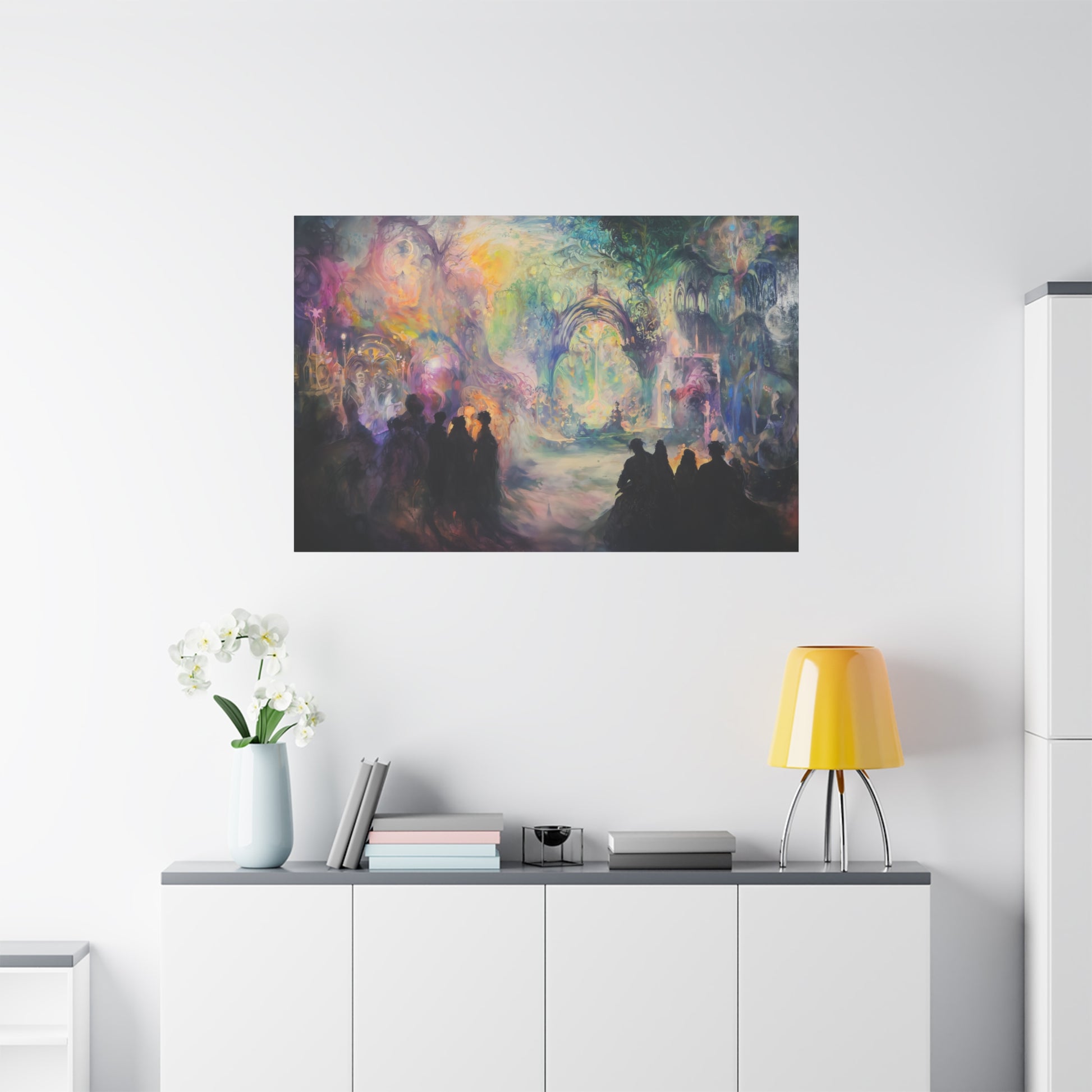 A realm where shadows gather beneath arches of luminescent dreams, whispers of ancient tales echo through vibrant hues. Here, light dances with mystery, inviting souls to wander amidst the ethereal glow of forgotten realms.