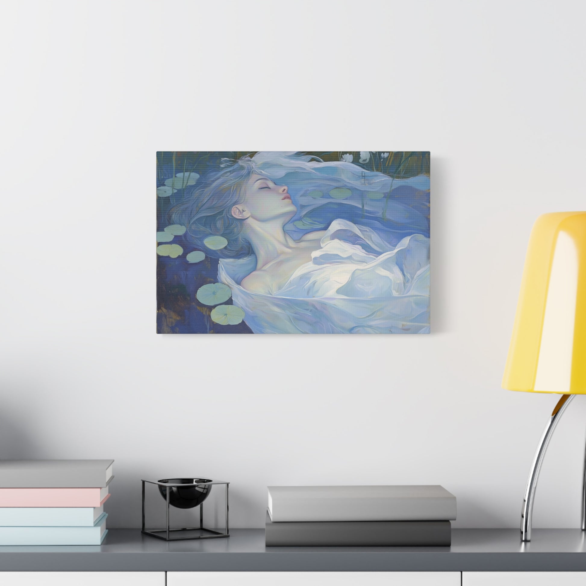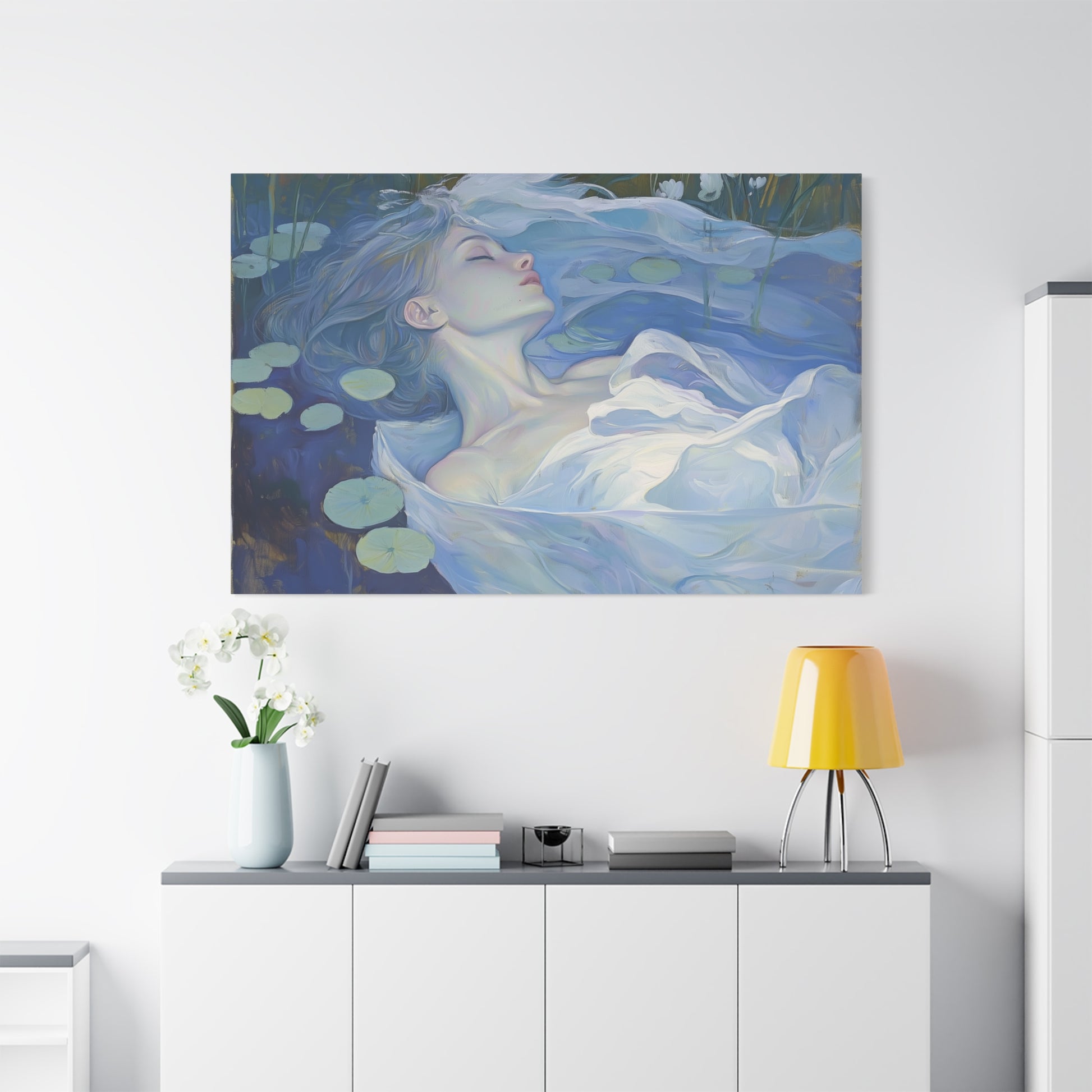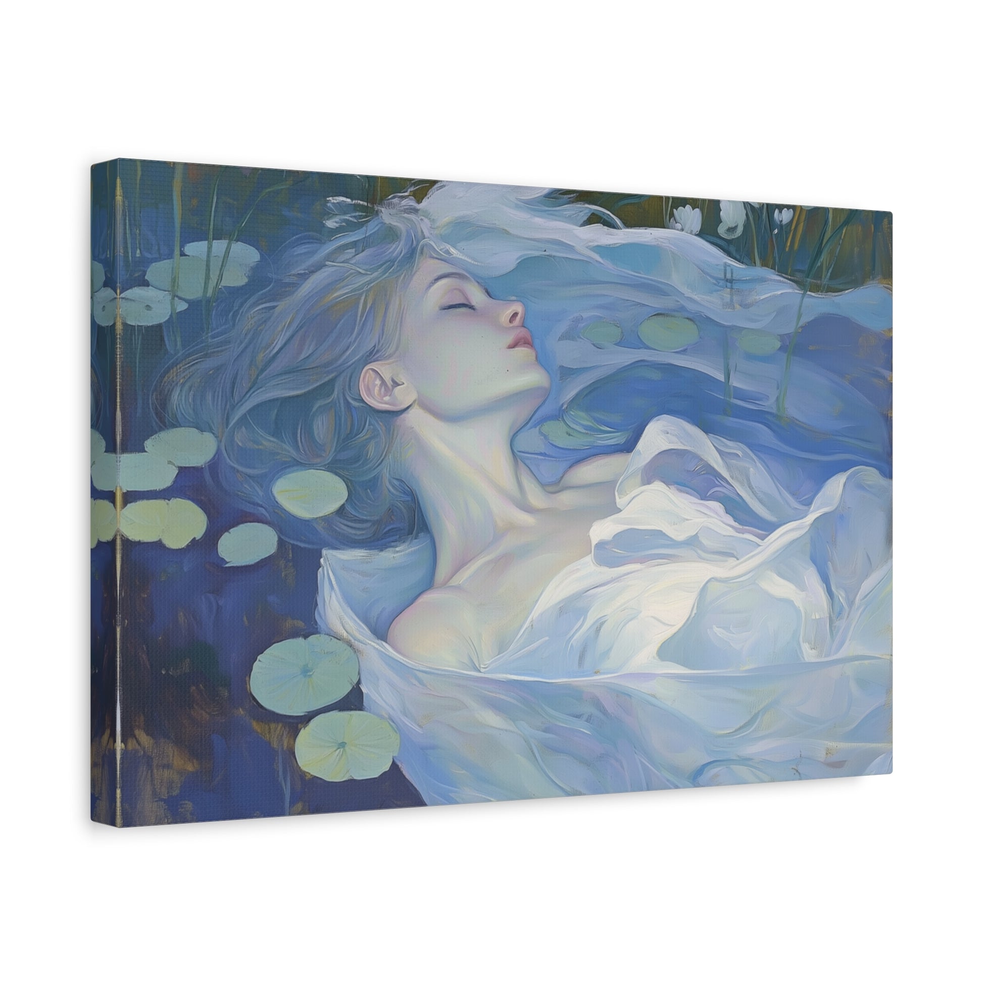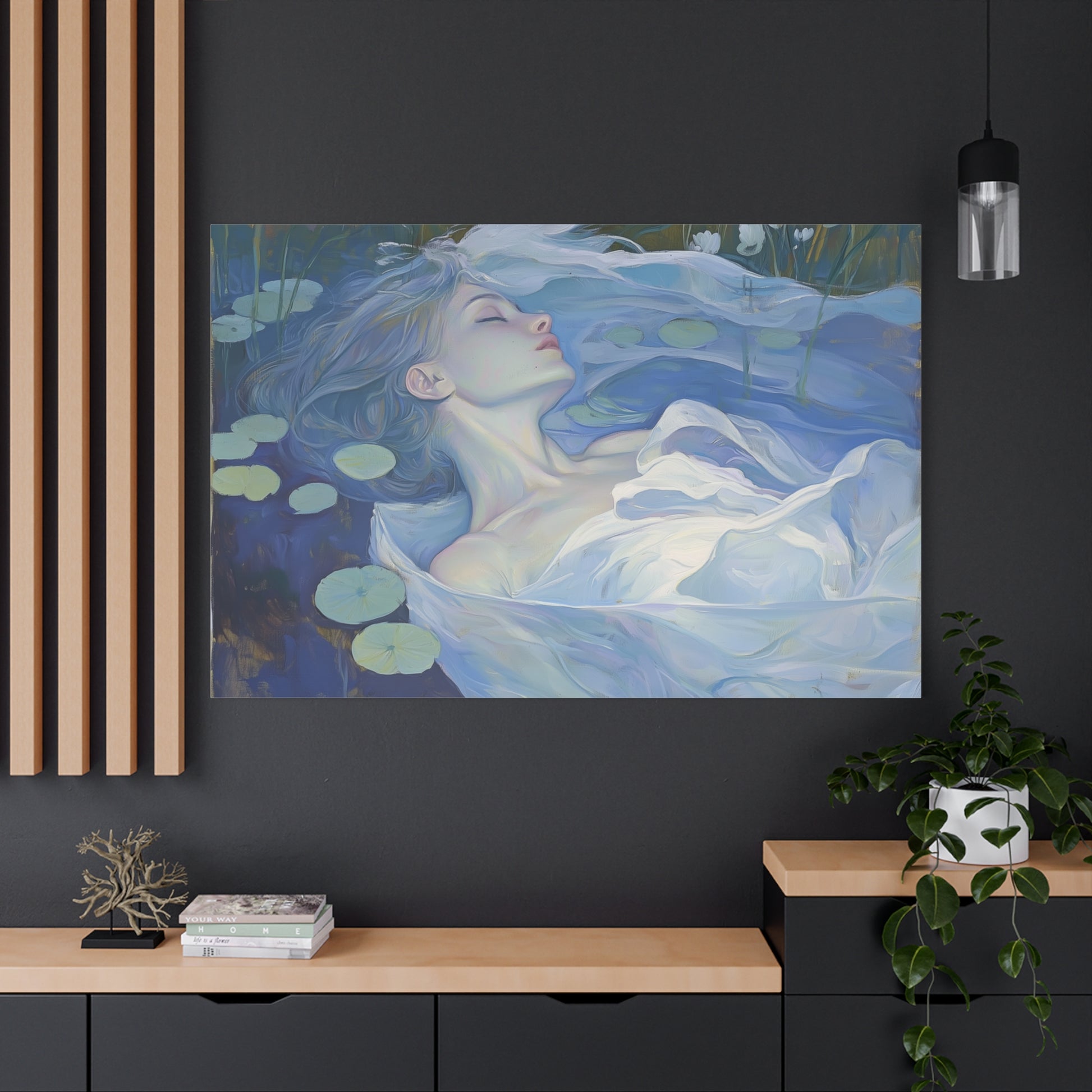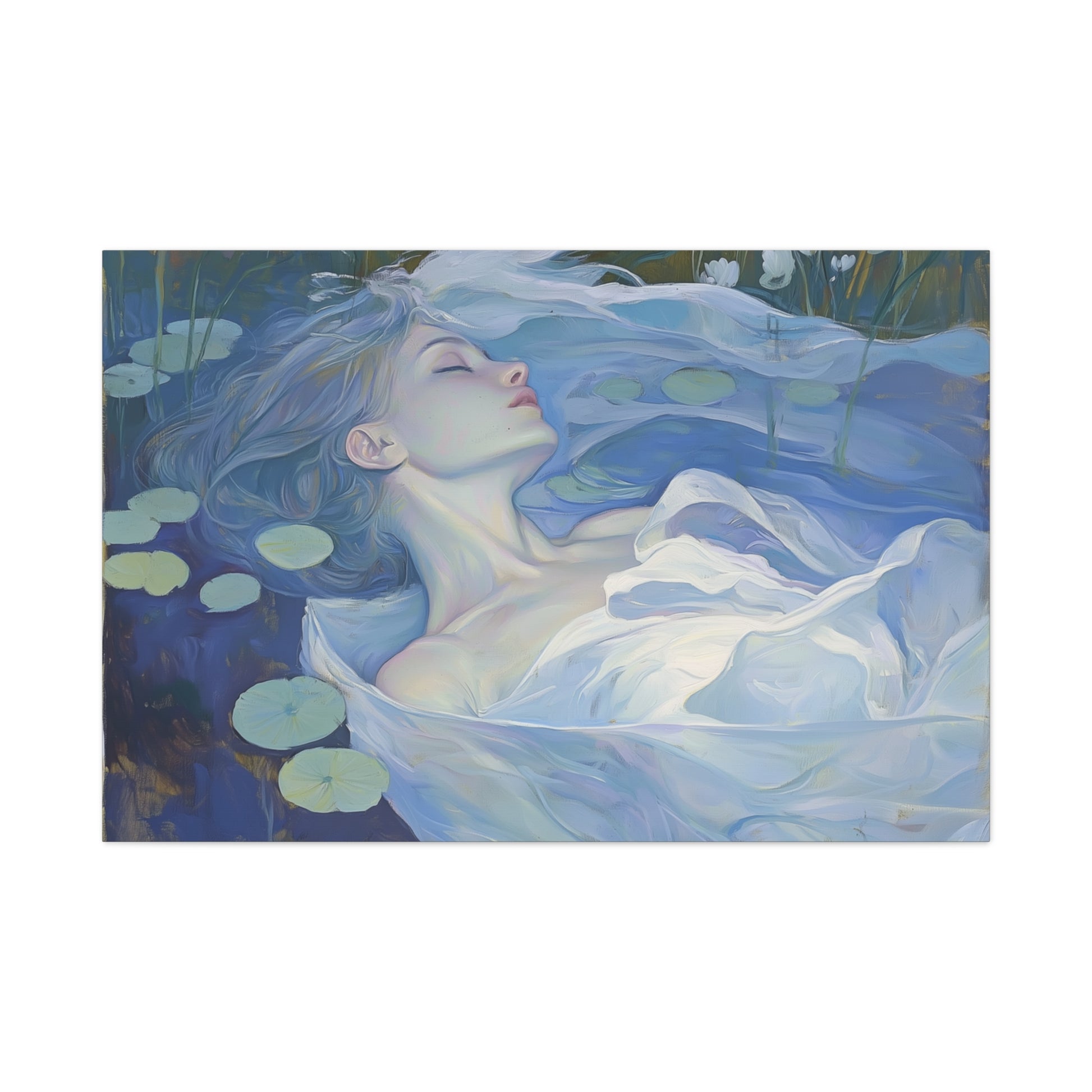 In serene waters, she drifts between dreams and reality, cradled by the gentle embrace of the lilies. Her ethereal presence whispers of tranquility, inviting the soul to linger in hushed reverie.