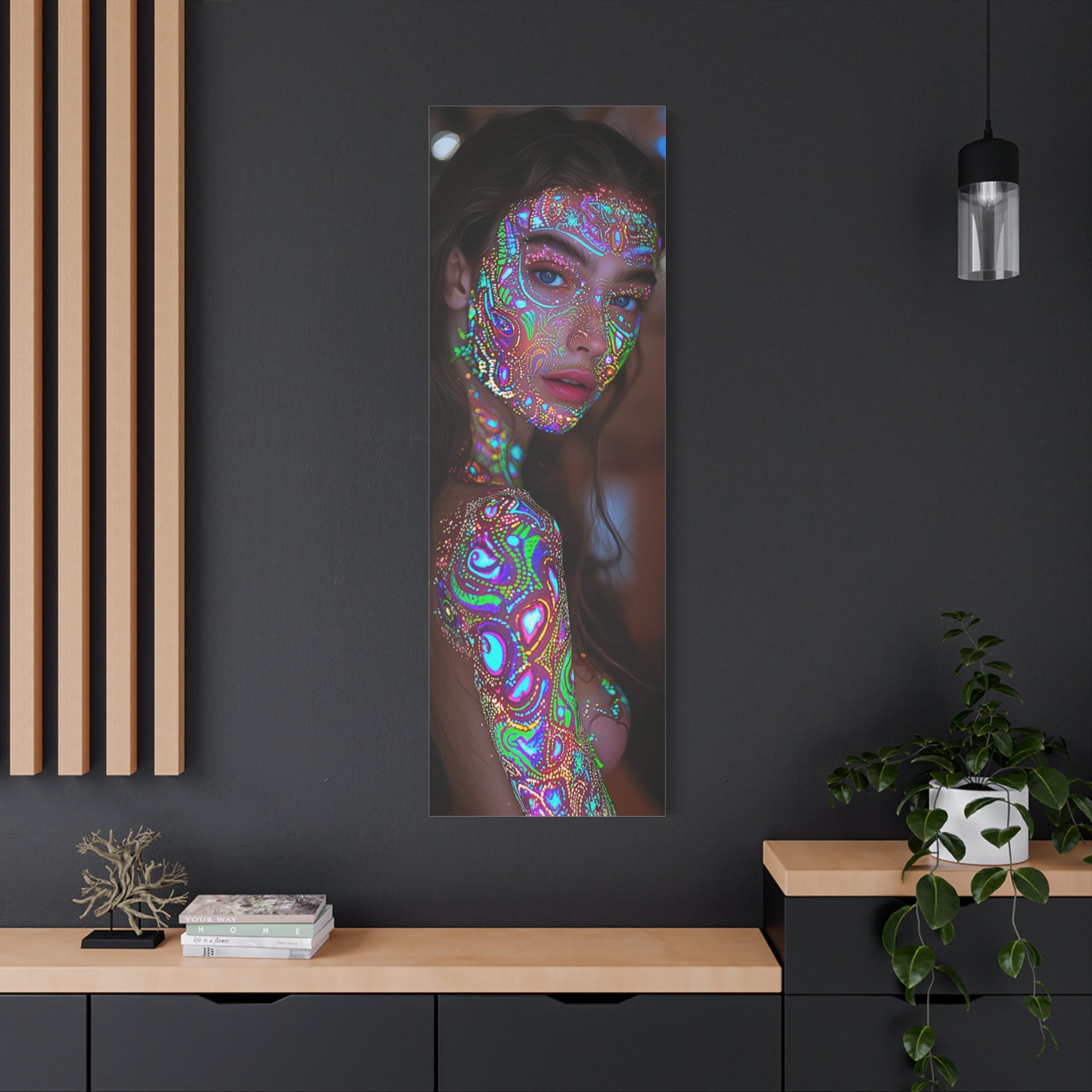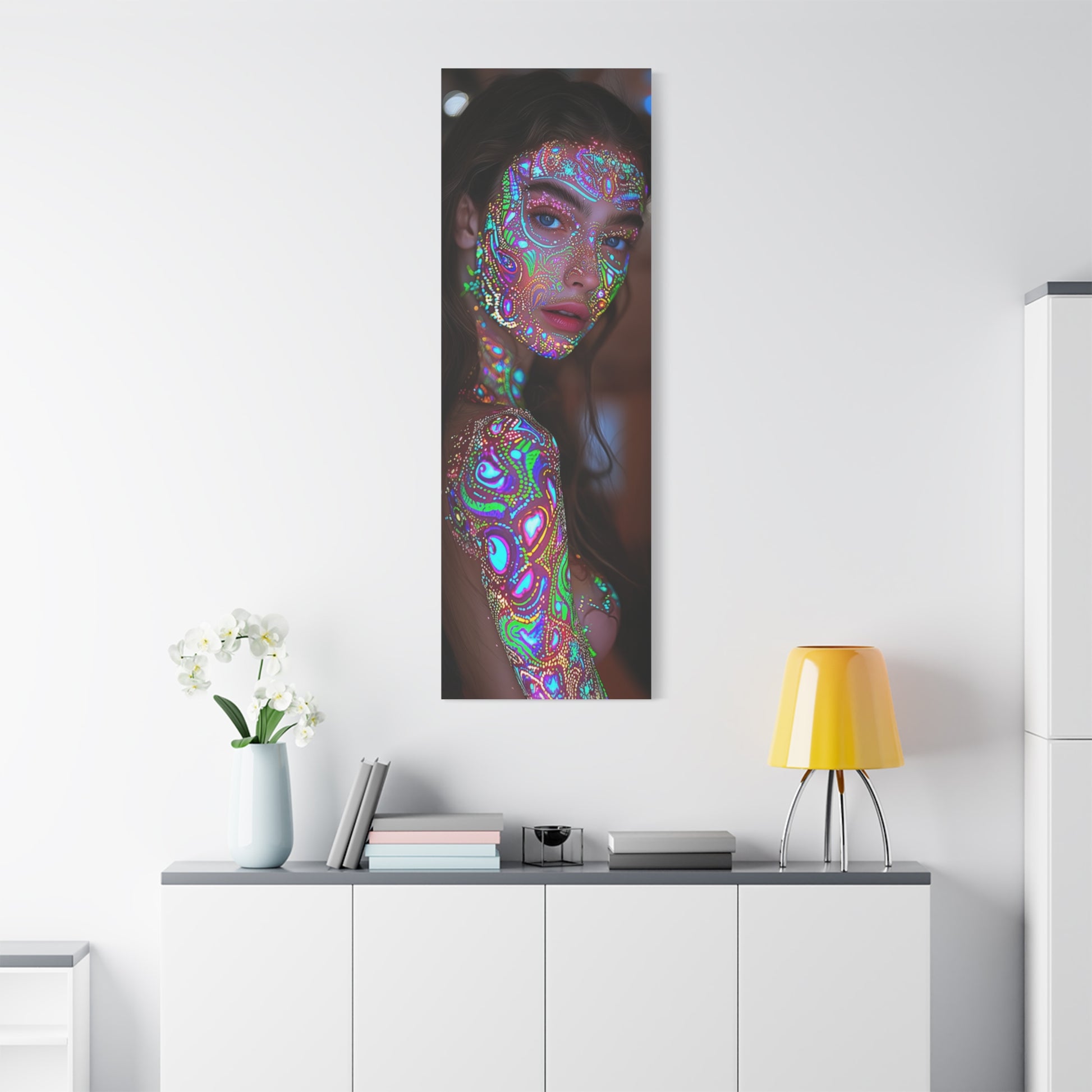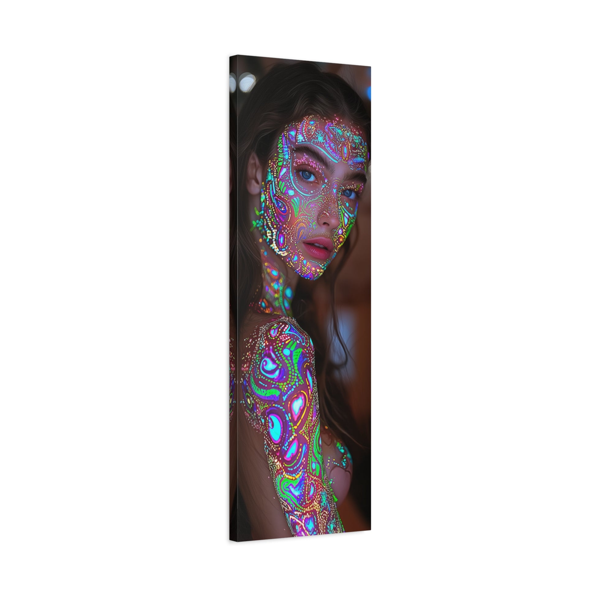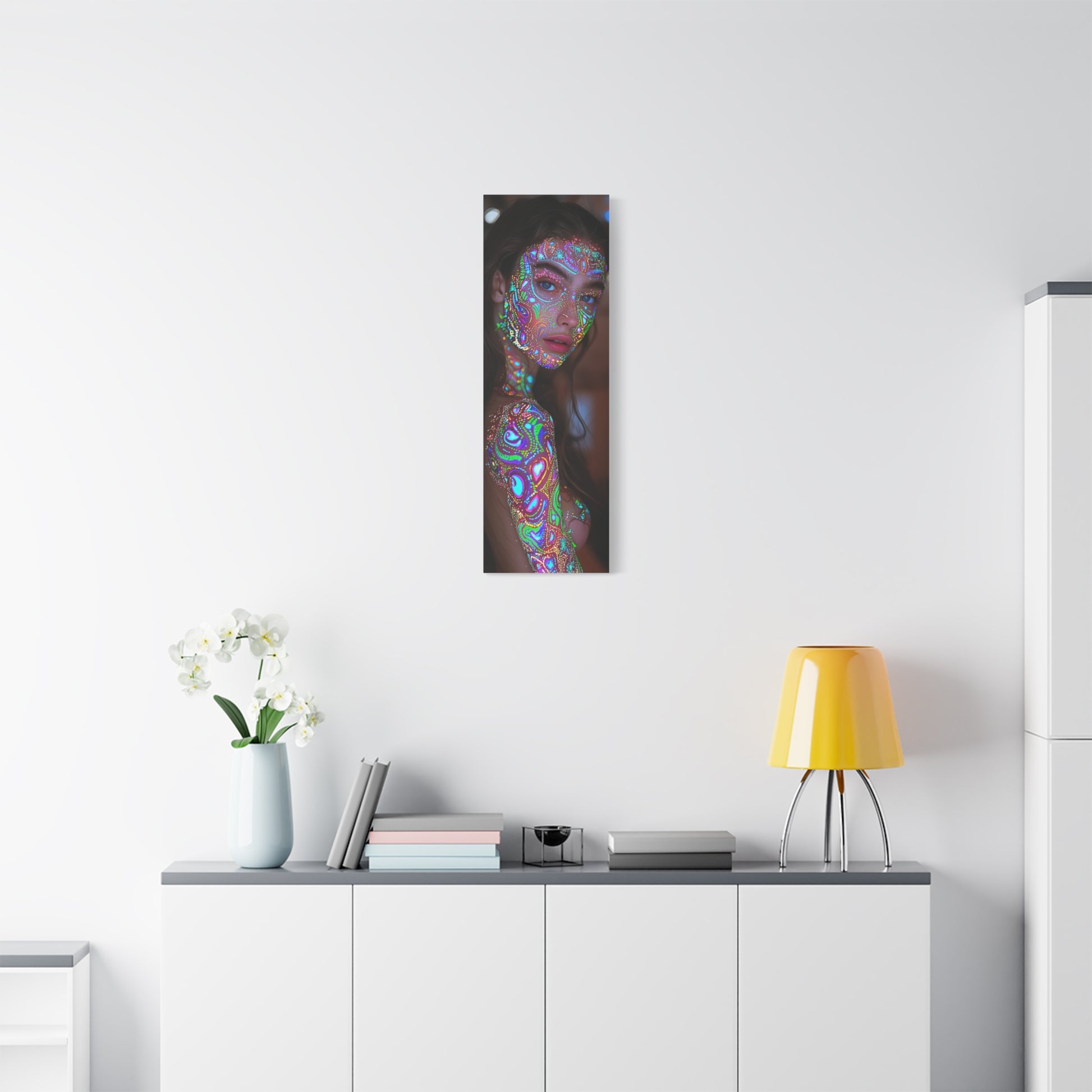 In a dance of light and color, this artwork unveils a realm where the boundaries of self dissolve into an iridescent dreamscape. Here, identity is woven with cosmic threads, whispering secrets of the universe.