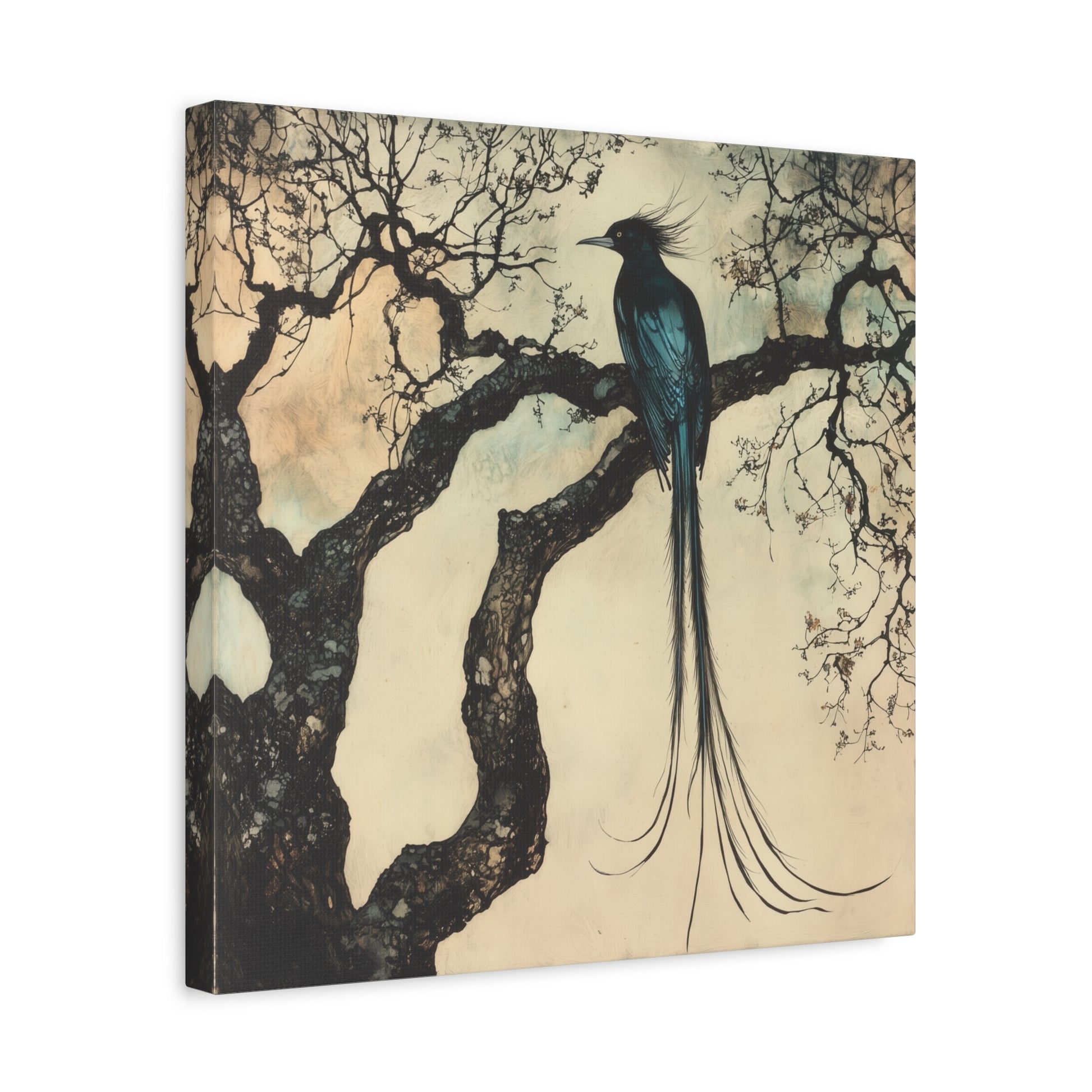 Perched amid twisted branches, the bird embodies a moment of introspective stillness. Its plumage whispers secrets of the wind, capturing the quiet majesty of nature's elusive beauty in a timeless dance of light and shadow.