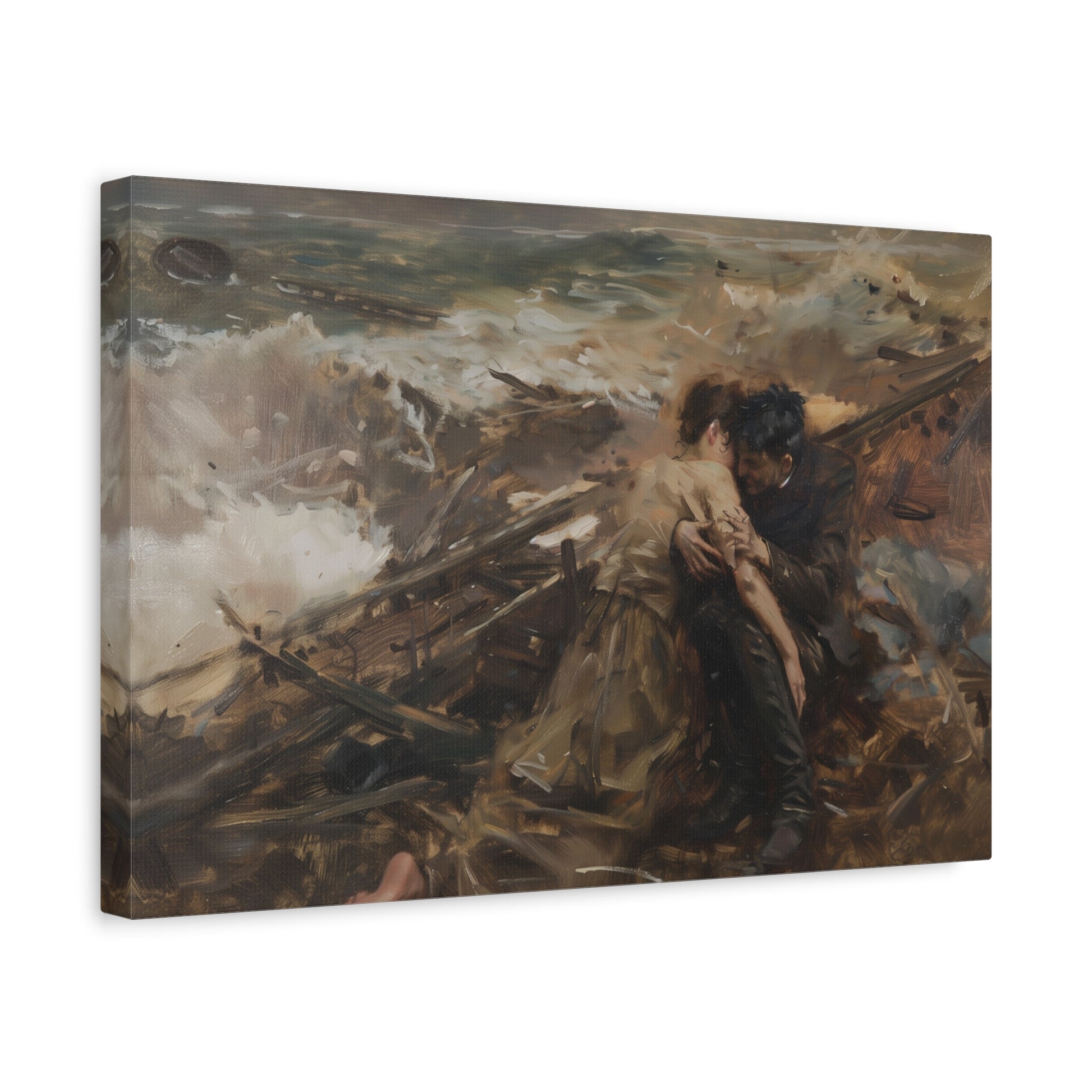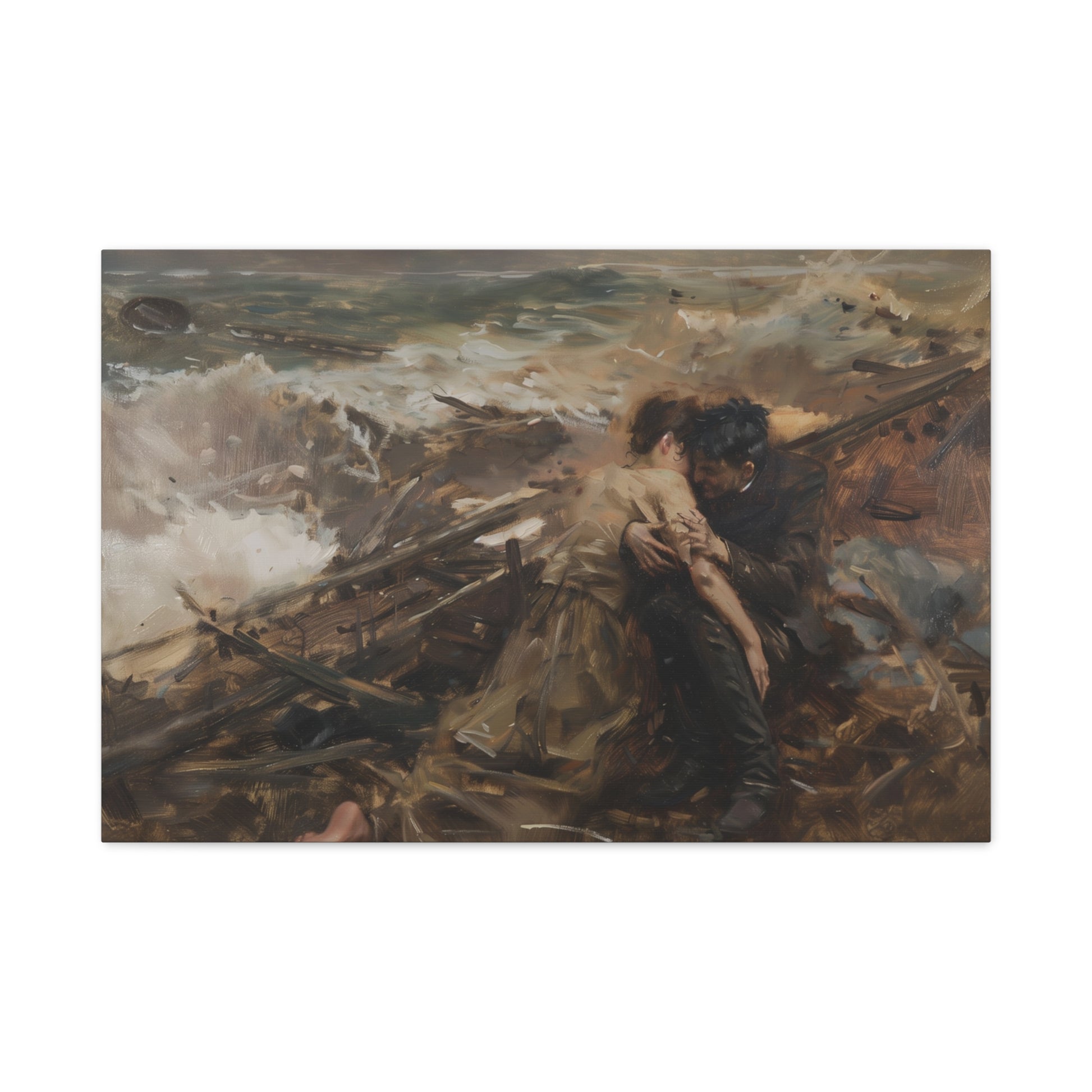 Amidst the swirling tempest, two souls find solace in each other's embrace. The tumultuous sea mirrors the storm within, yet their bond illuminates the darkened shores, a beacon of resilience against the relentless tide.