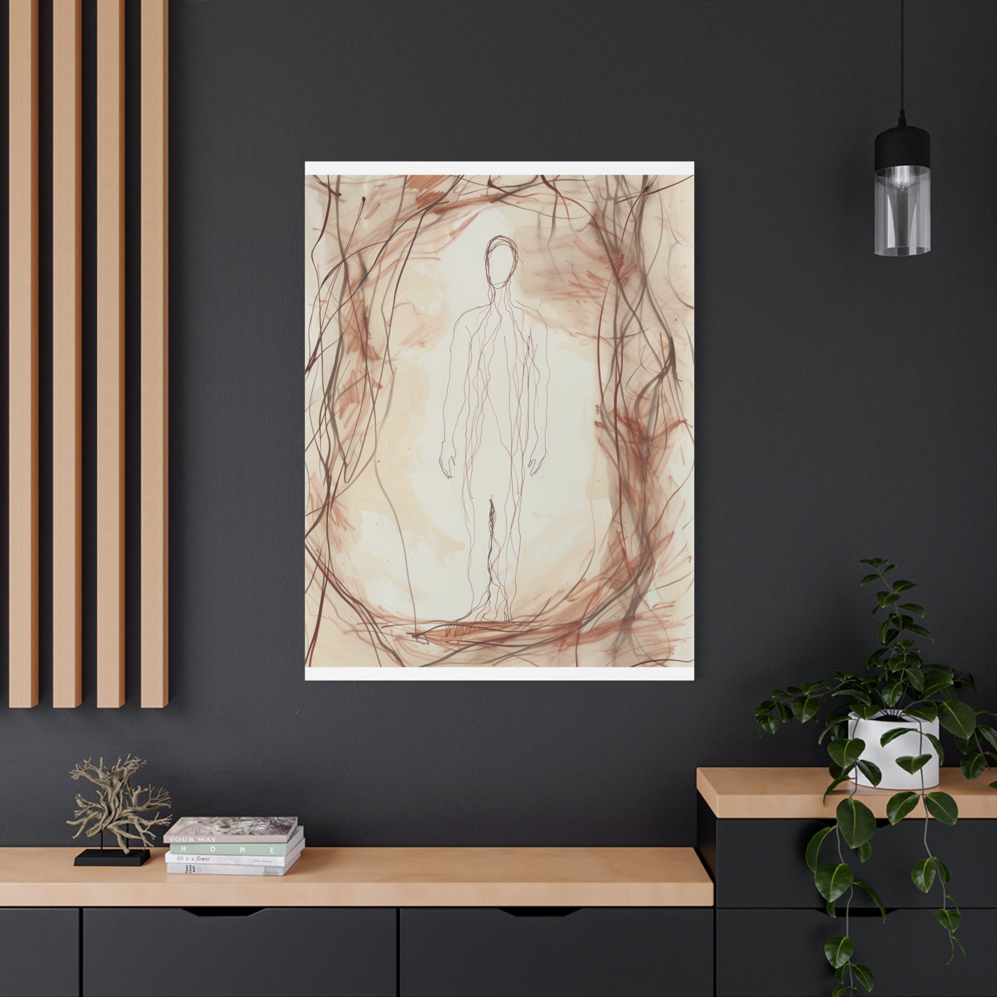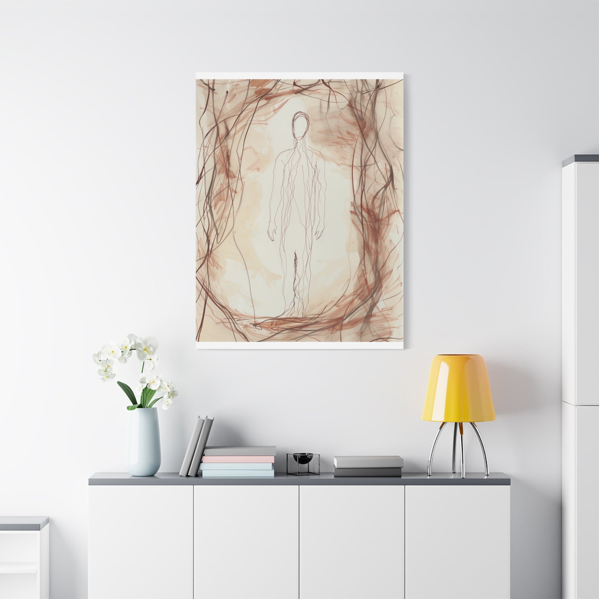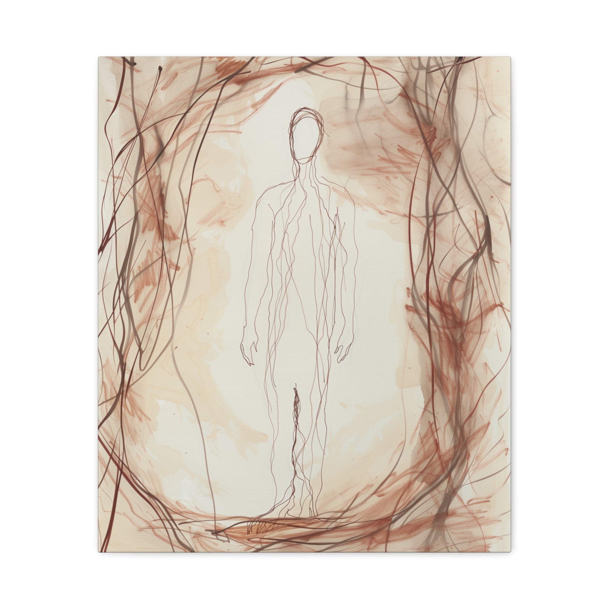 In a realm where form and essence intertwine, a figure emerges woven from the threads of existence. The lines dance like whispers, inviting a journey through the tapestry of life and self-discovery.