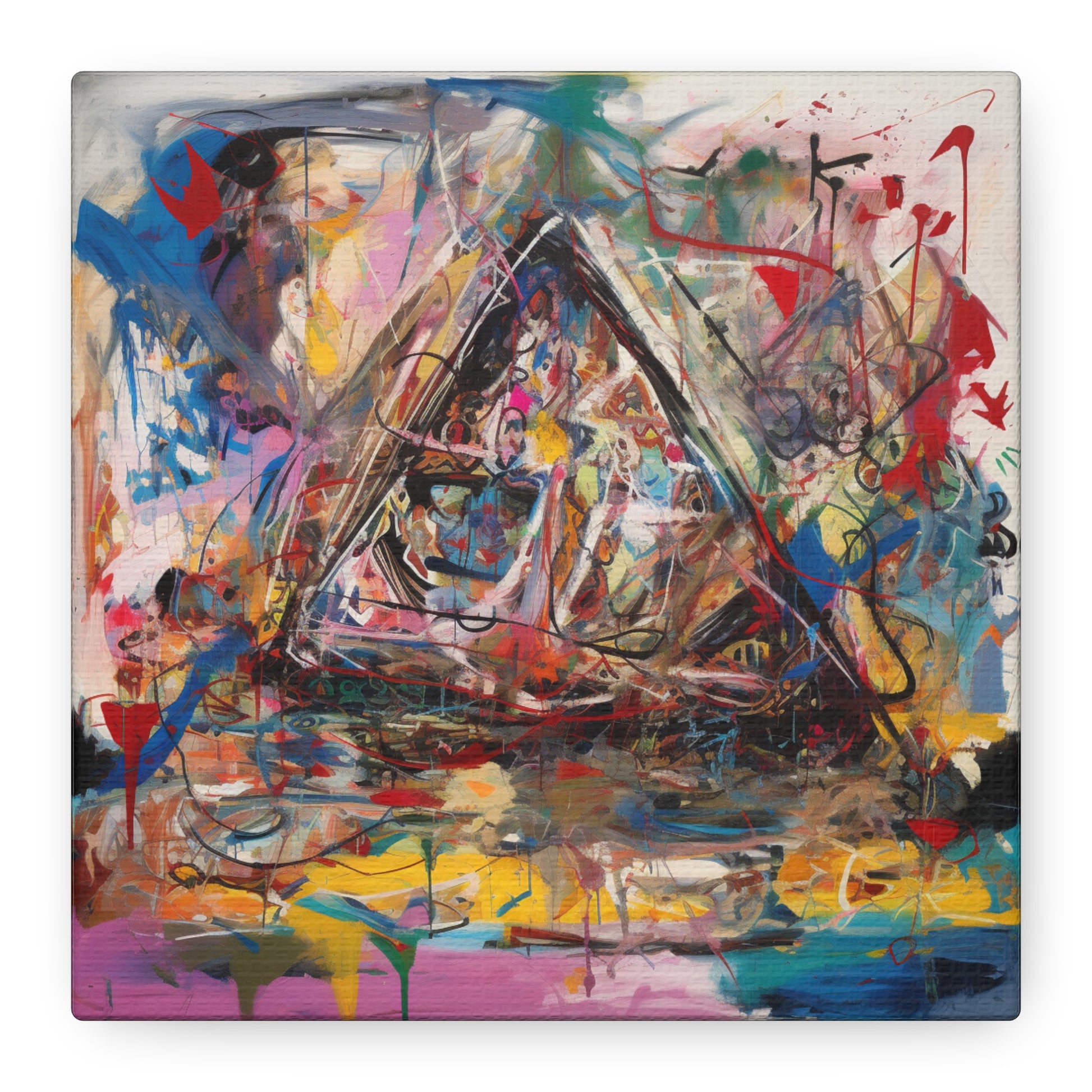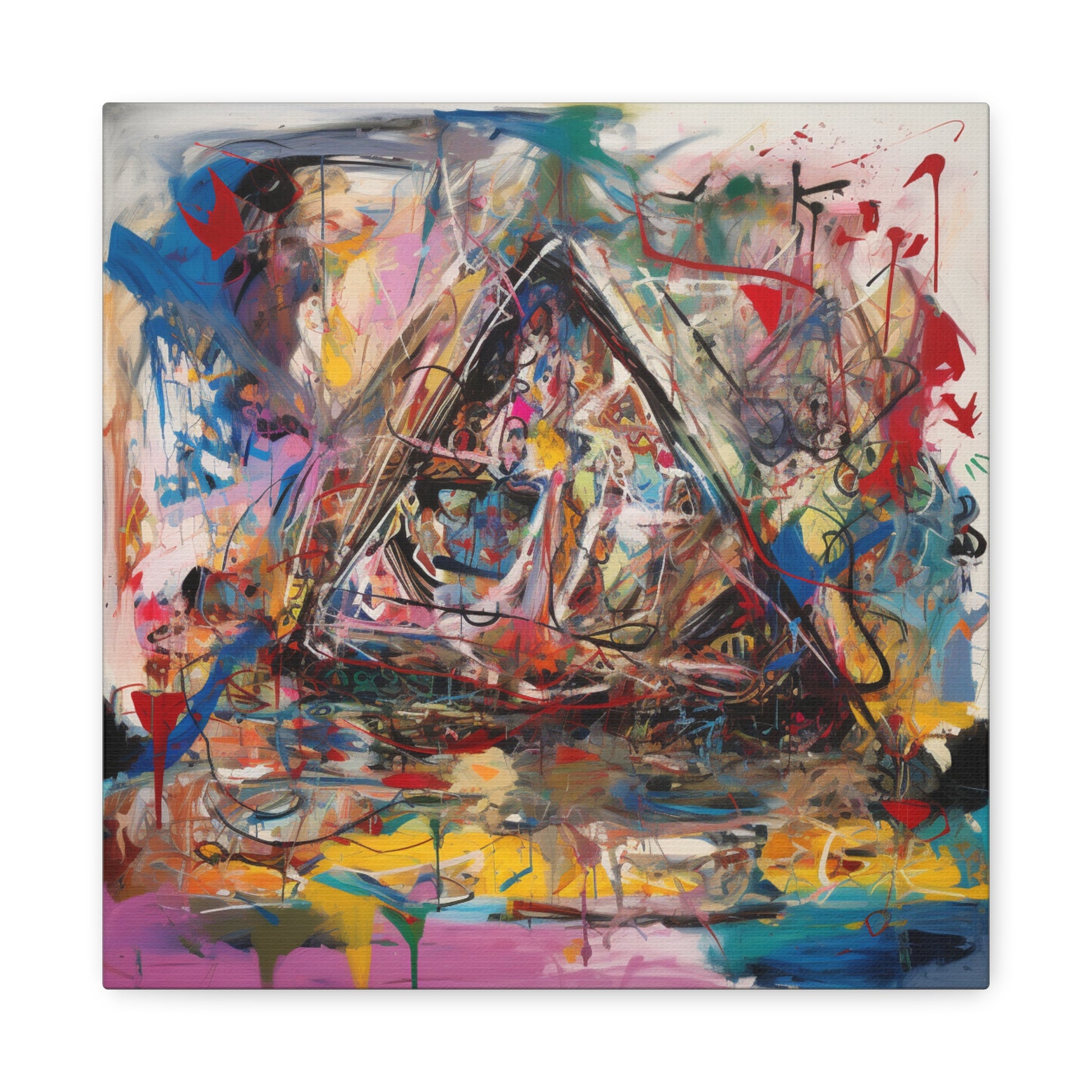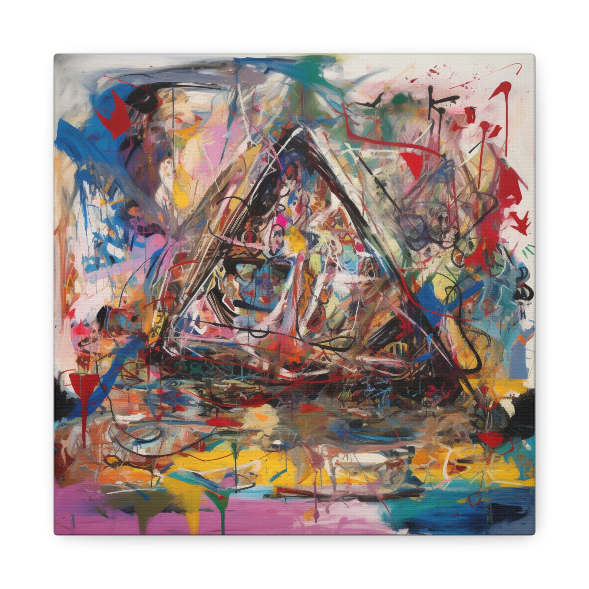 Within this vibrant tapestry, colors collide and merge, forming a chaotic harmony. The triangular form emerges, whispering secrets of balance amid chaos, inviting the viewer into a realm where imagination knows no bounds.