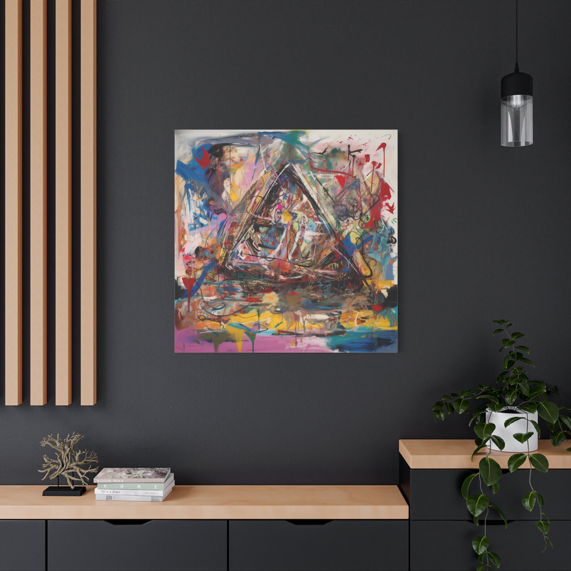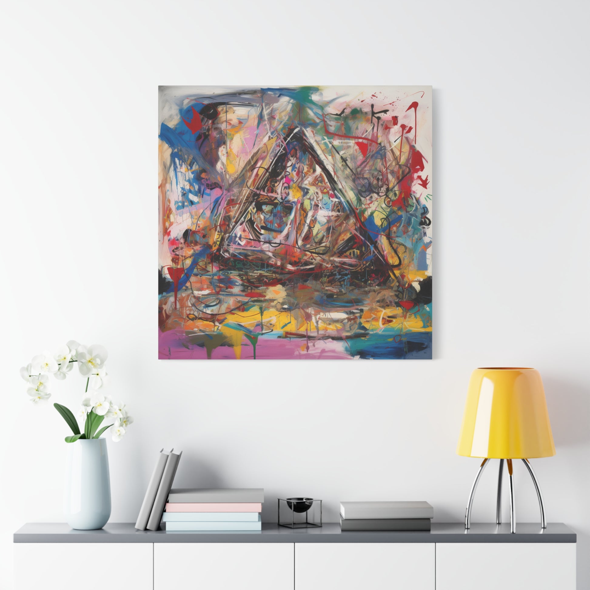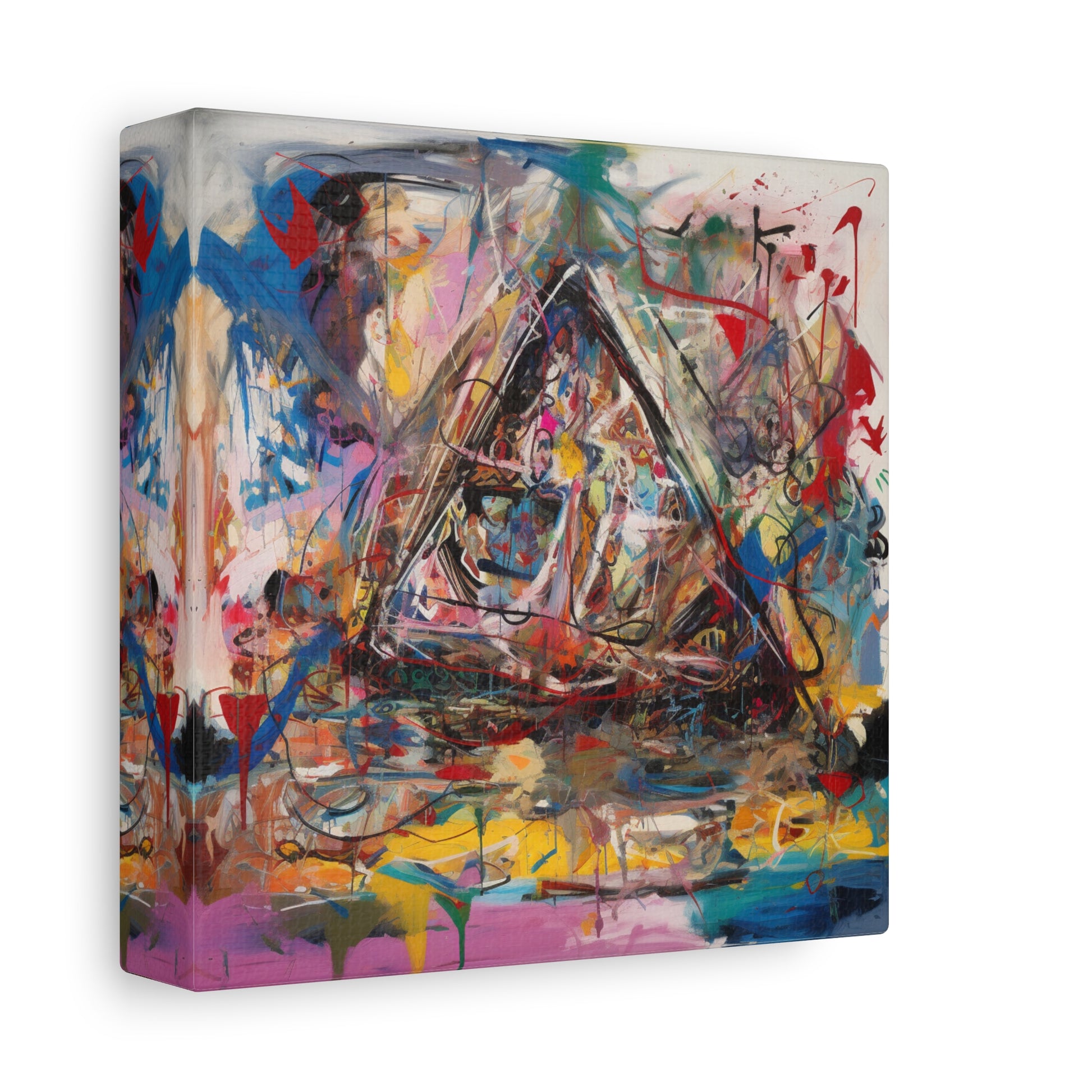 Within this vibrant tapestry, colors collide and merge, forming a chaotic harmony. The triangular form emerges, whispering secrets of balance amid chaos, inviting the viewer into a realm where imagination knows no bounds.