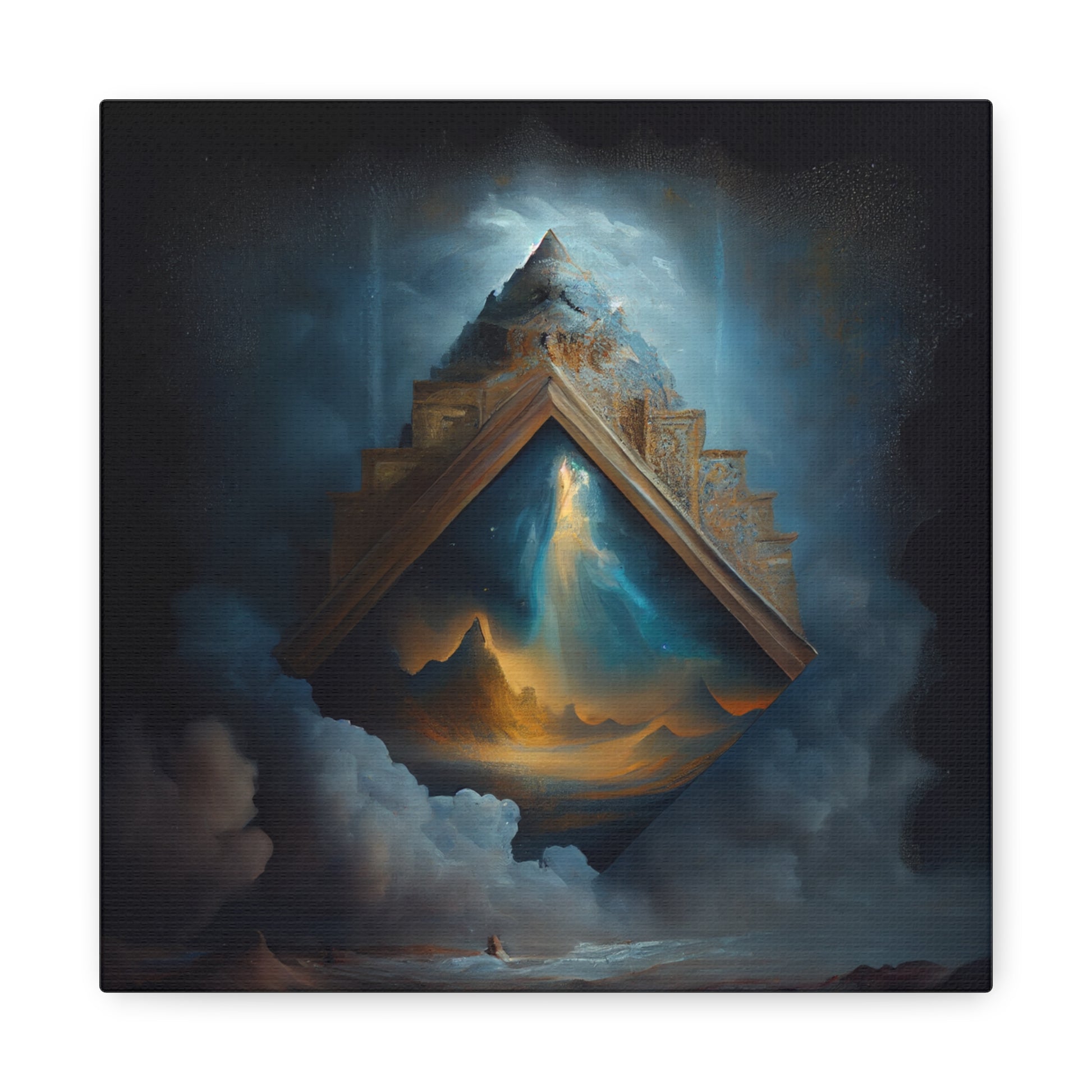 A mystical portal hangs suspended in cosmic mist, unveiling a hidden realm where mountains whisper tales to the sky. Here, the boundaries of reality dissolve, inviting the soul to wander and wonder.