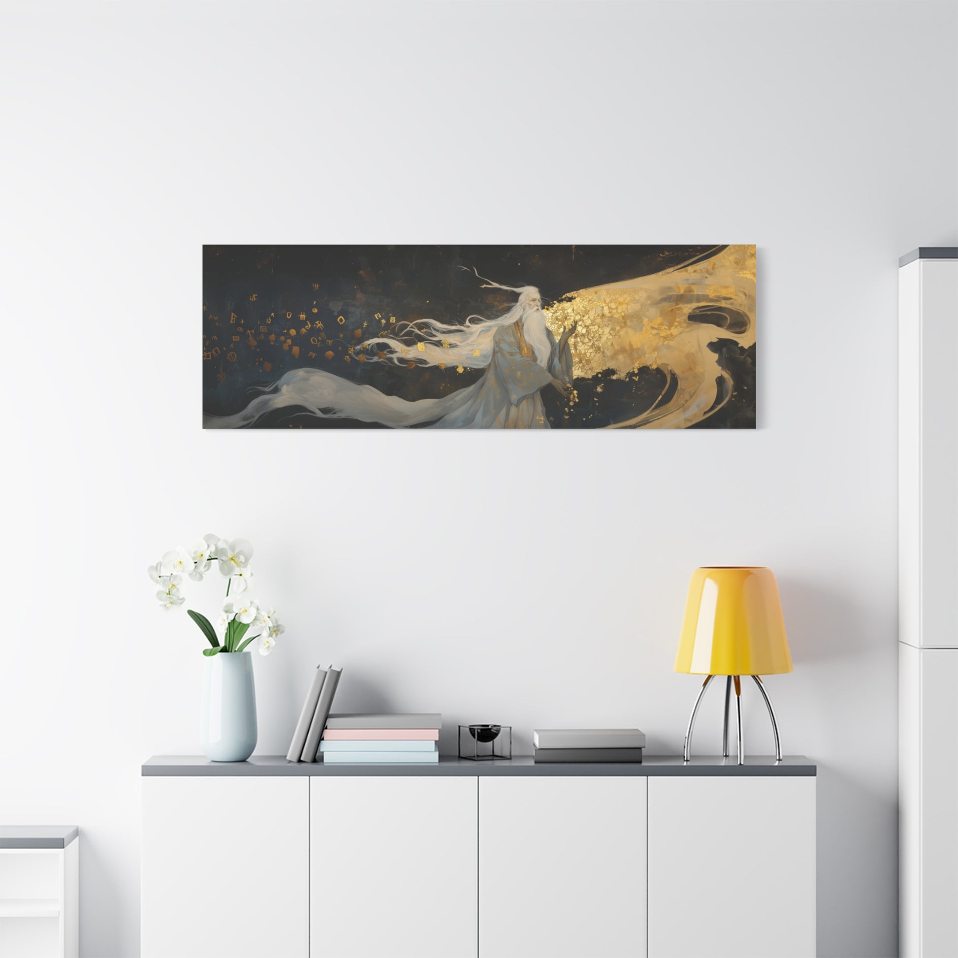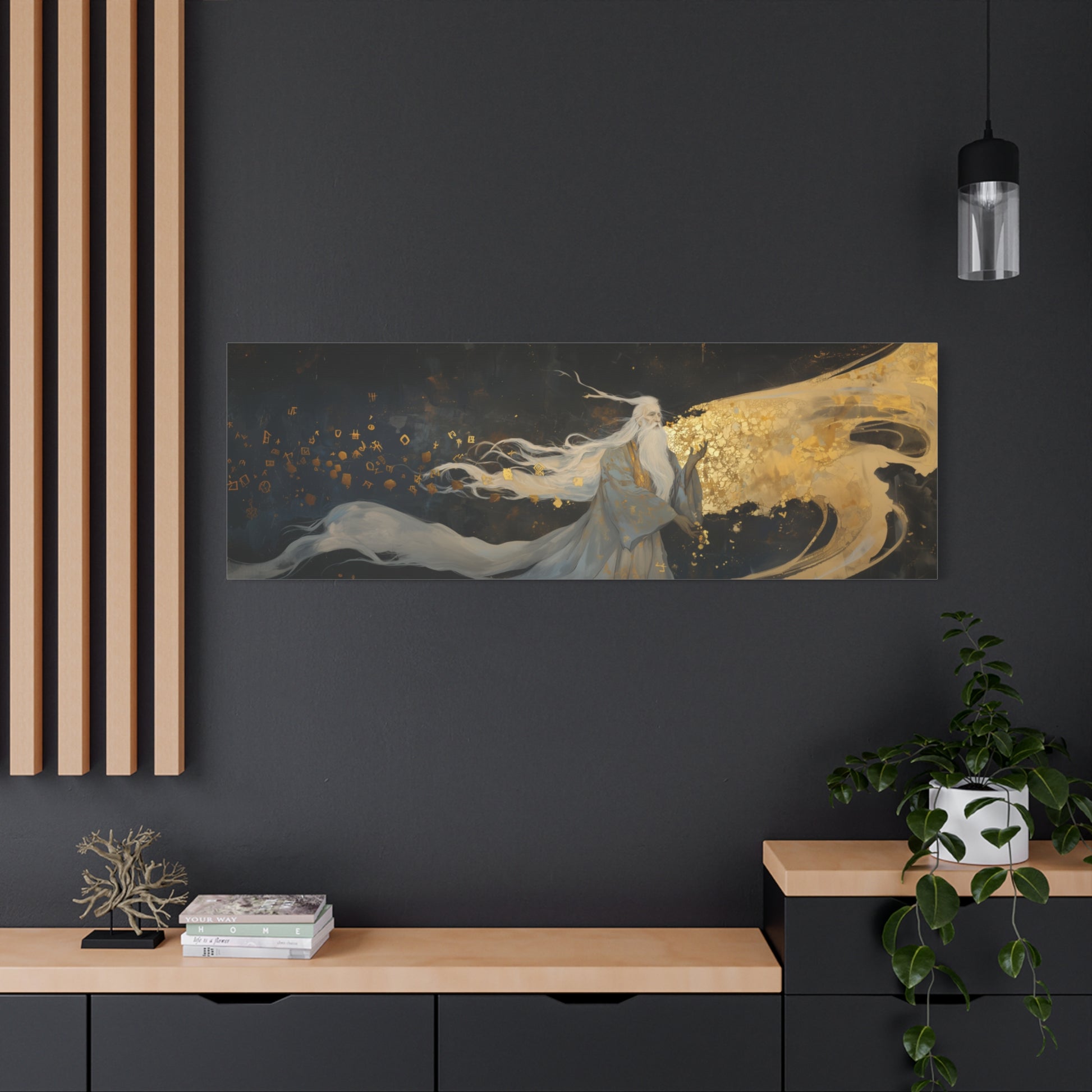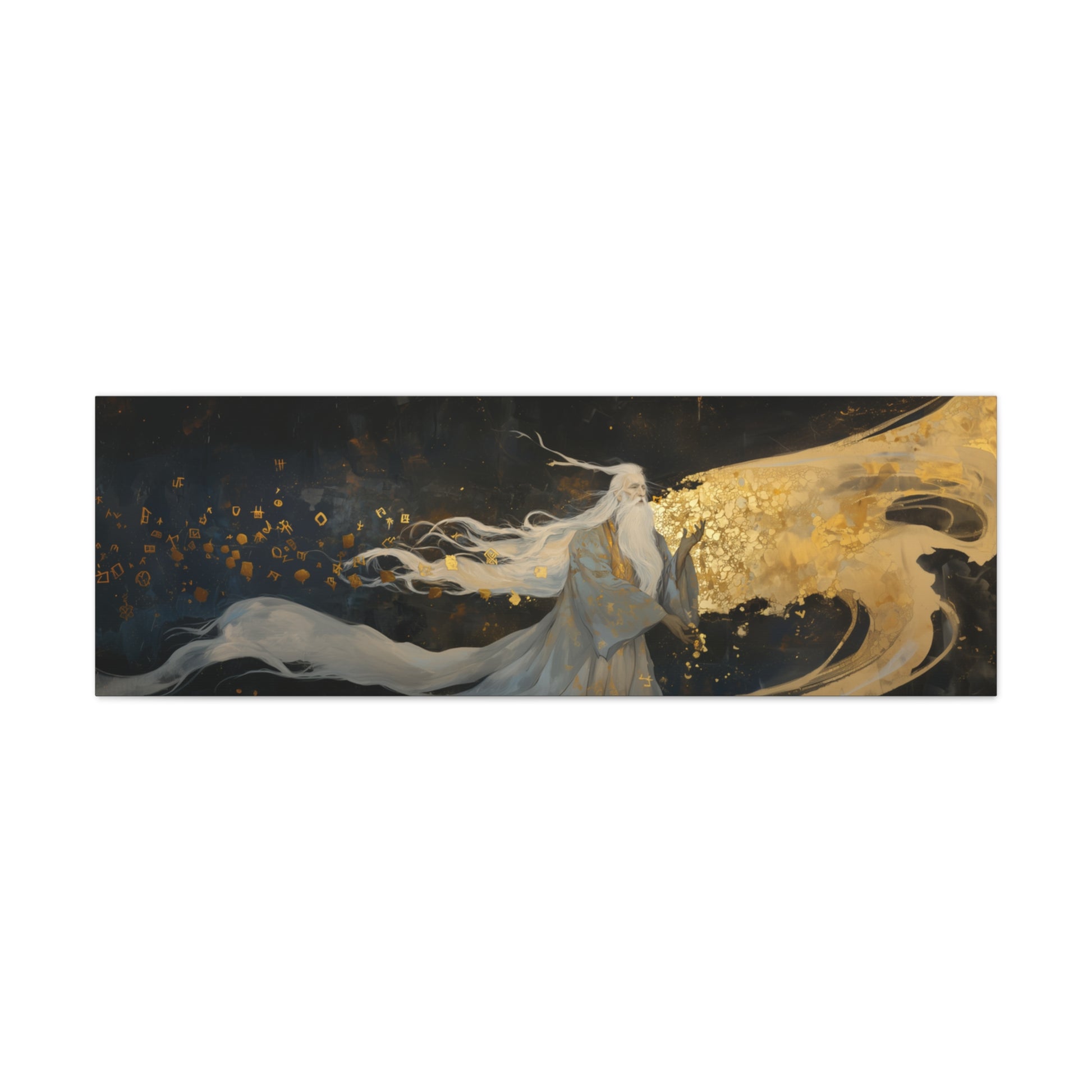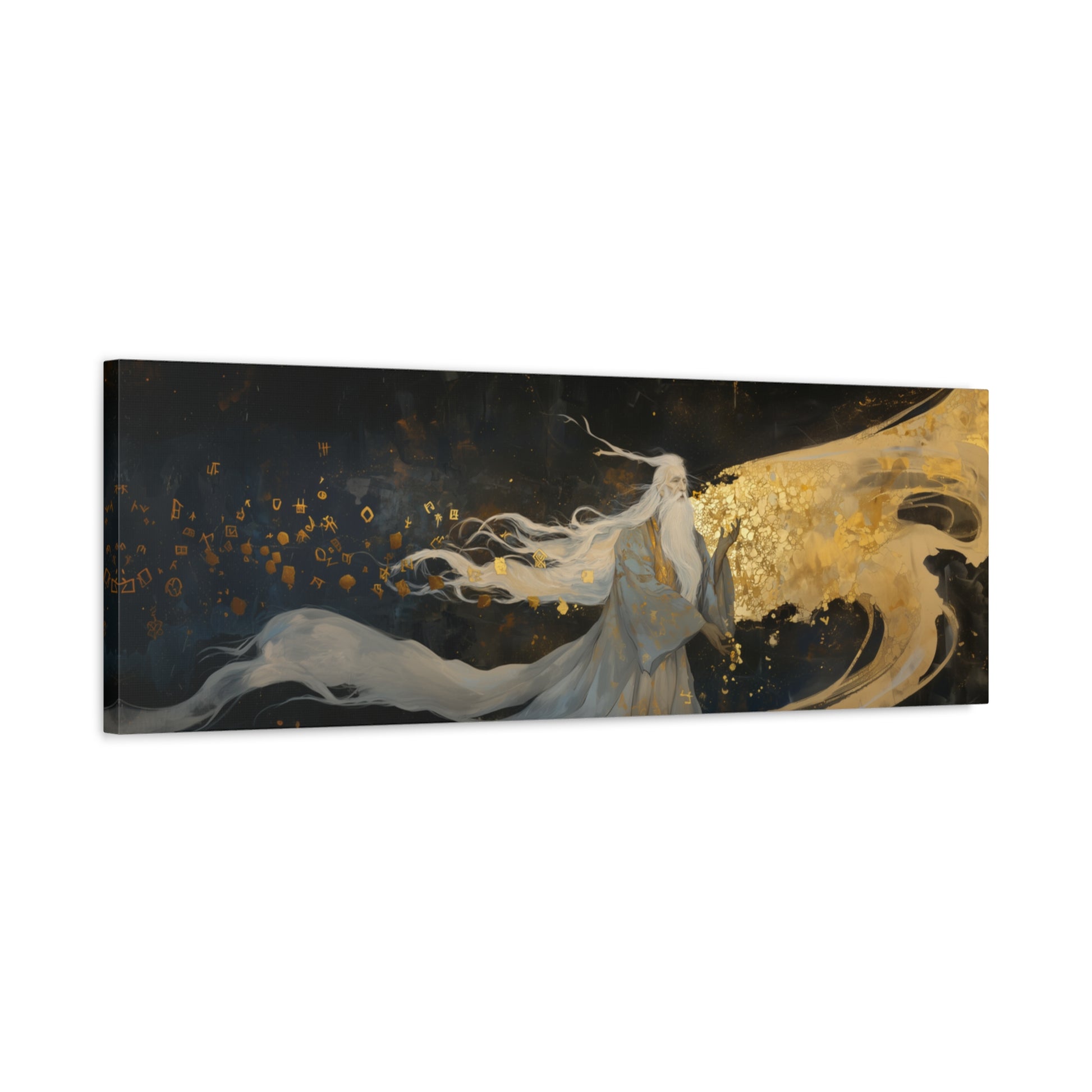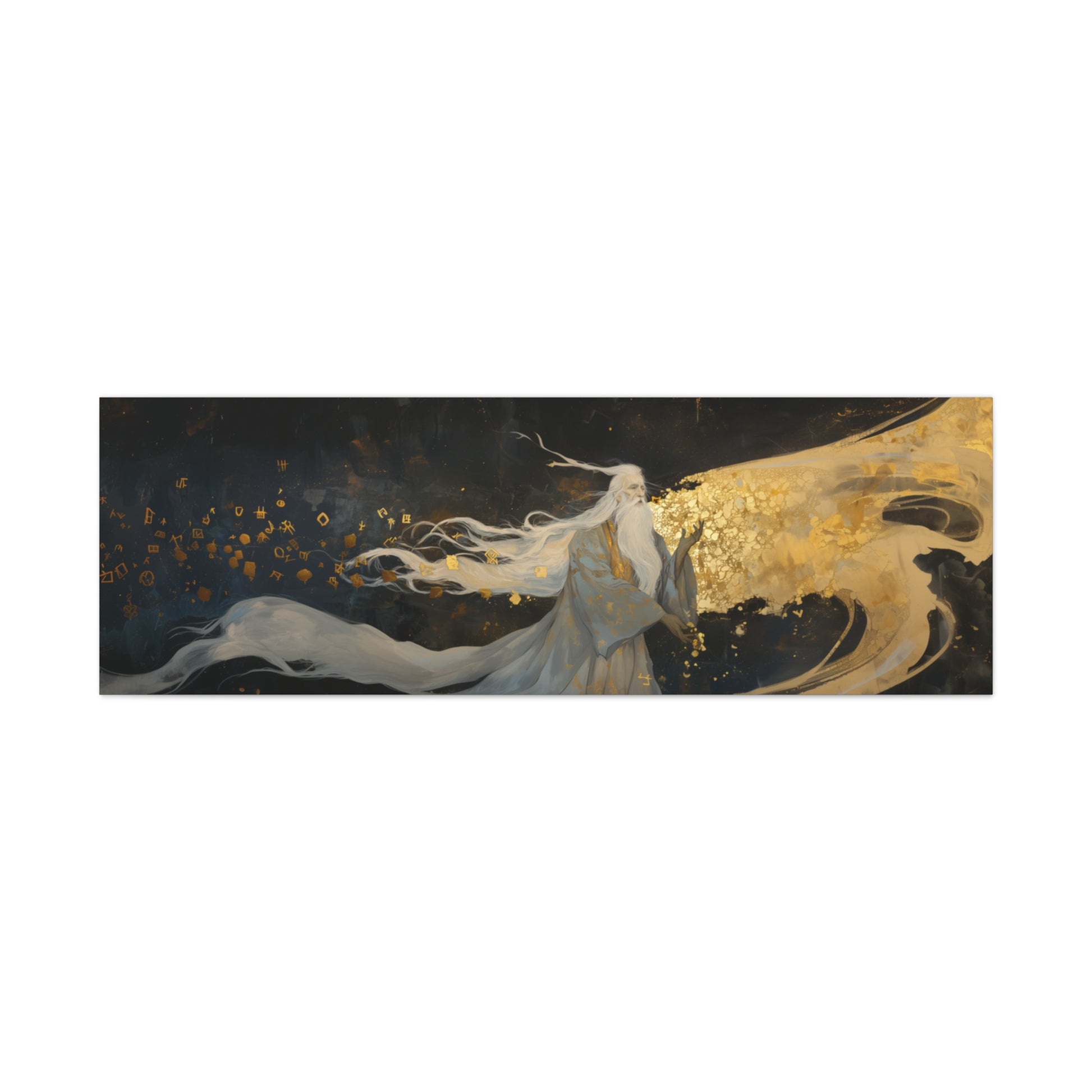 In a realm where time whispers secrets, an ethereal figure weaves threads of gold through the cosmic tapestry, bridging the celestial and the mortal. The dance of symbols and light invites a journey beyond the known.