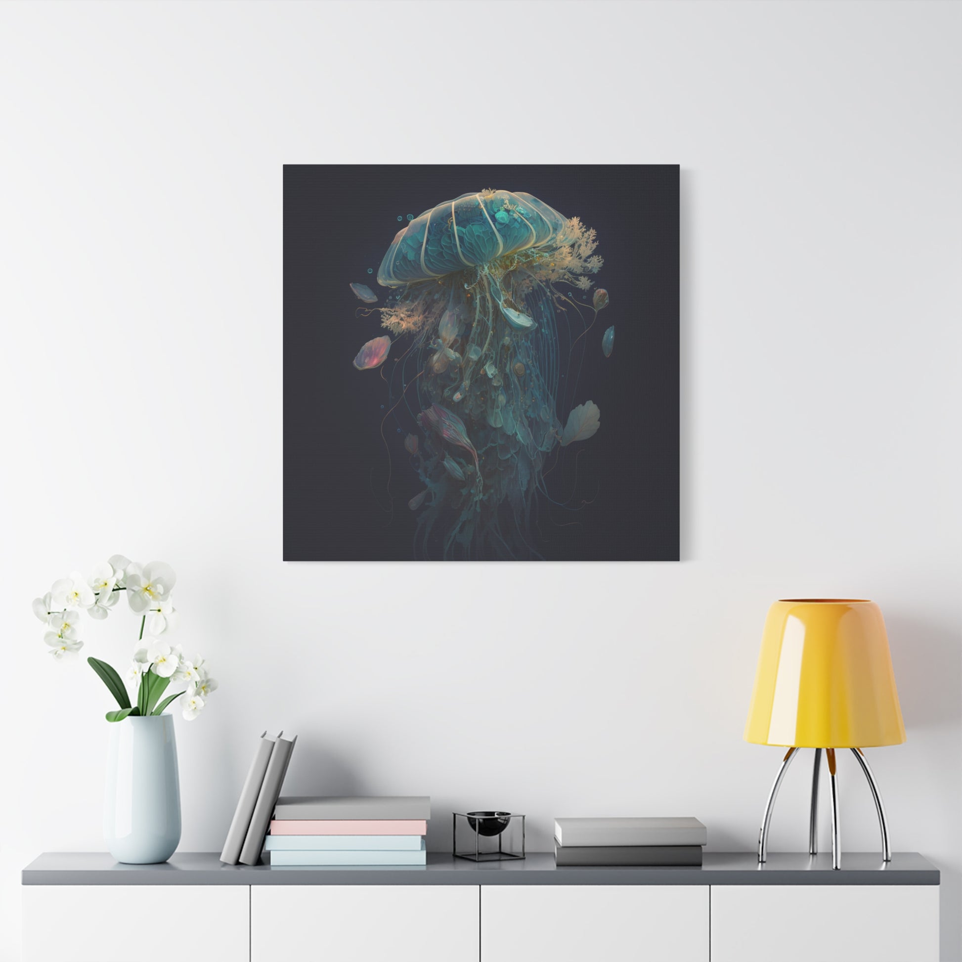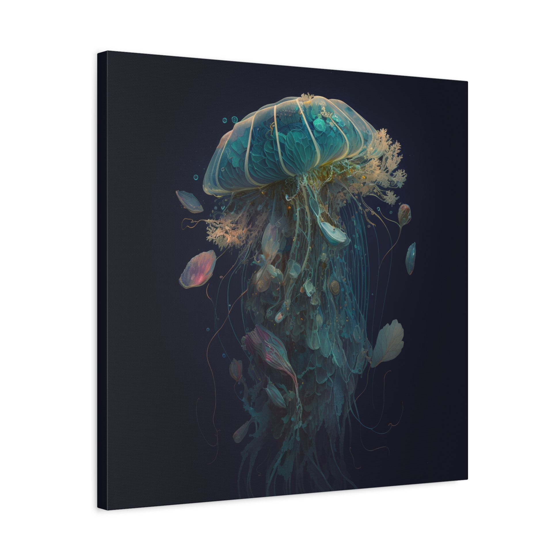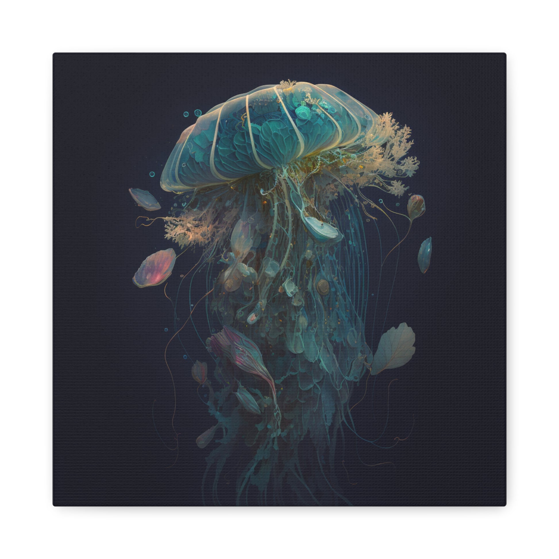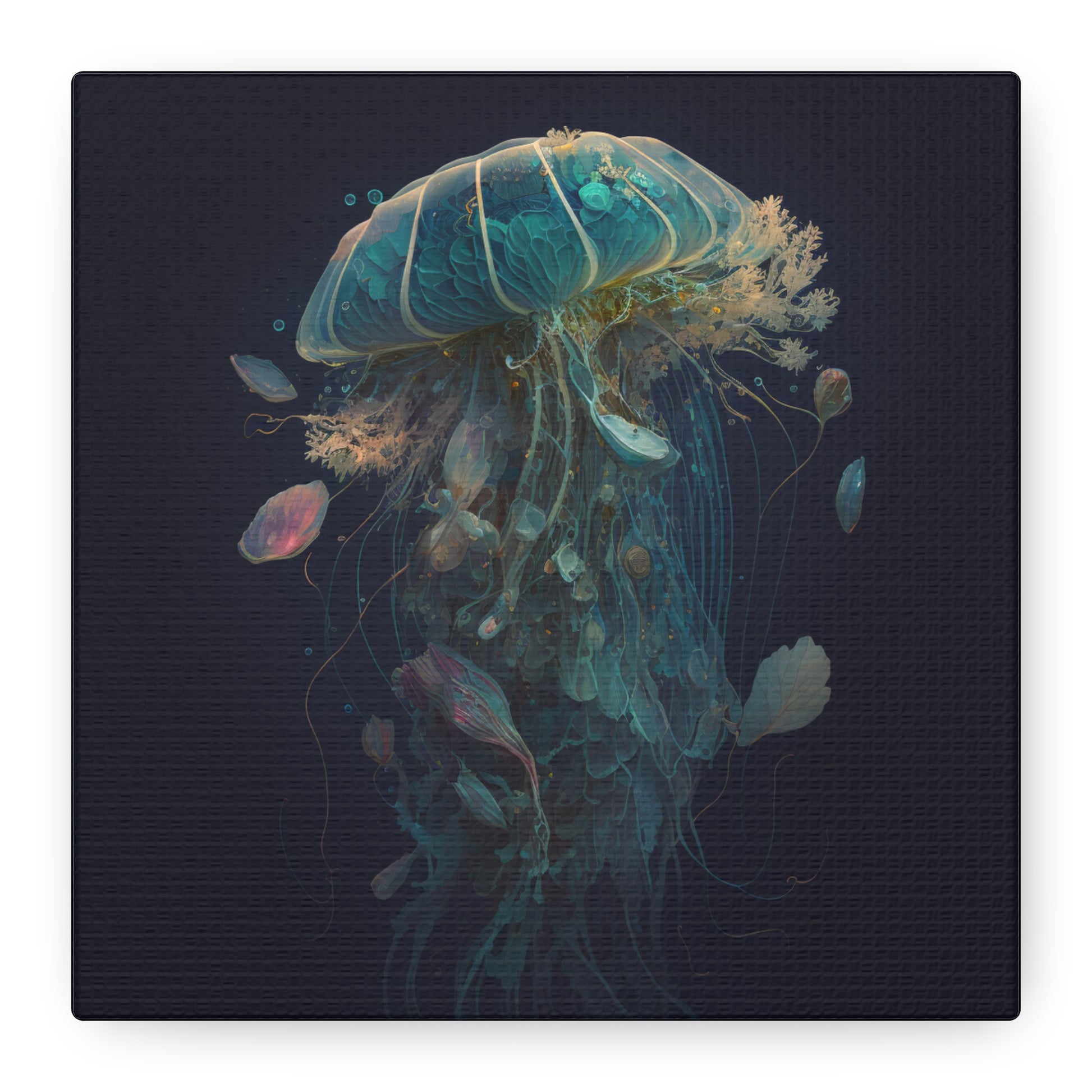 Enveloped in the gentle embrace of the deep, this ethereal form dances with the ocean’s breath. Its luminescent tendrils weave a tapestry of serenity, inviting the soul to wander through its tranquil depths.