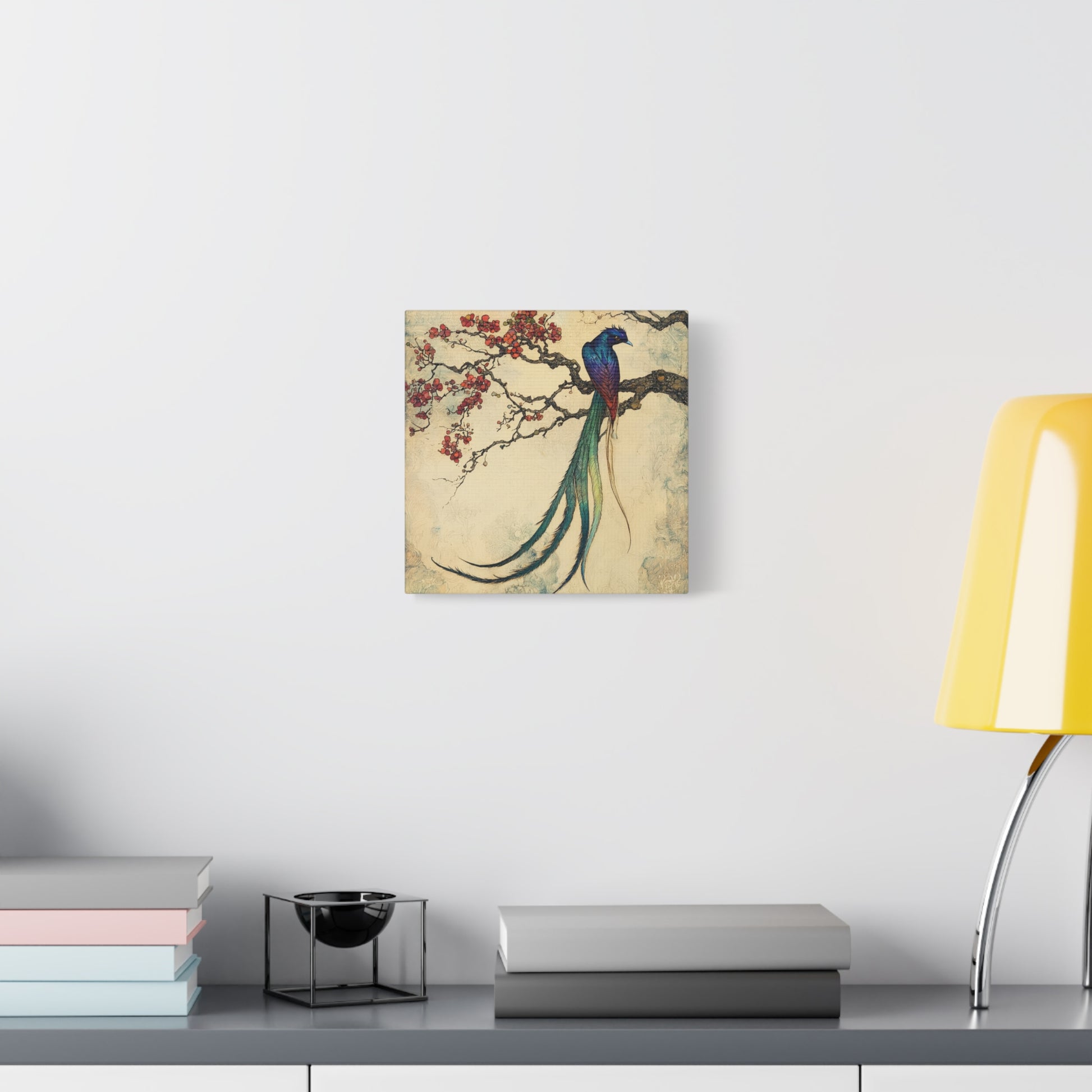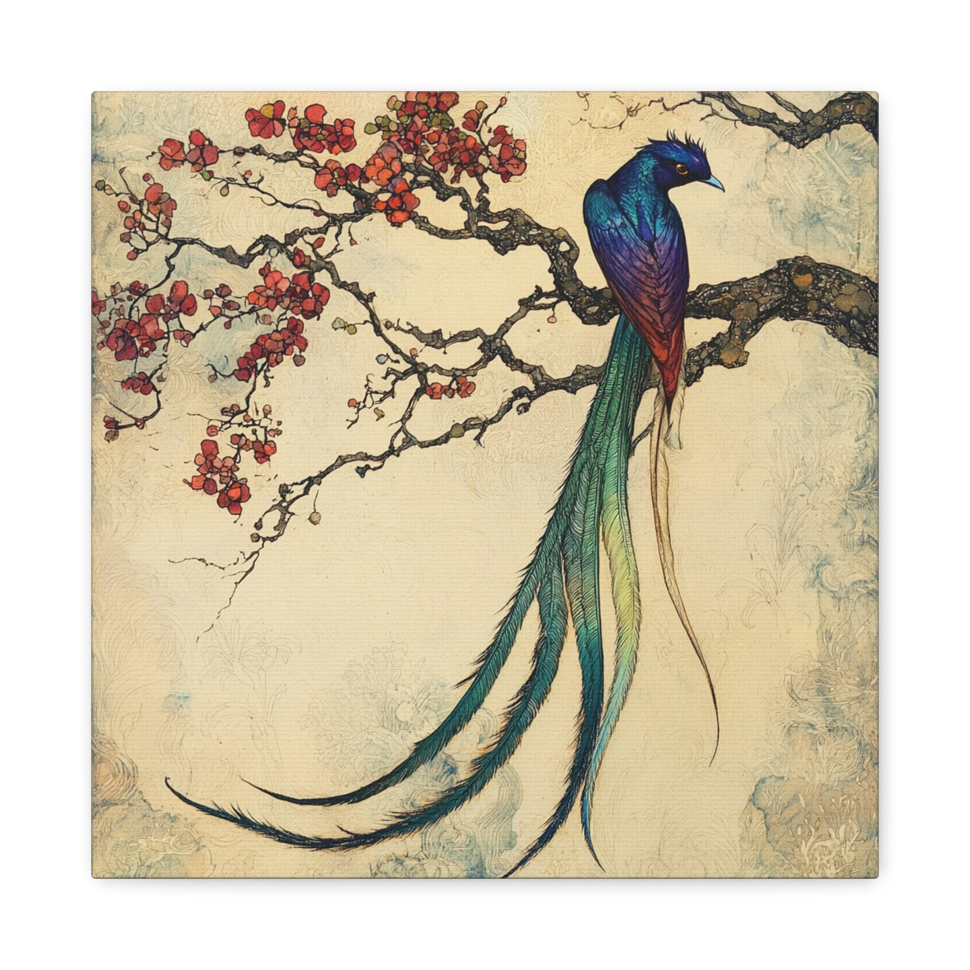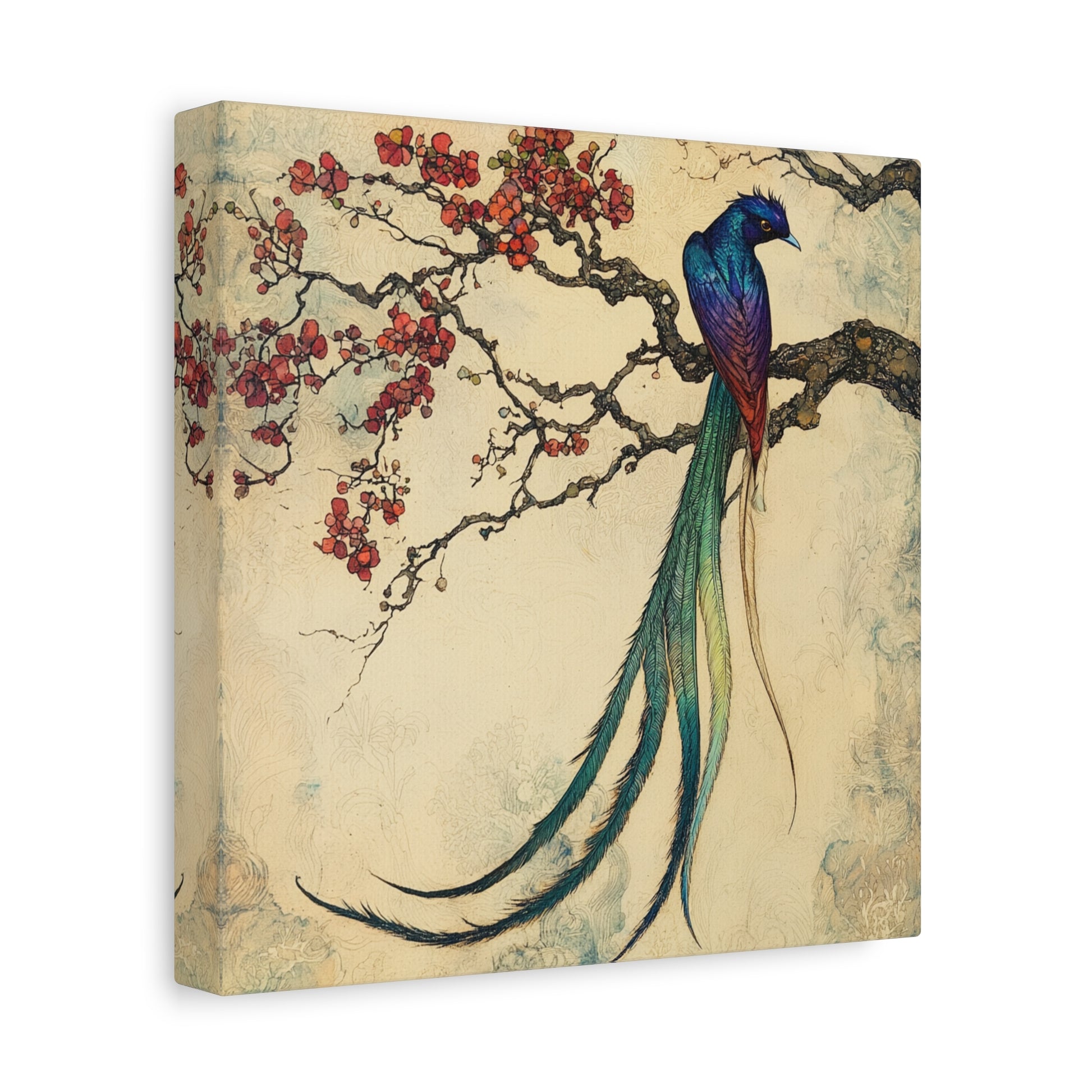 Perched in vibrant stillness, the bird becomes a bridge between the earthly and ethereal. Its plumage speaks of ancient tales, woven with whispers of the wind and the promise of flight beyond sight.