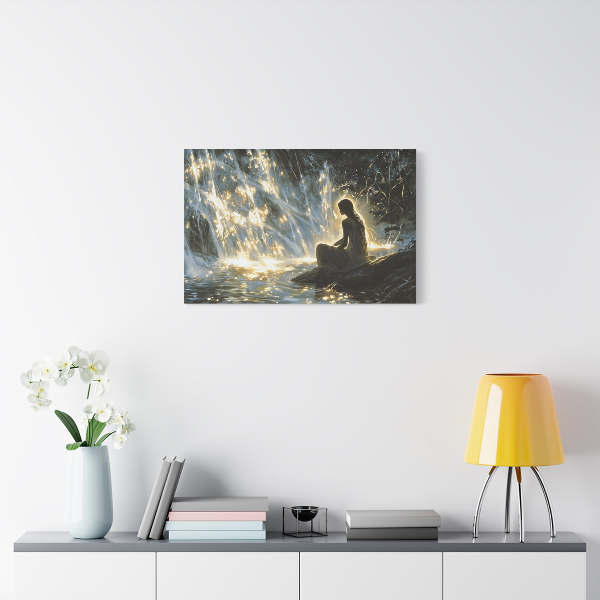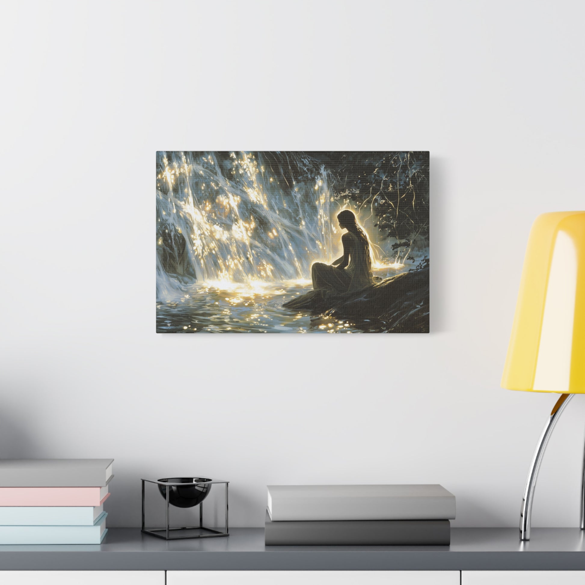 In the embrace of silken shadows, a luminous cascade whispers secrets of forgotten realms. The gentle glow dances upon the water, weaving a serene tapestry of solitude and wonder, inviting the soul to dream.