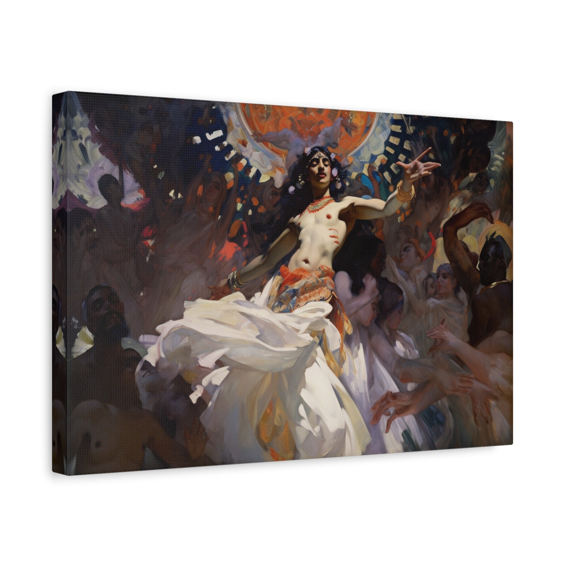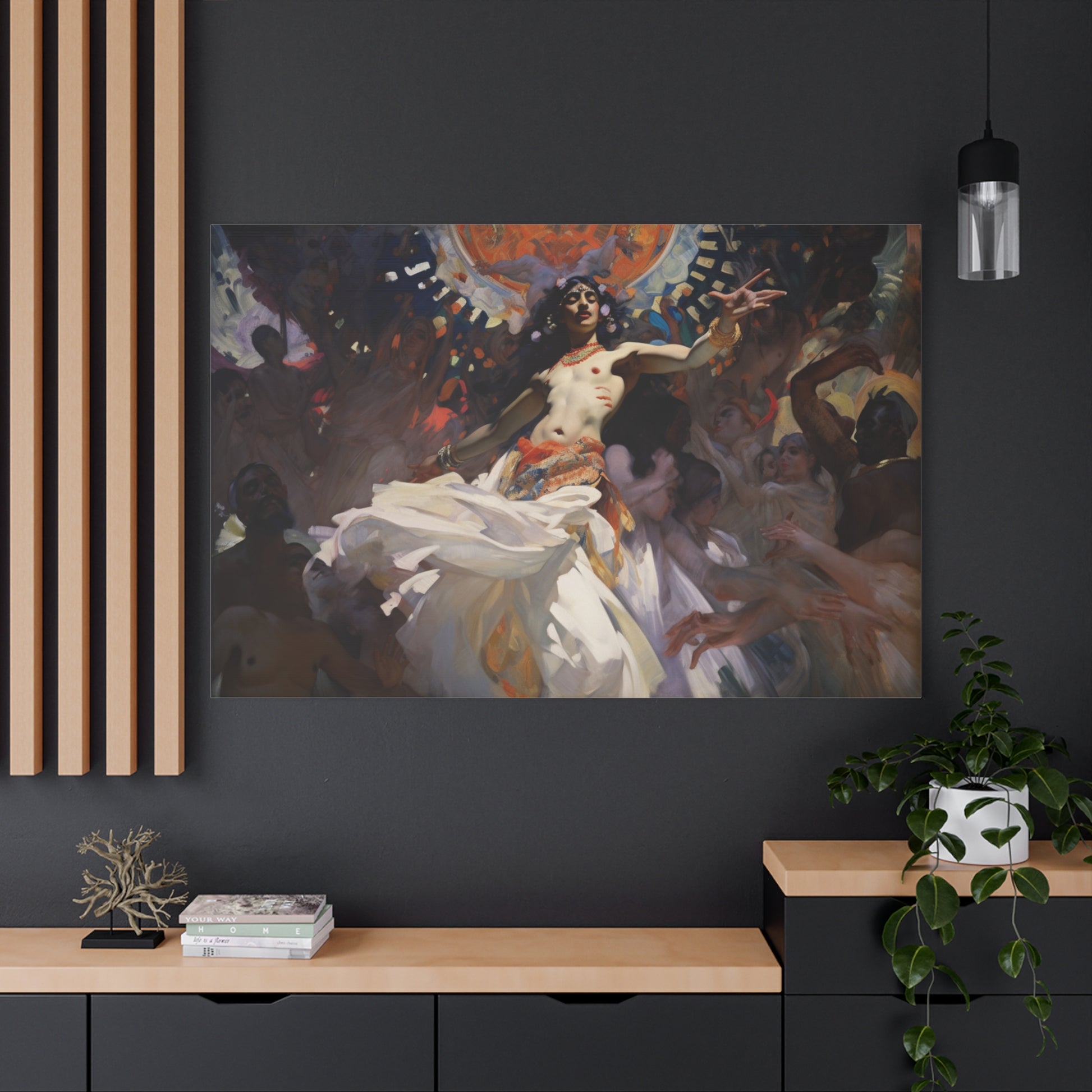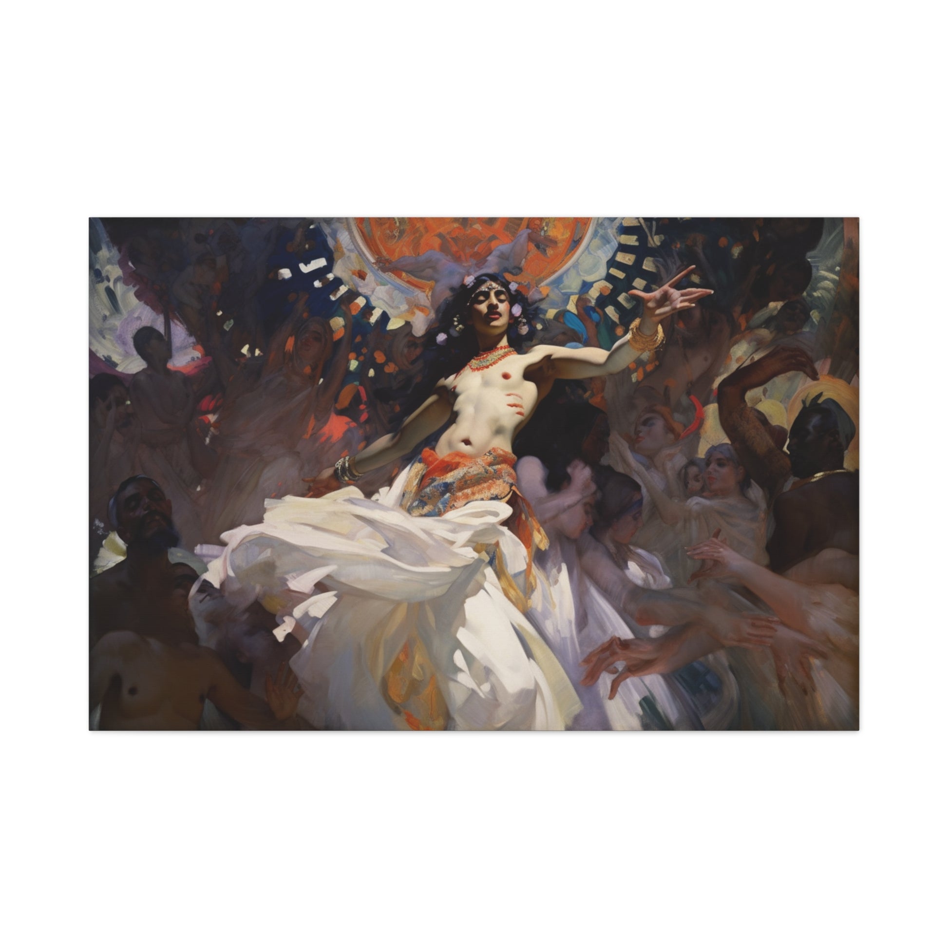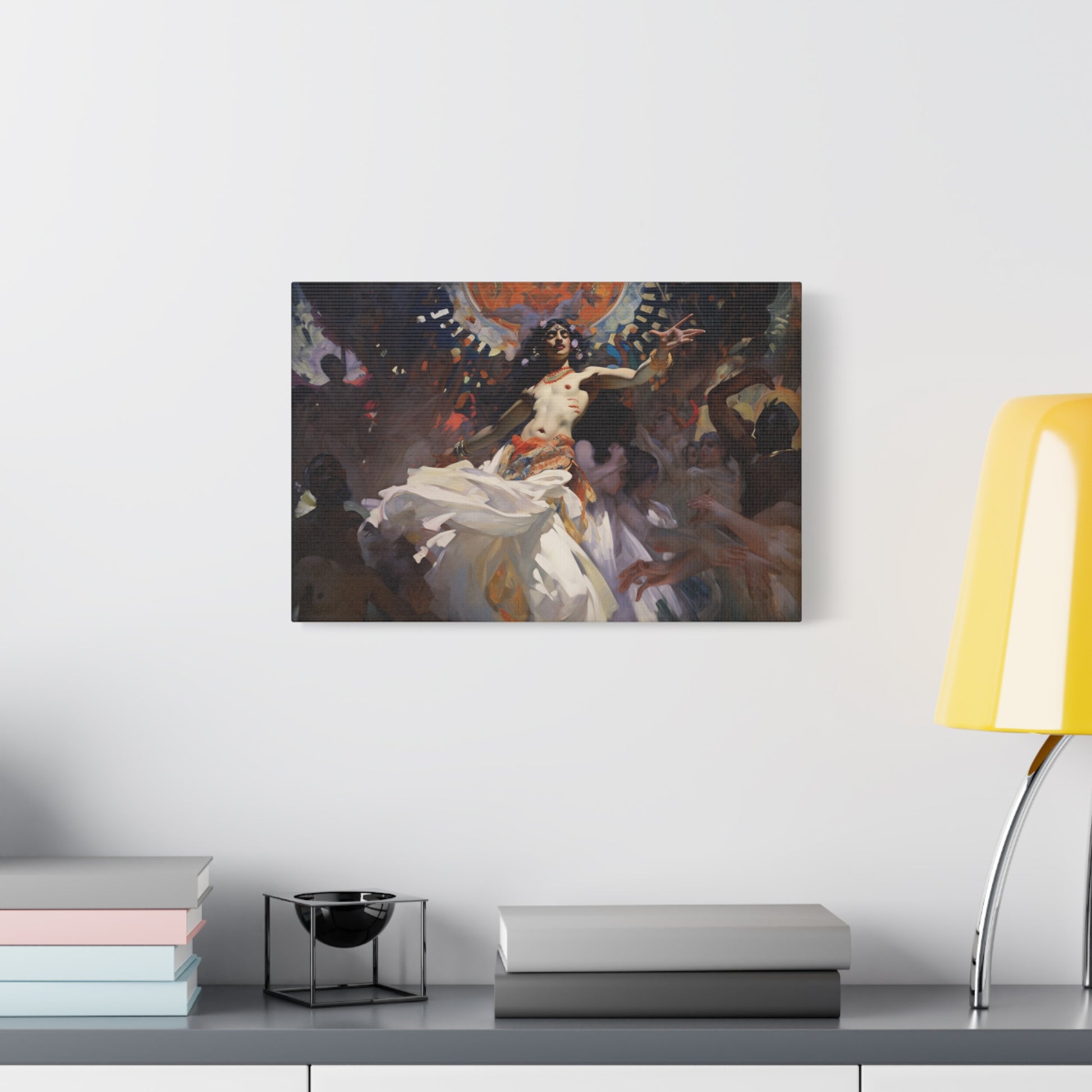 In a swirl of ethereal fabrics and shadows, a figure emerges, captivating and elusive. The whispers of onlookers blend with the dance, creating a haunting yet enchanting spectacle that lingers in the soul.