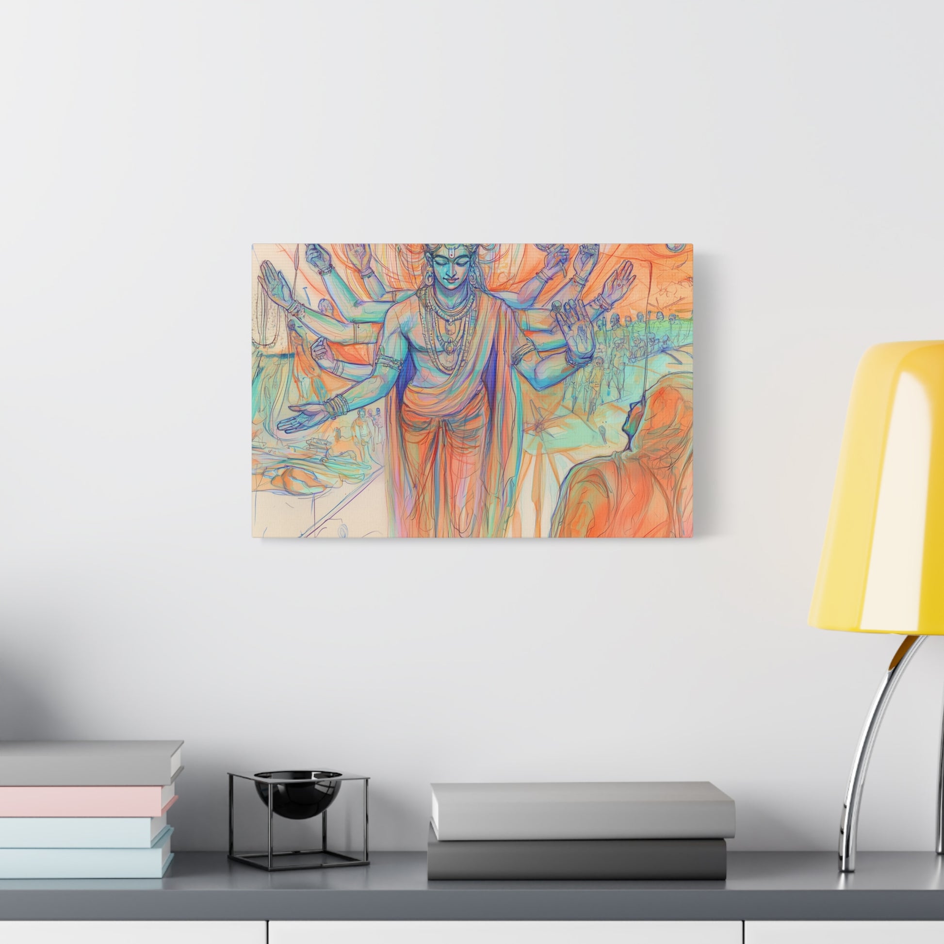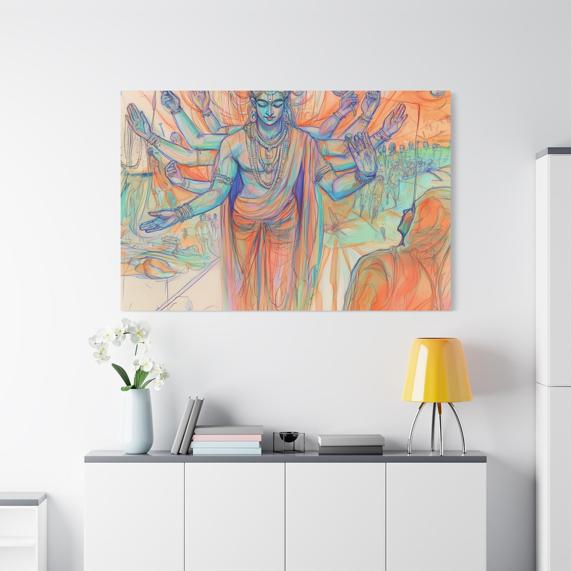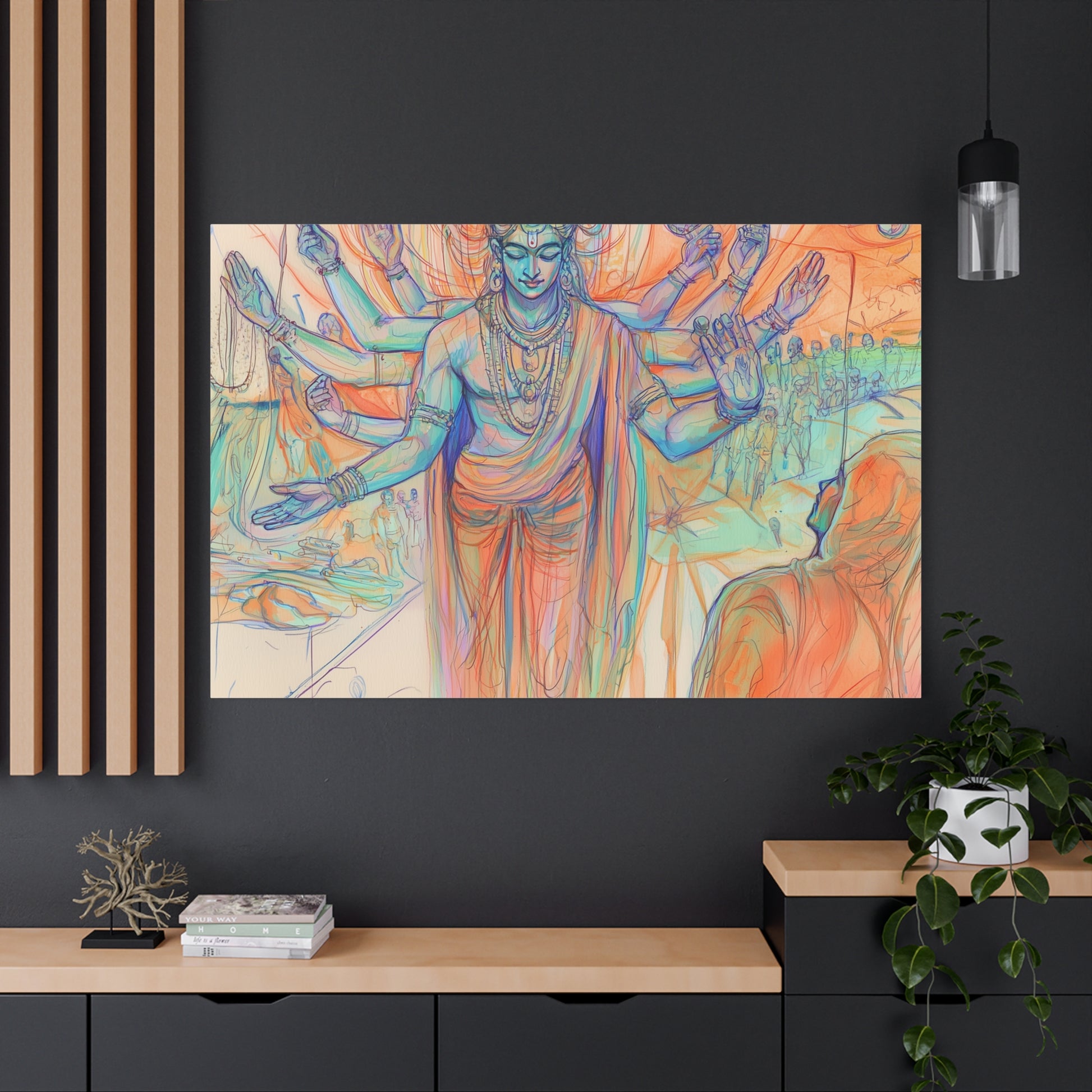In a kaleidoscope of vibrant hues, divine hands weave stories through time, inviting us to partake in an eternal dance. The ethereal figure stands as a bridge between worlds, whispering secrets of the cosmos.